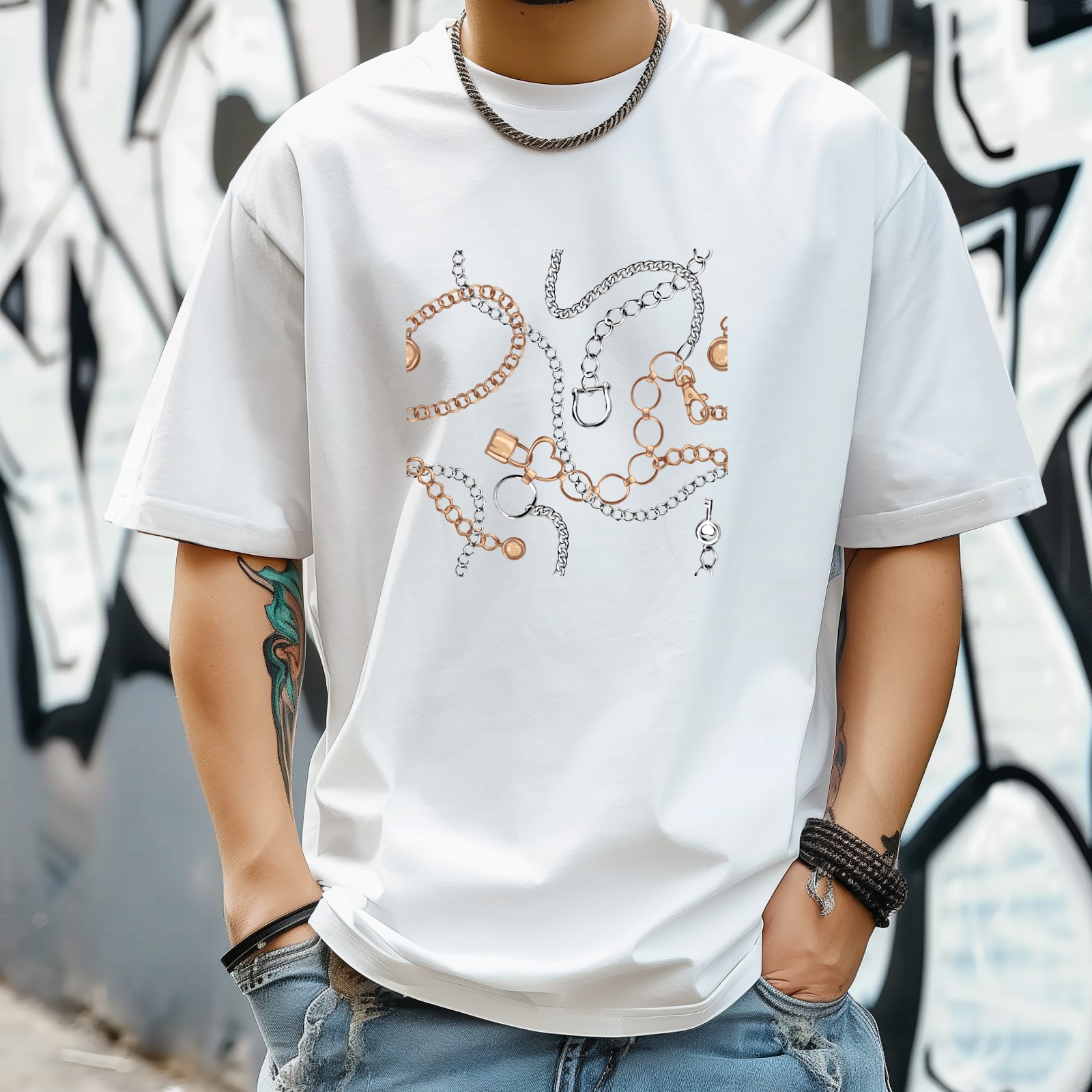 Necklaces T-Shirt for Man Tops Short Sleeves Shirt Crew Neck Shirt XS