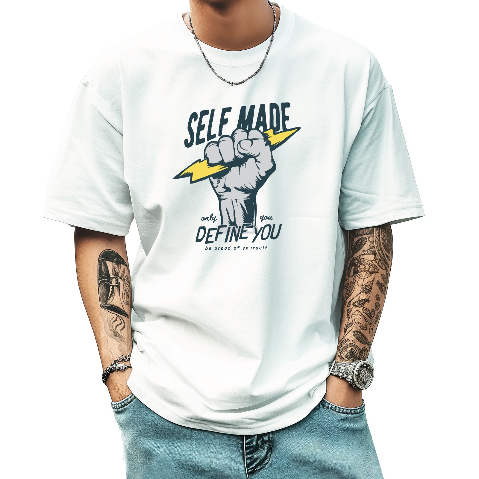 Self Made T-Shirt for Man Tops Short Sleeves Shirt Crew Neck Shirt XS