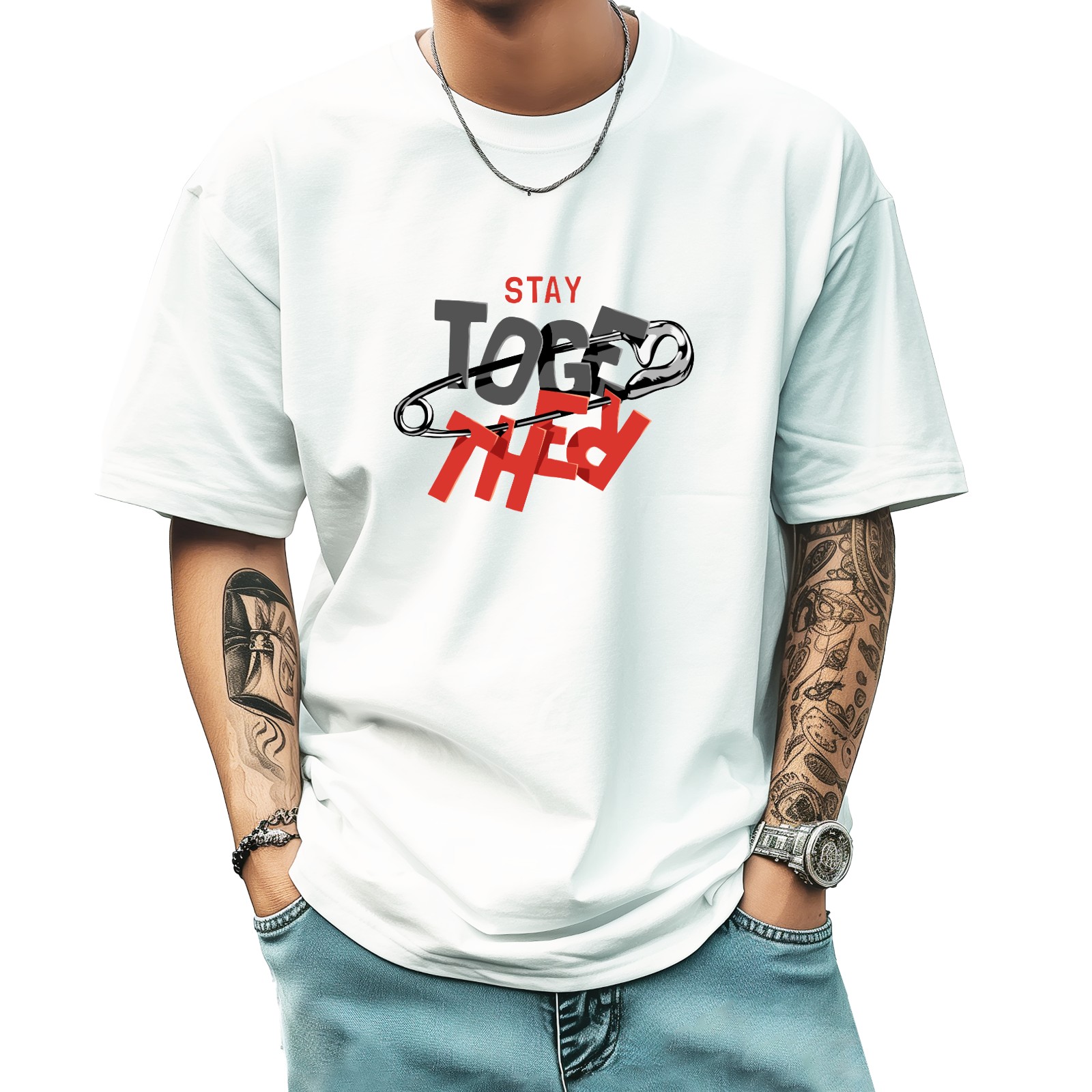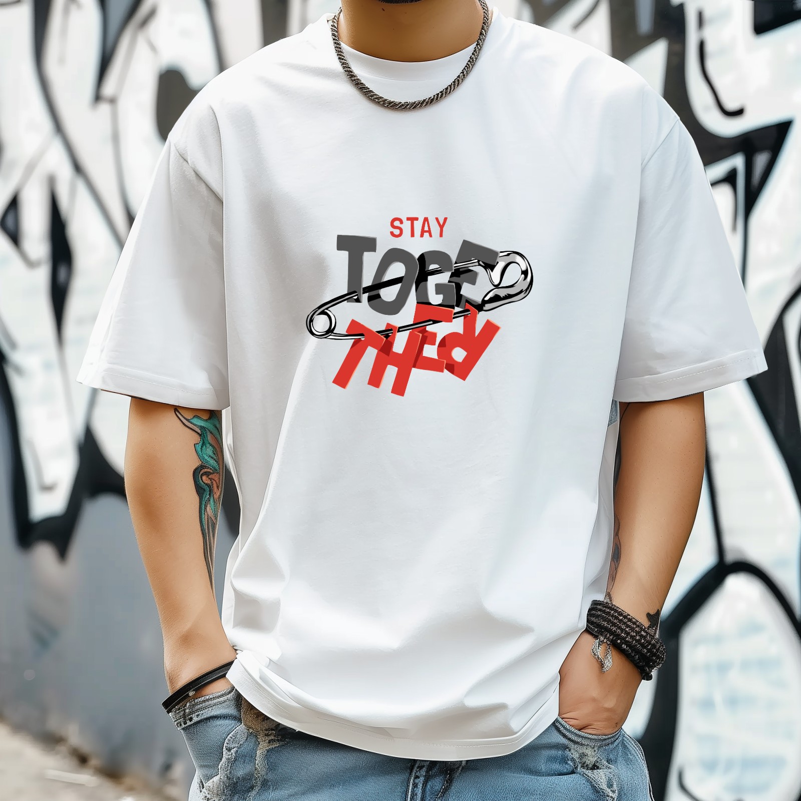 Toge Ther T-Shirt for Man Tops Short Sleeves Shirt Crew Neck Shirt XS