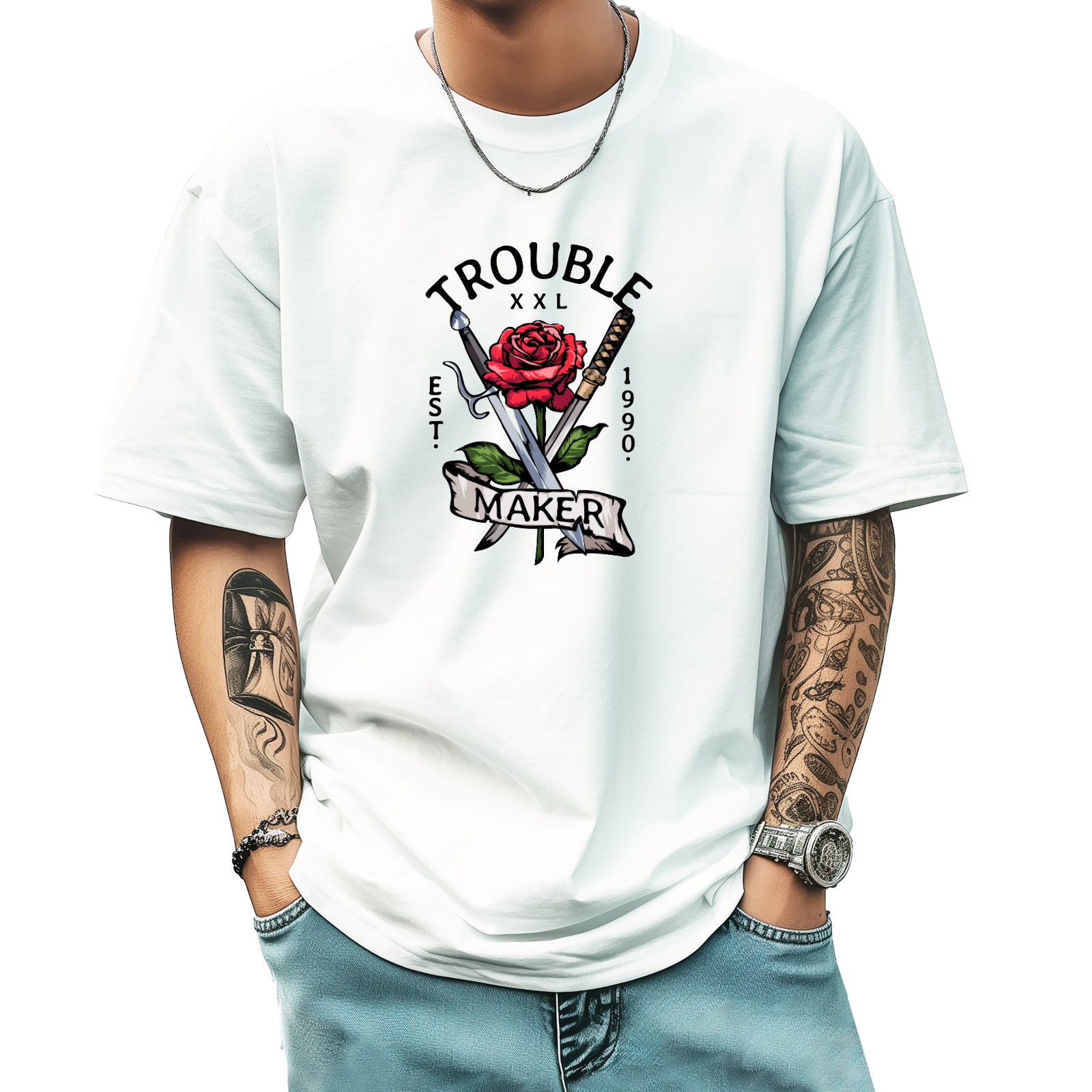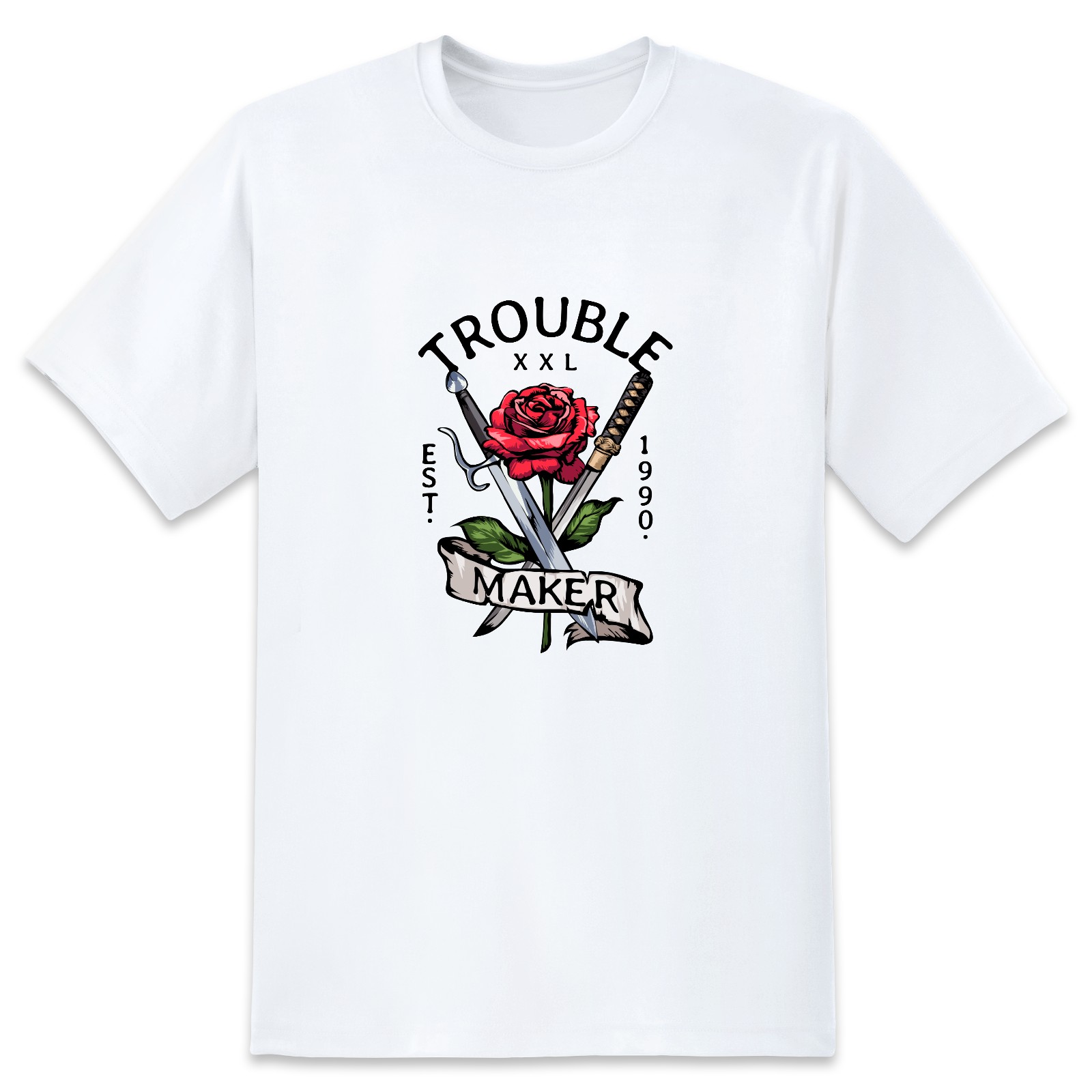 Trouble T-Shirt for Man Tops Short Sleeves Shirt Crew Neck Shirt XS
