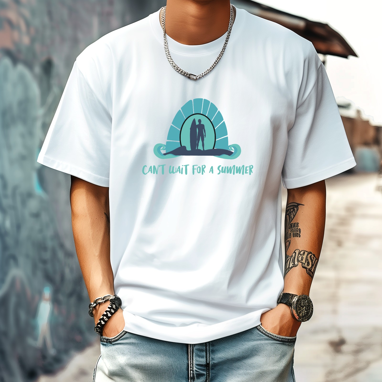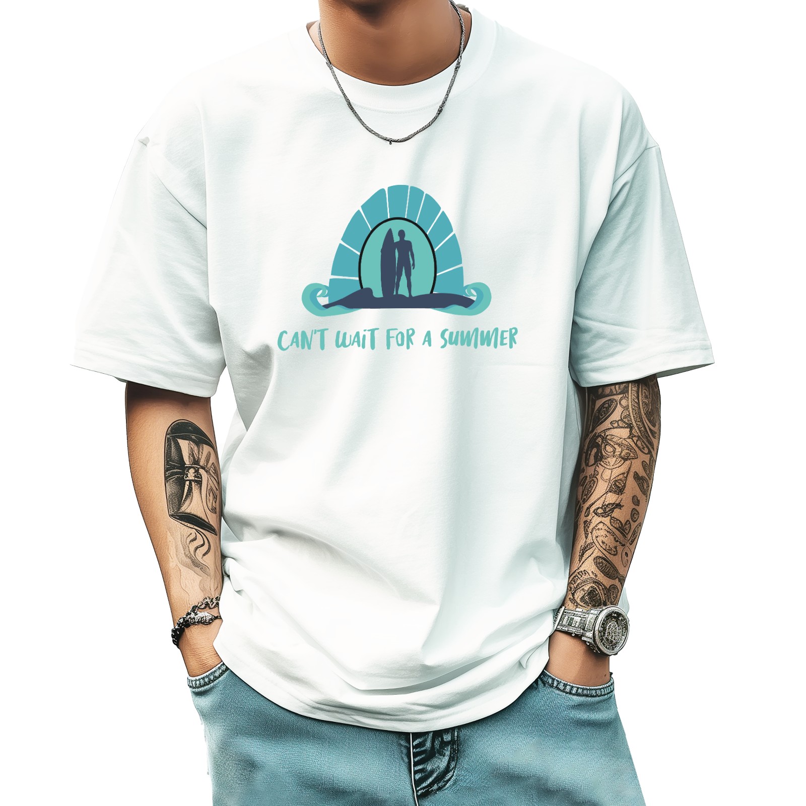 Cant Wait For A Summer T-Shirt for Man Tops Short Sleeves Shirt Crew Neck Shirt XS