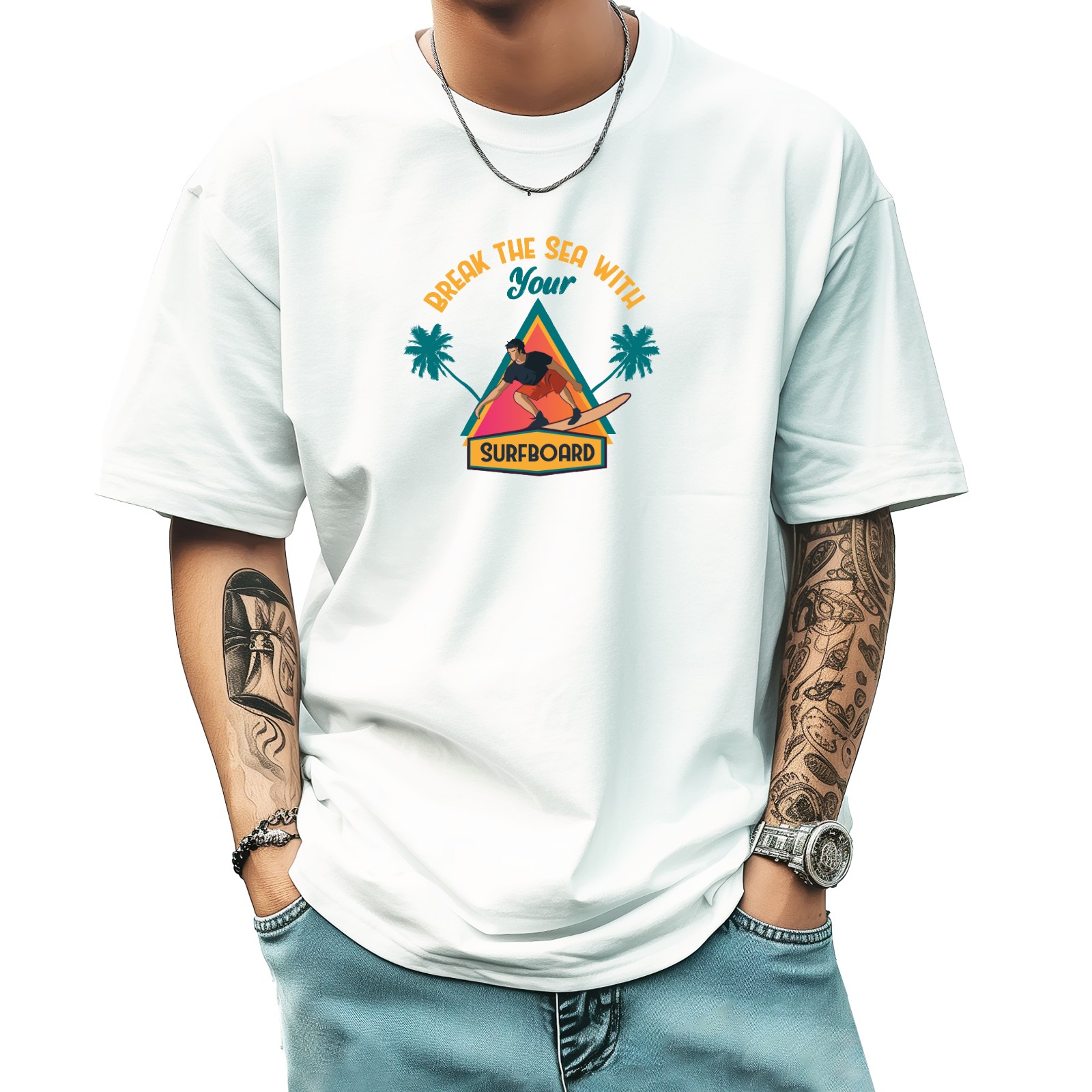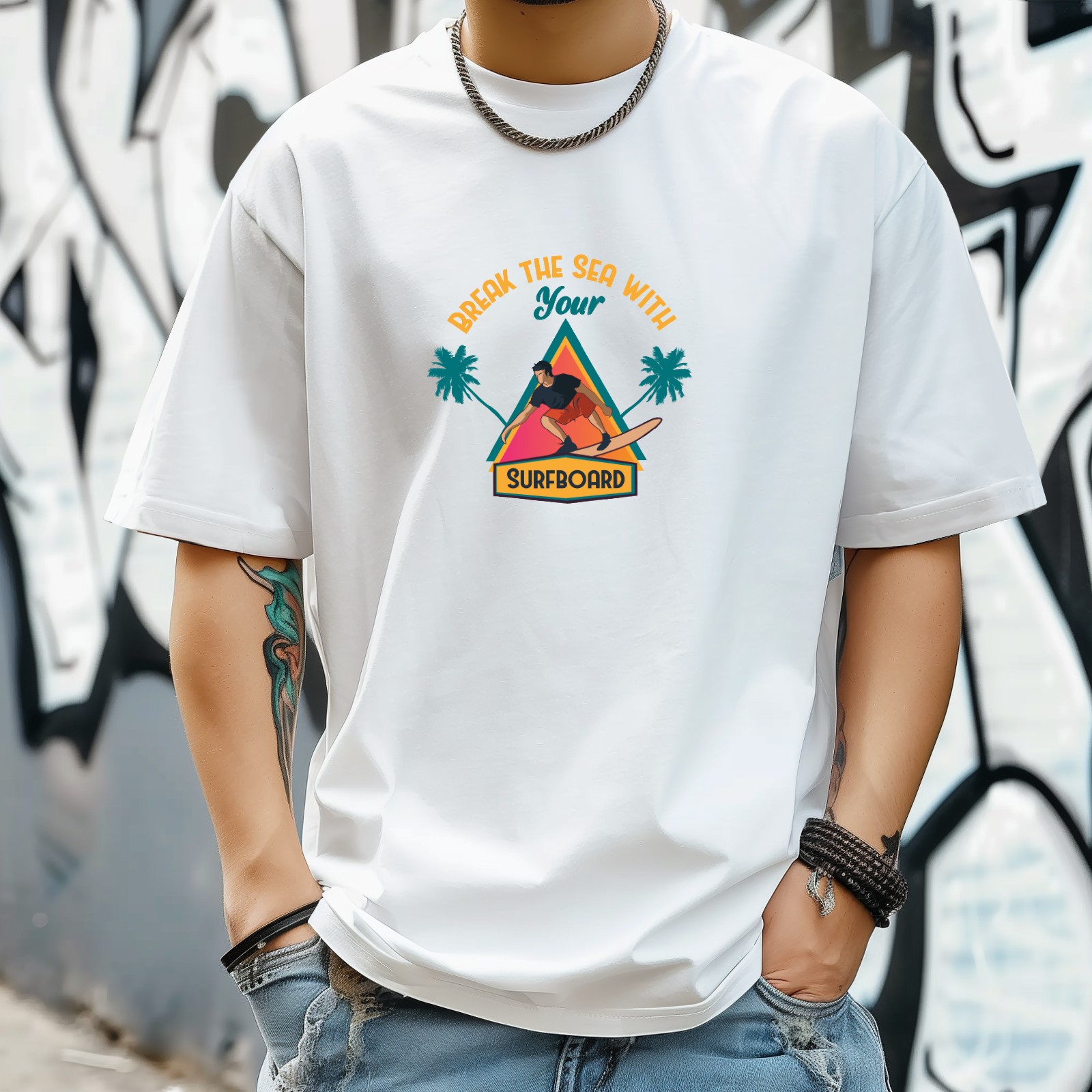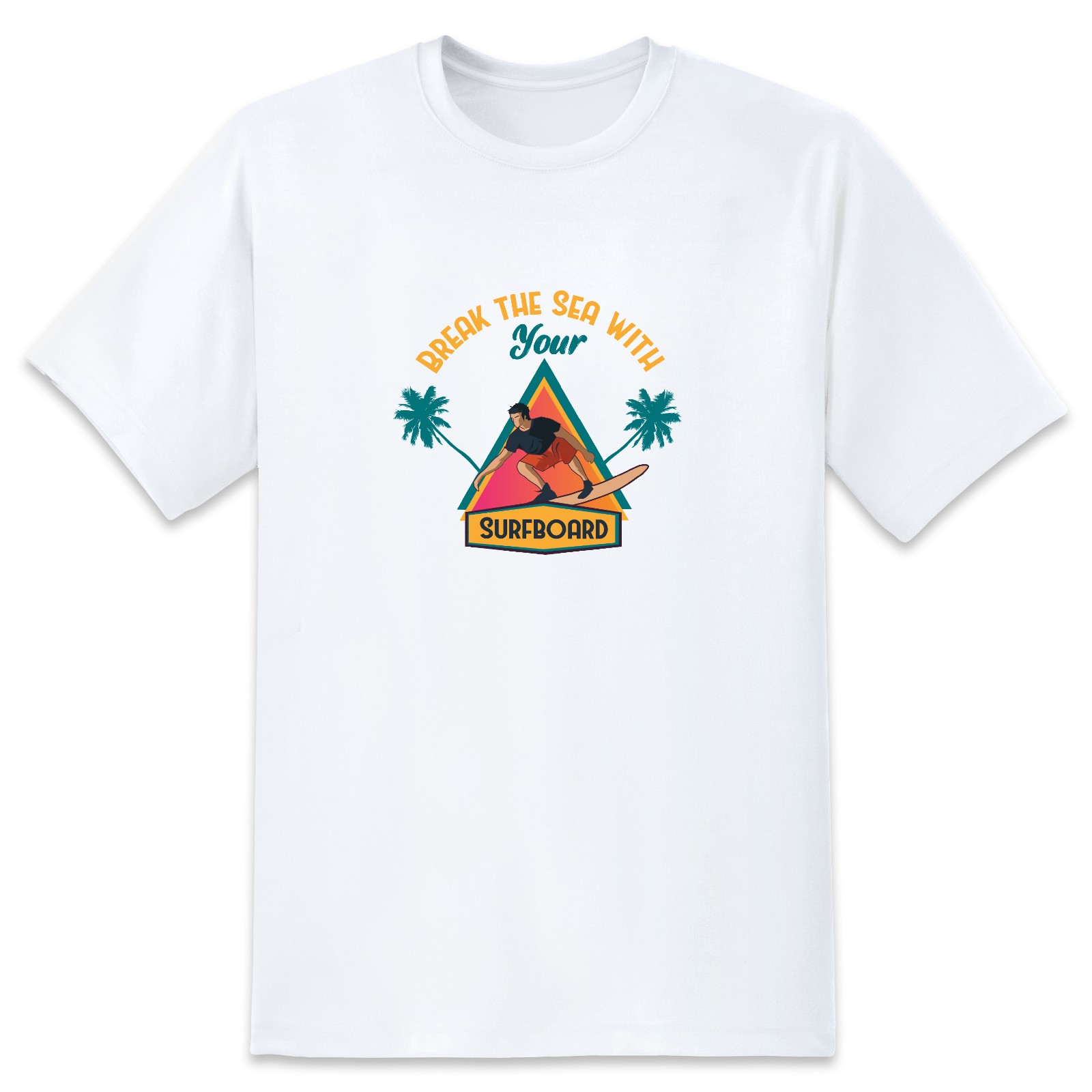 Break The Sea With Your Surfboard T-Shirt for Man Tops Short Sleeves Shirt Crew Neck Shirt XS