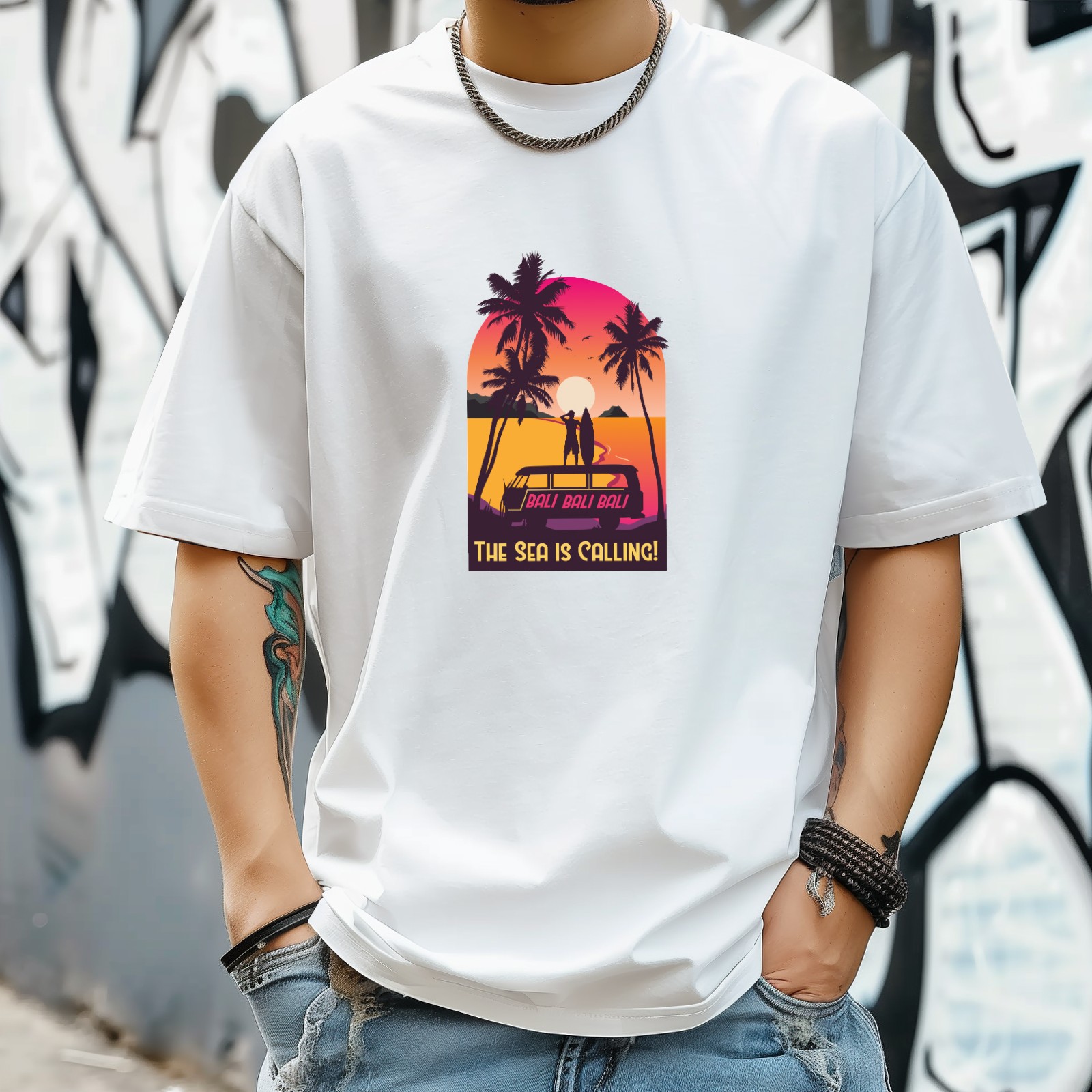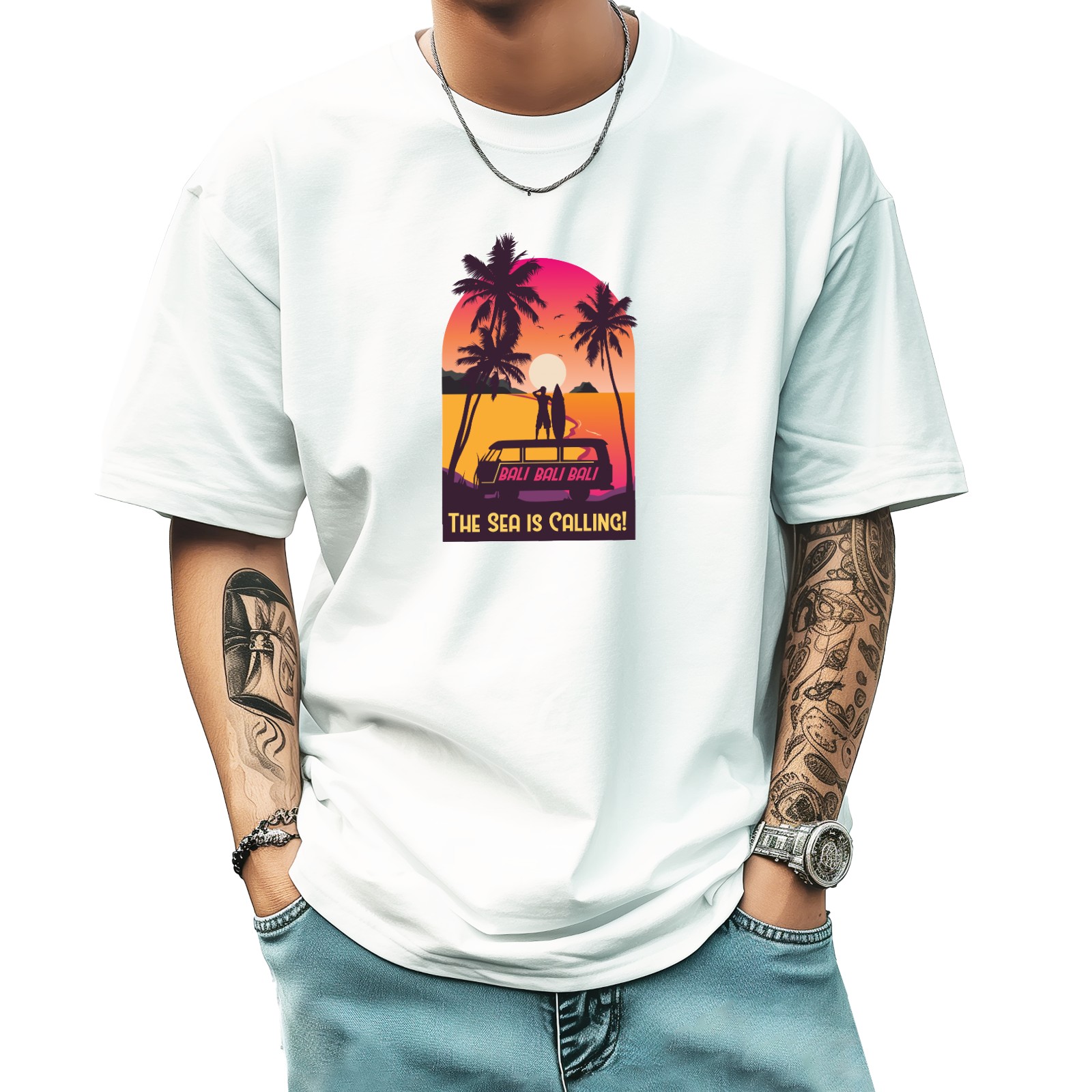 Bali The Sea Is Calling T-Shirt for Man Tops Short Sleeves Shirt Crew Neck Shirt XS