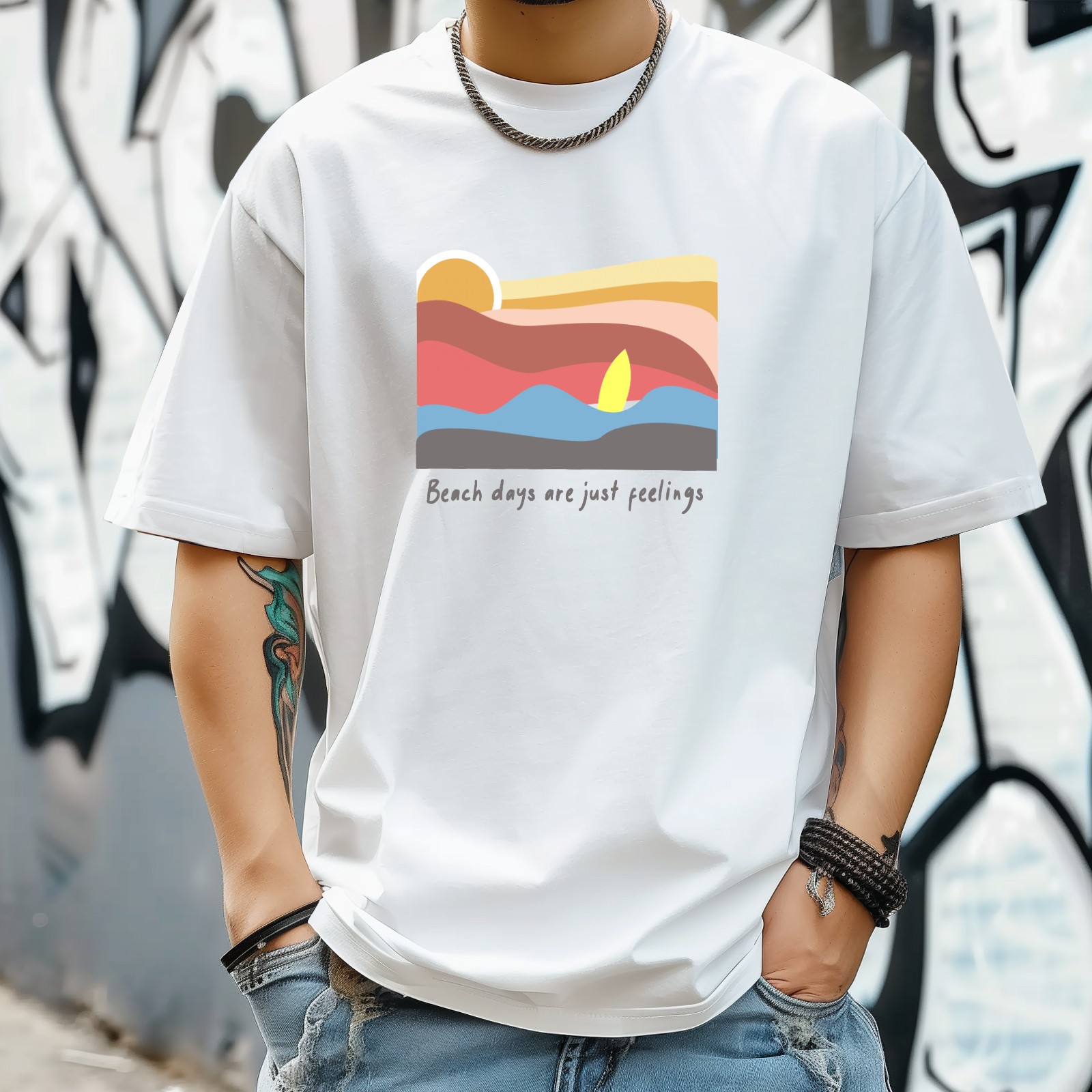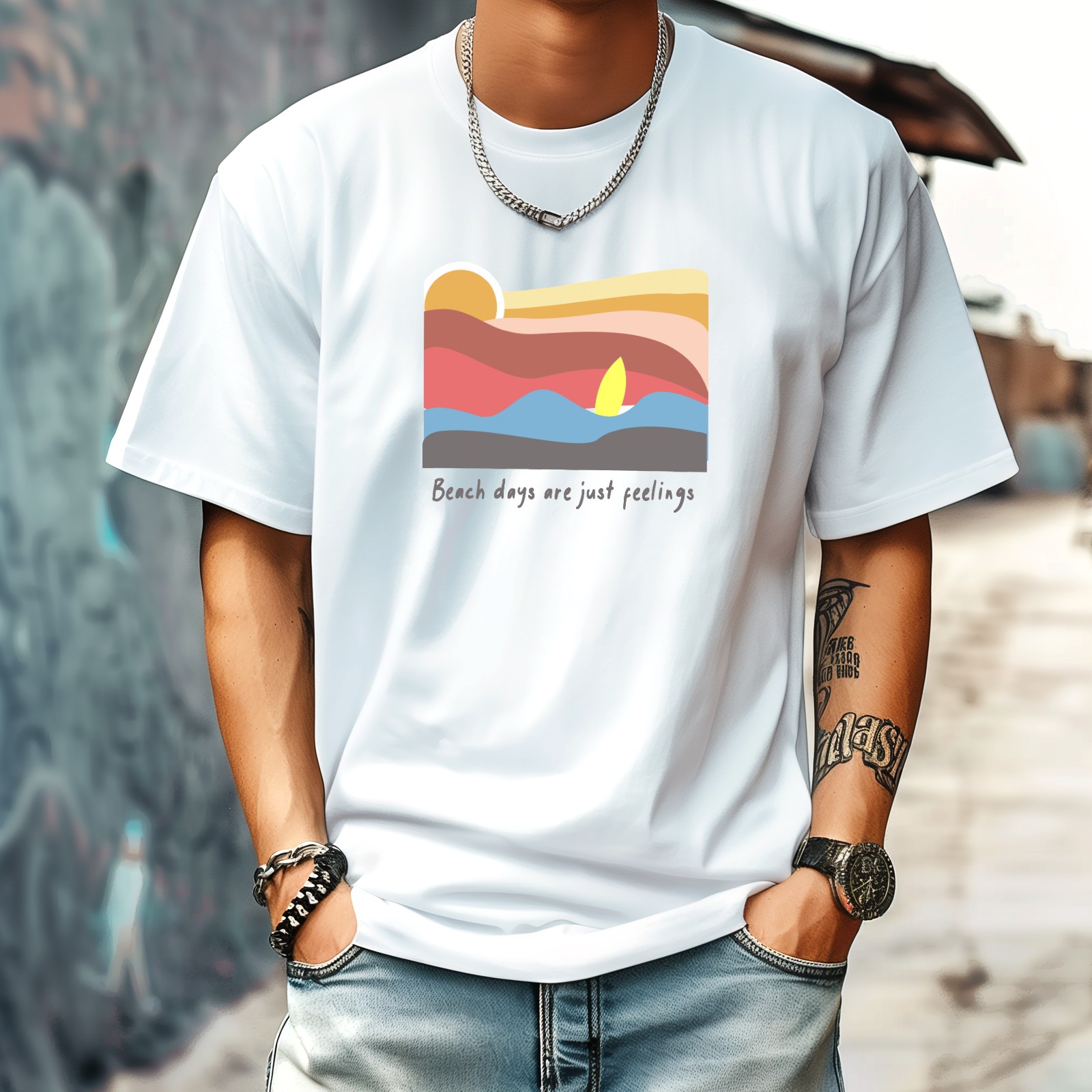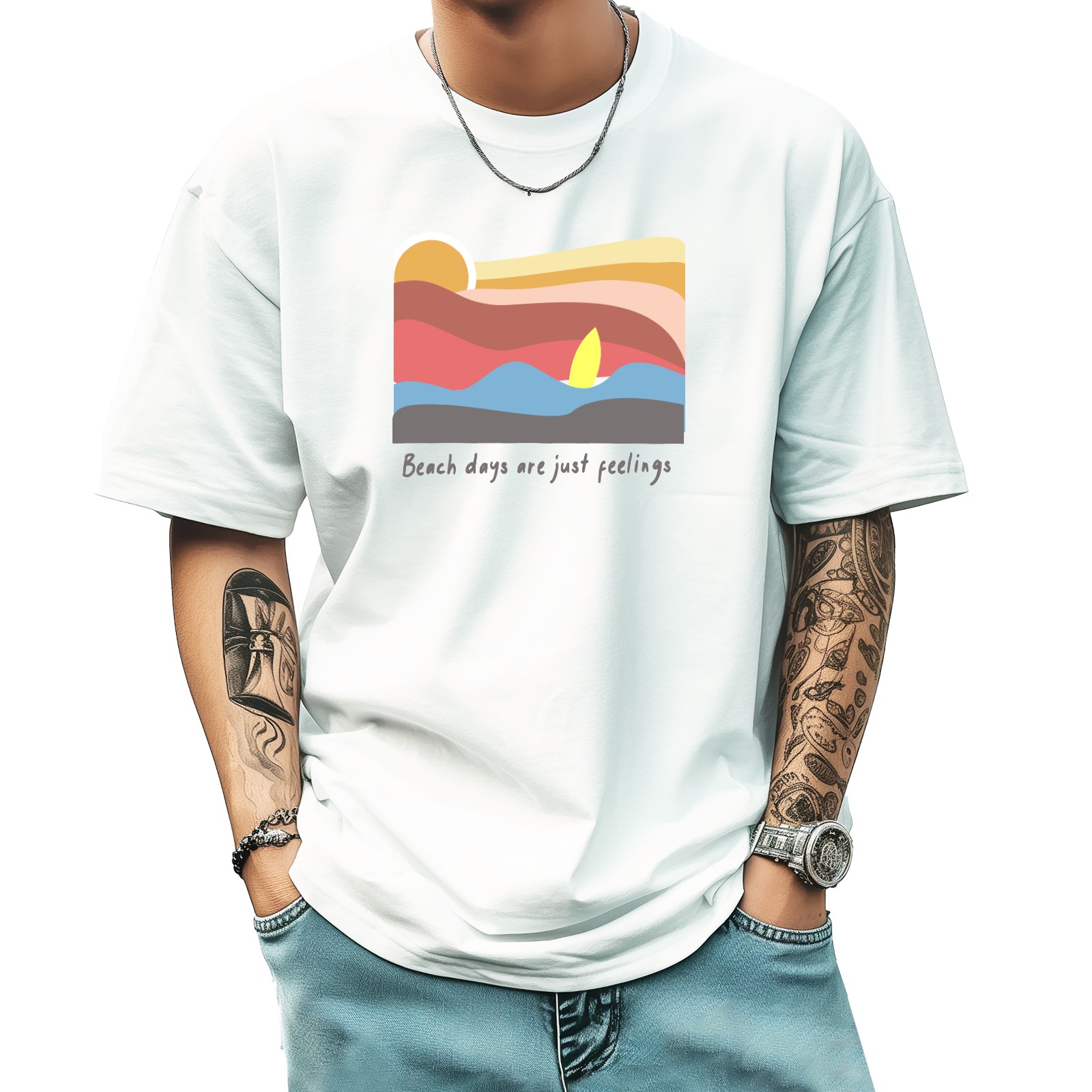 Beach Days Are Just Feelings T-Shirt for Man Tops Short Sleeves Shirt Crew Neck Shirt XS