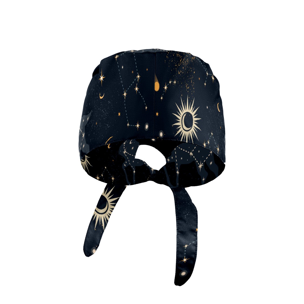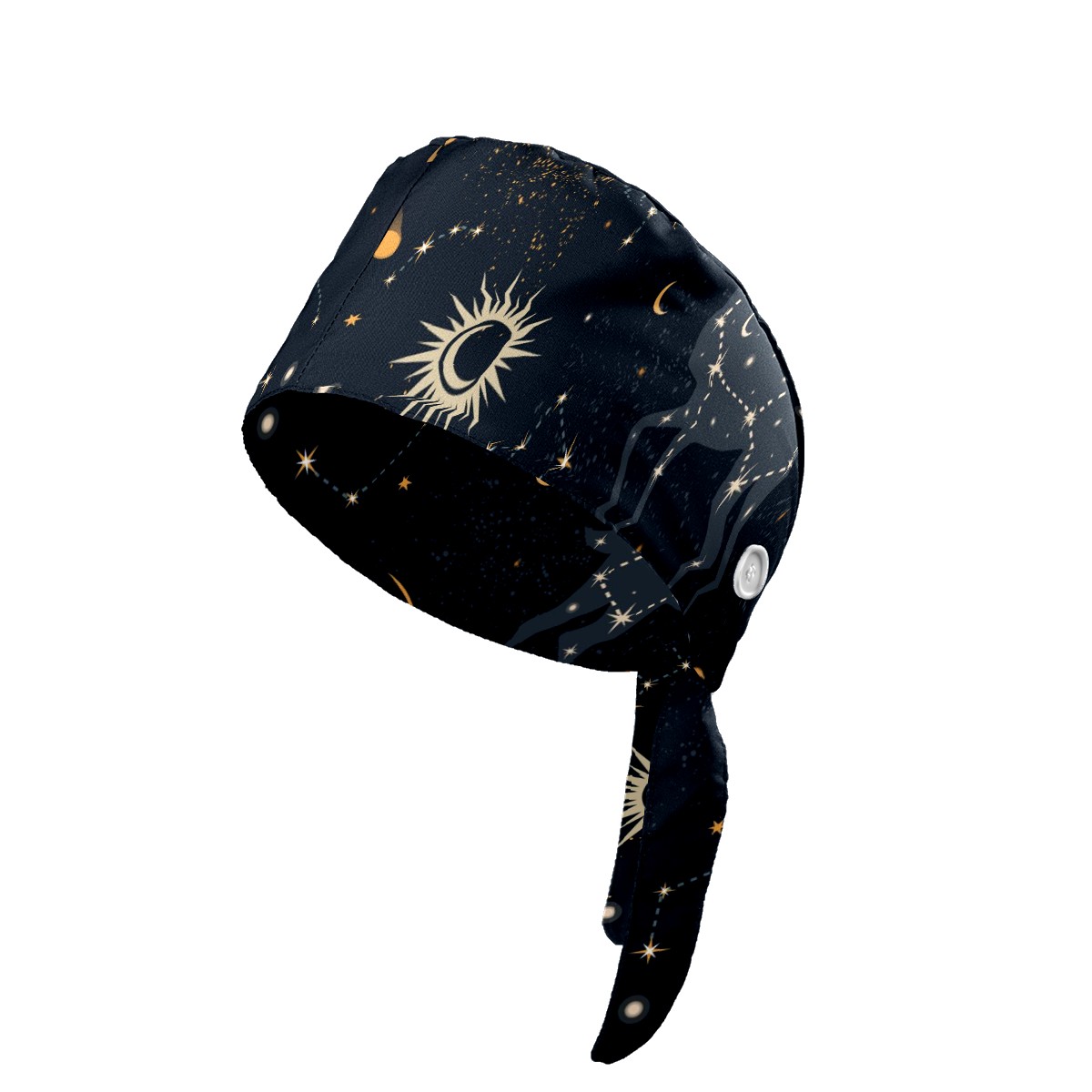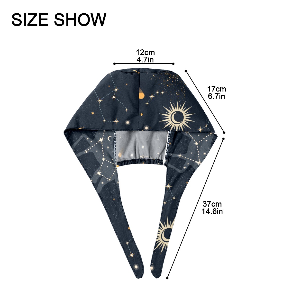 Working Caps with Button & Sweatband Satin Lined Cotton Adjustable Nurse Hats Elastic Band Scrub Cap Surgeon Hat Cosmic Deer Moon Star