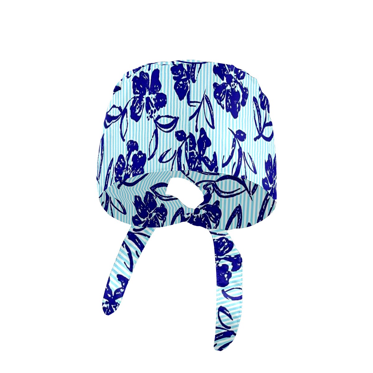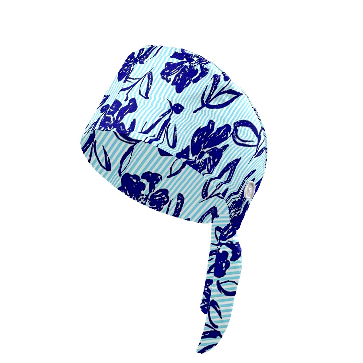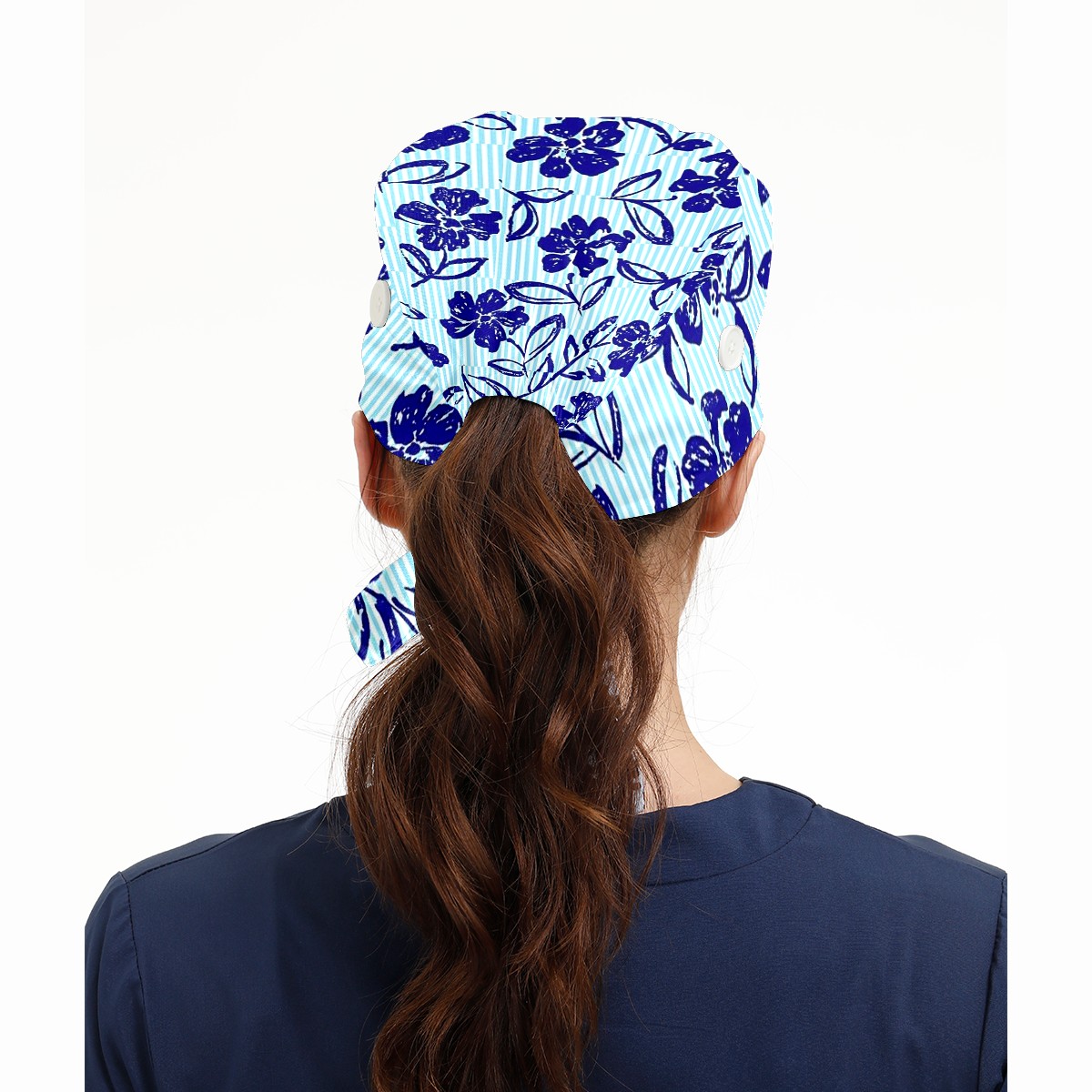 Working Caps with Button & Sweatband Satin Lined Cotton Adjustable Nurse Hats Elastic Band Scrub Cap Surgeon Hat Flower Print