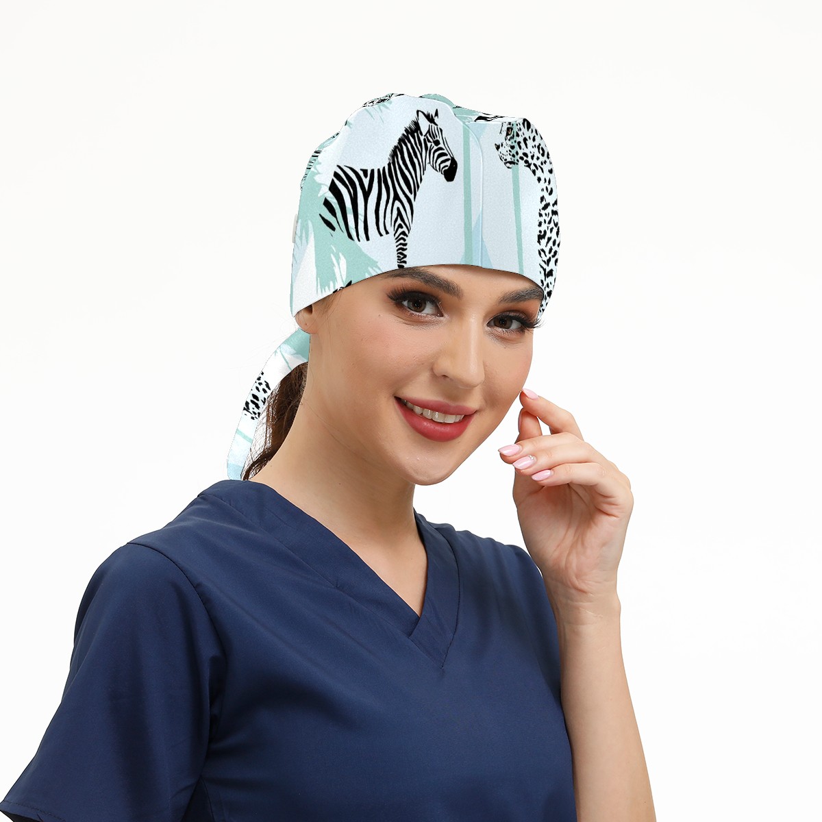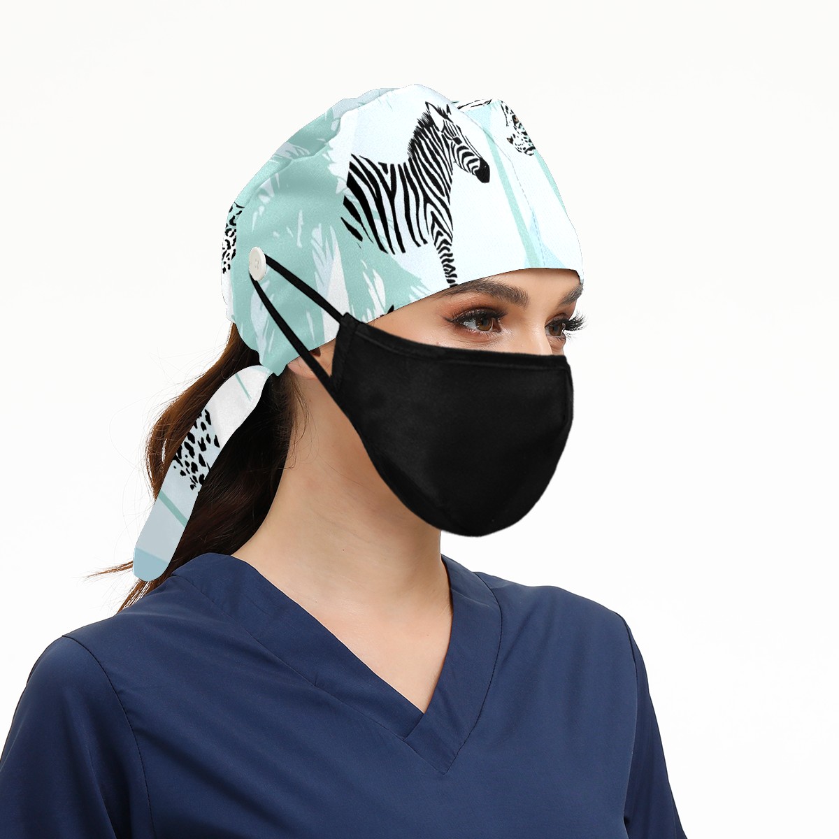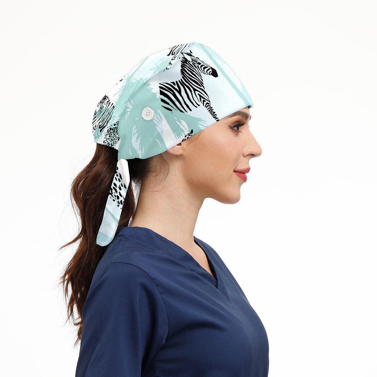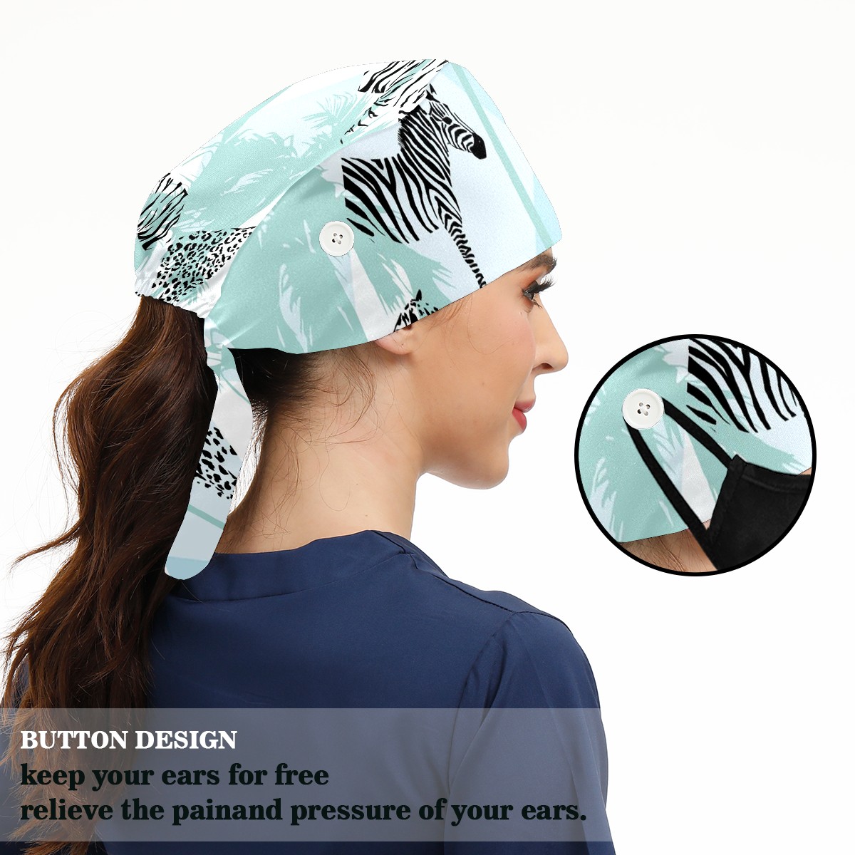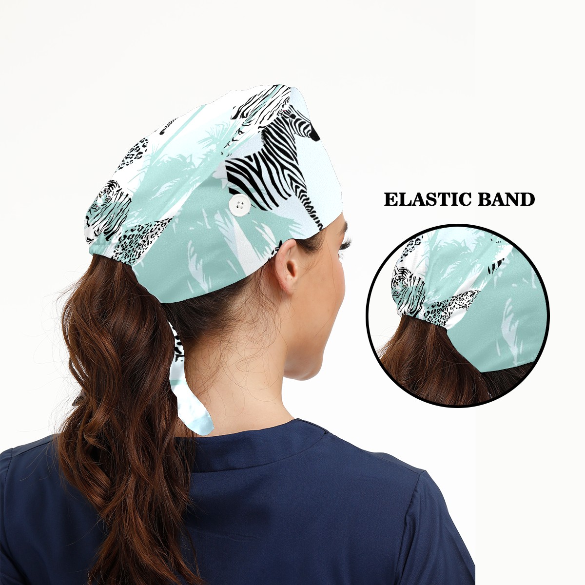 Working Caps with Button & Sweatband Satin Lined Cotton Adjustable Nurse Hats Elastic Band Scrub Cap Surgeon Hat Animal Print