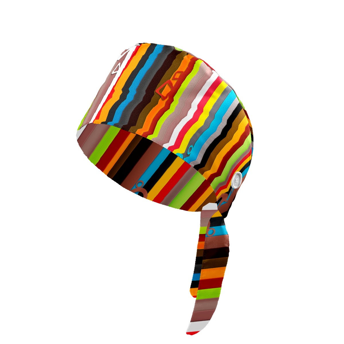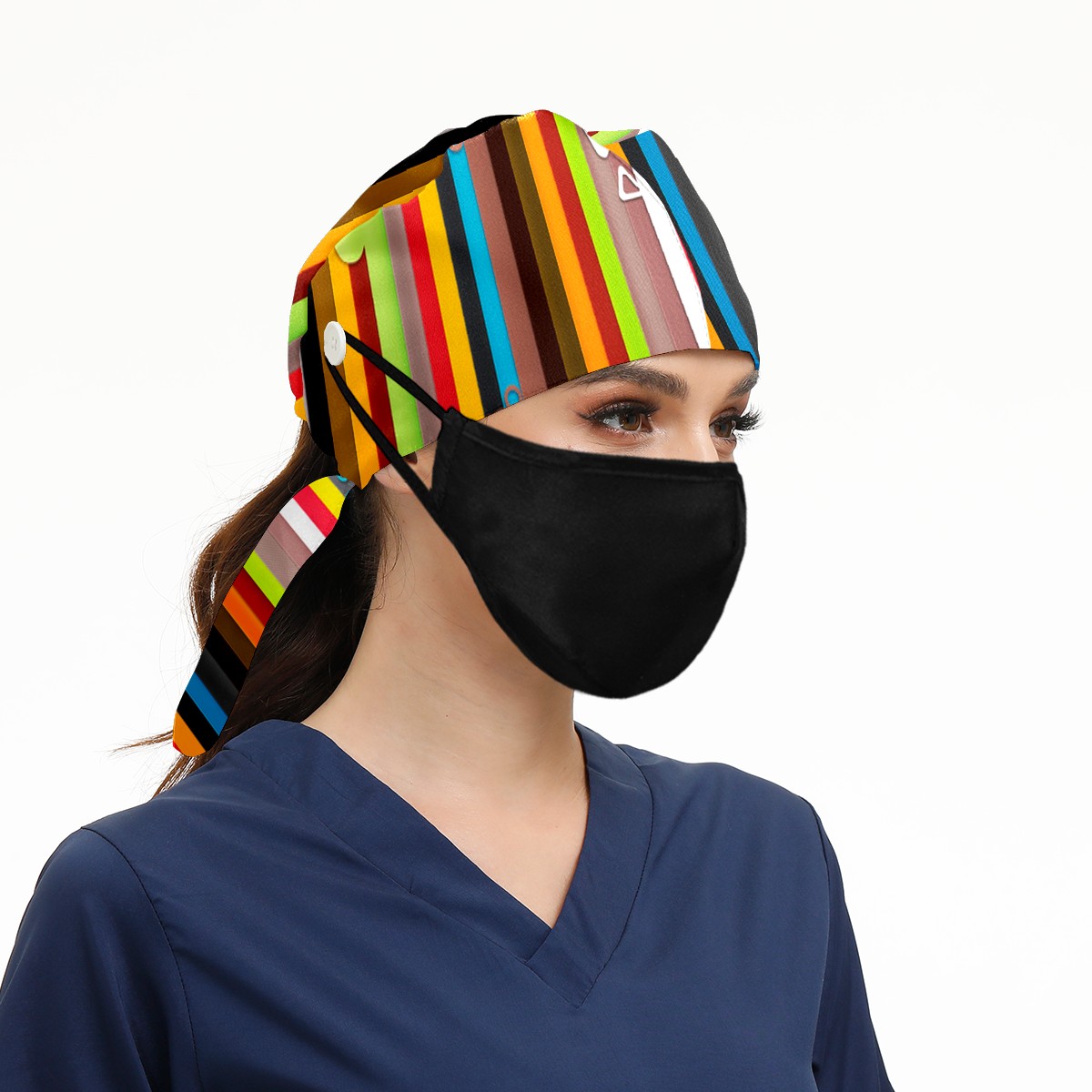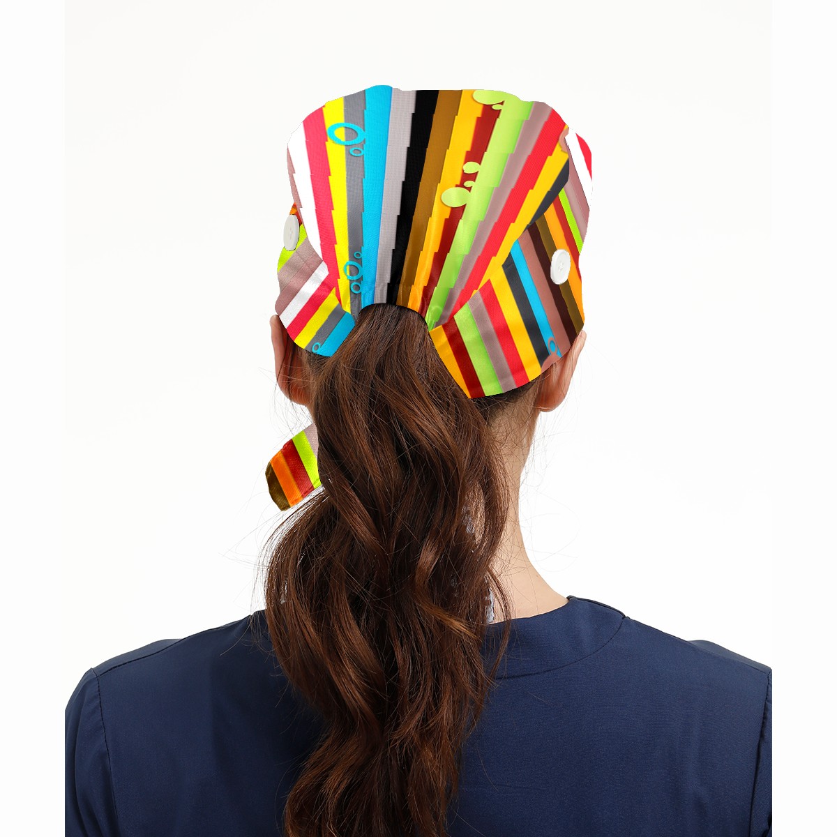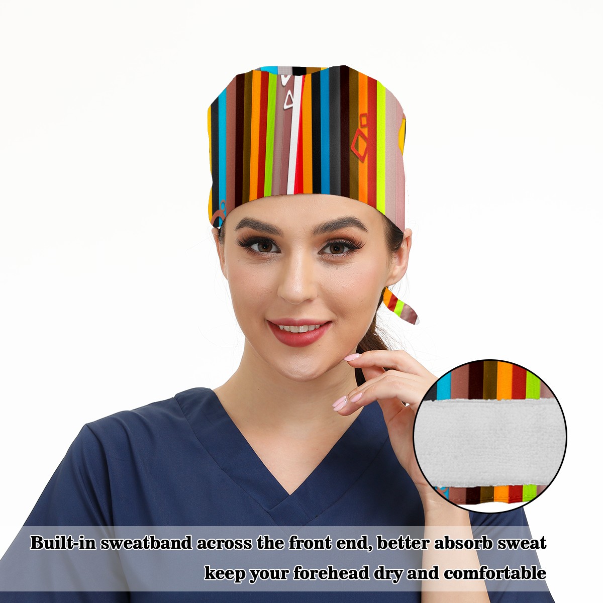 Working Caps with Button & Sweatband Satin Lined Cotton Adjustable Nurse Hats Elastic Band Scrub Cap Surgeon Hat Rainbow Stripes