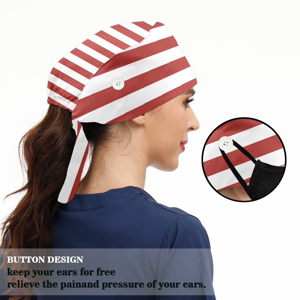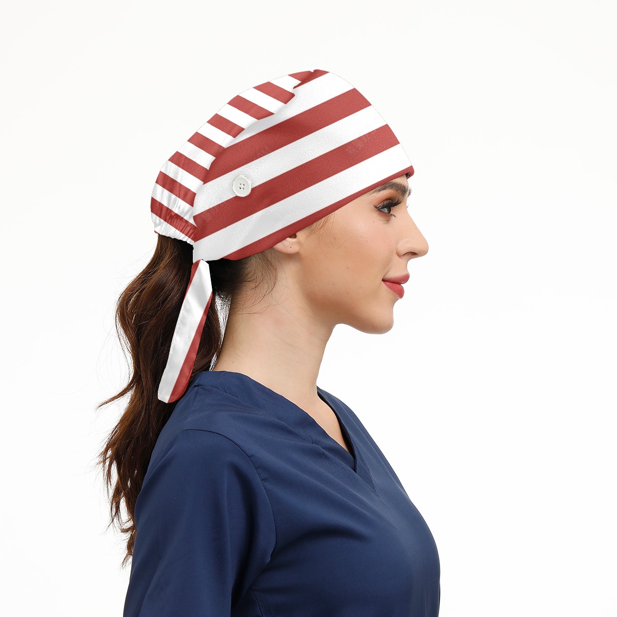Working Caps with Button & Sweatband Satin Lined Cotton Adjustable Nurse Hats Elastic Band Scrub Cap Surgeon Hat Stripe