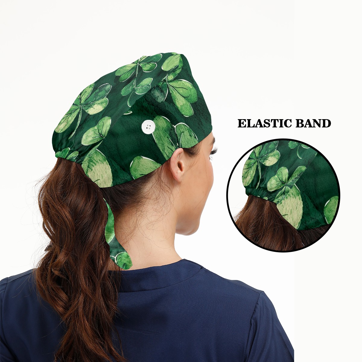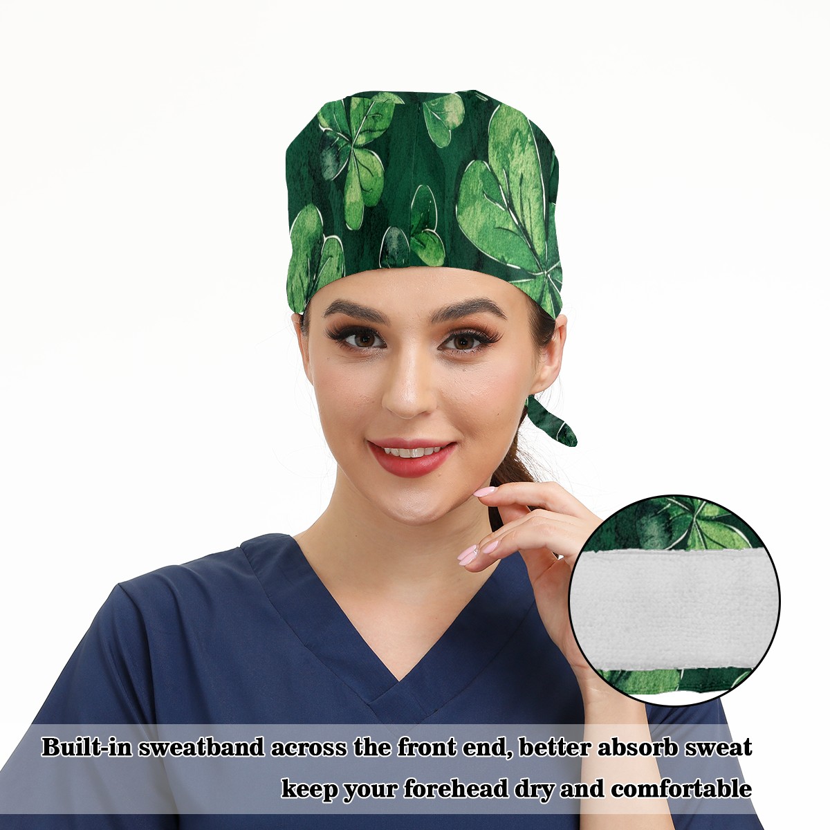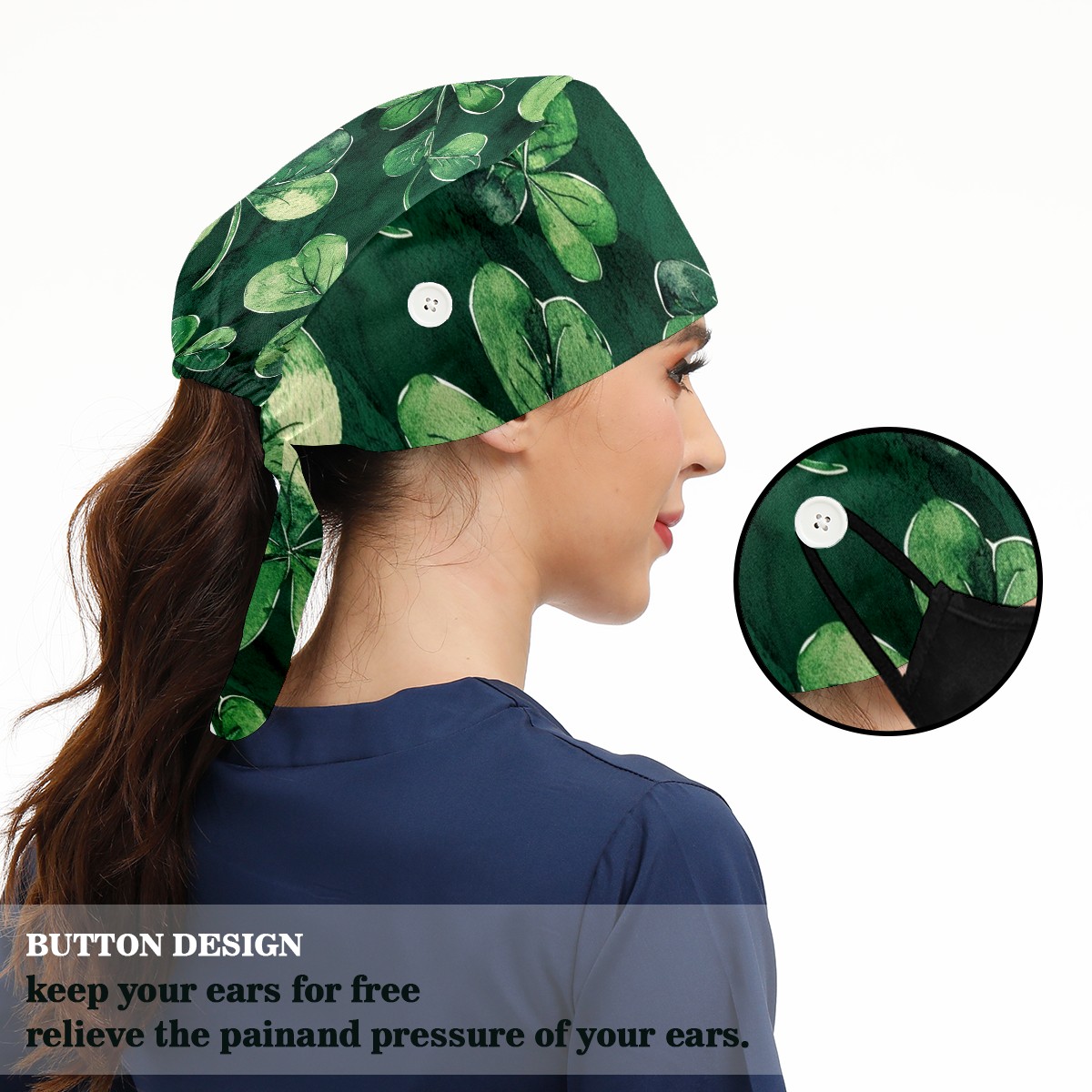 Working Caps with Button & Sweatband Satin Lined Cotton Adjustable Nurse Hats Elastic Band Scrub Cap Surgeon Hat Clover