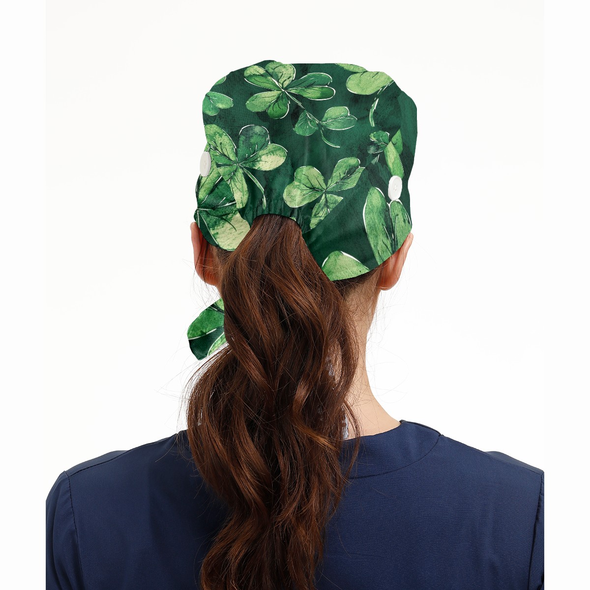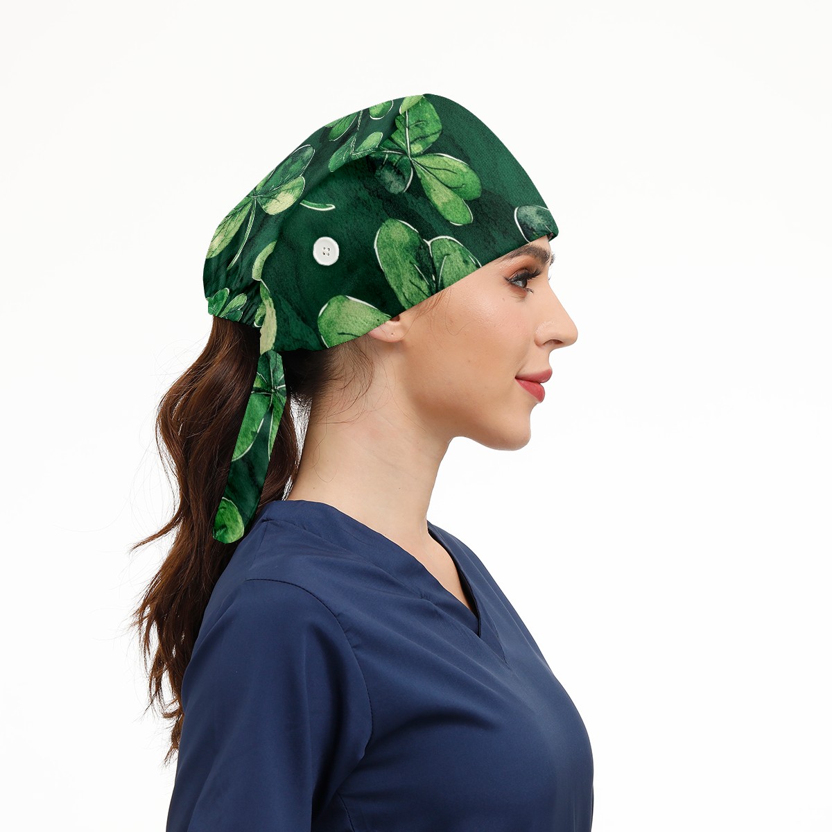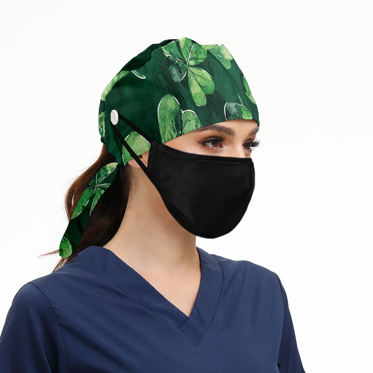 Working Caps with Button & Sweatband Satin Lined Cotton Adjustable Nurse Hats Elastic Band Scrub Cap Surgeon Hat Clover