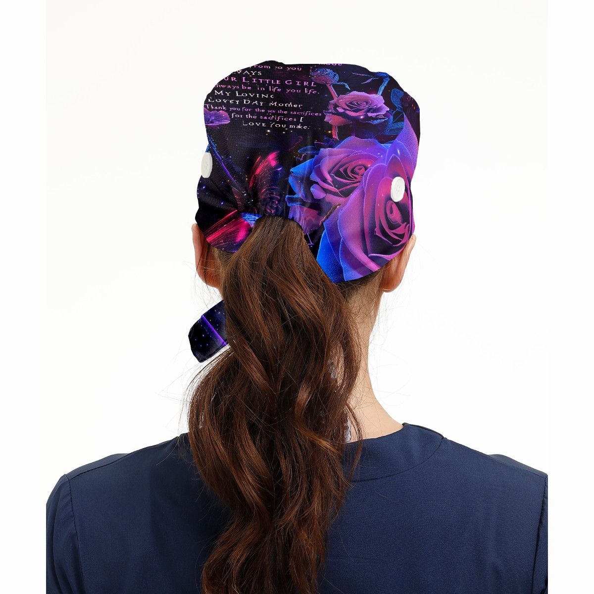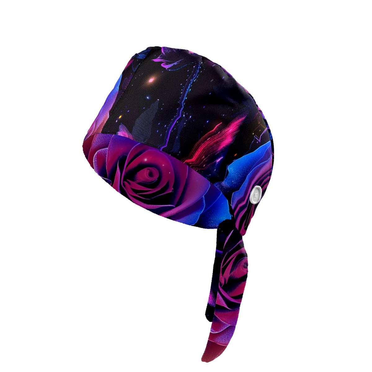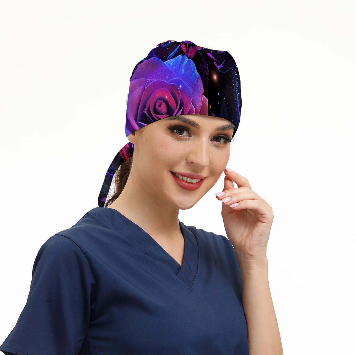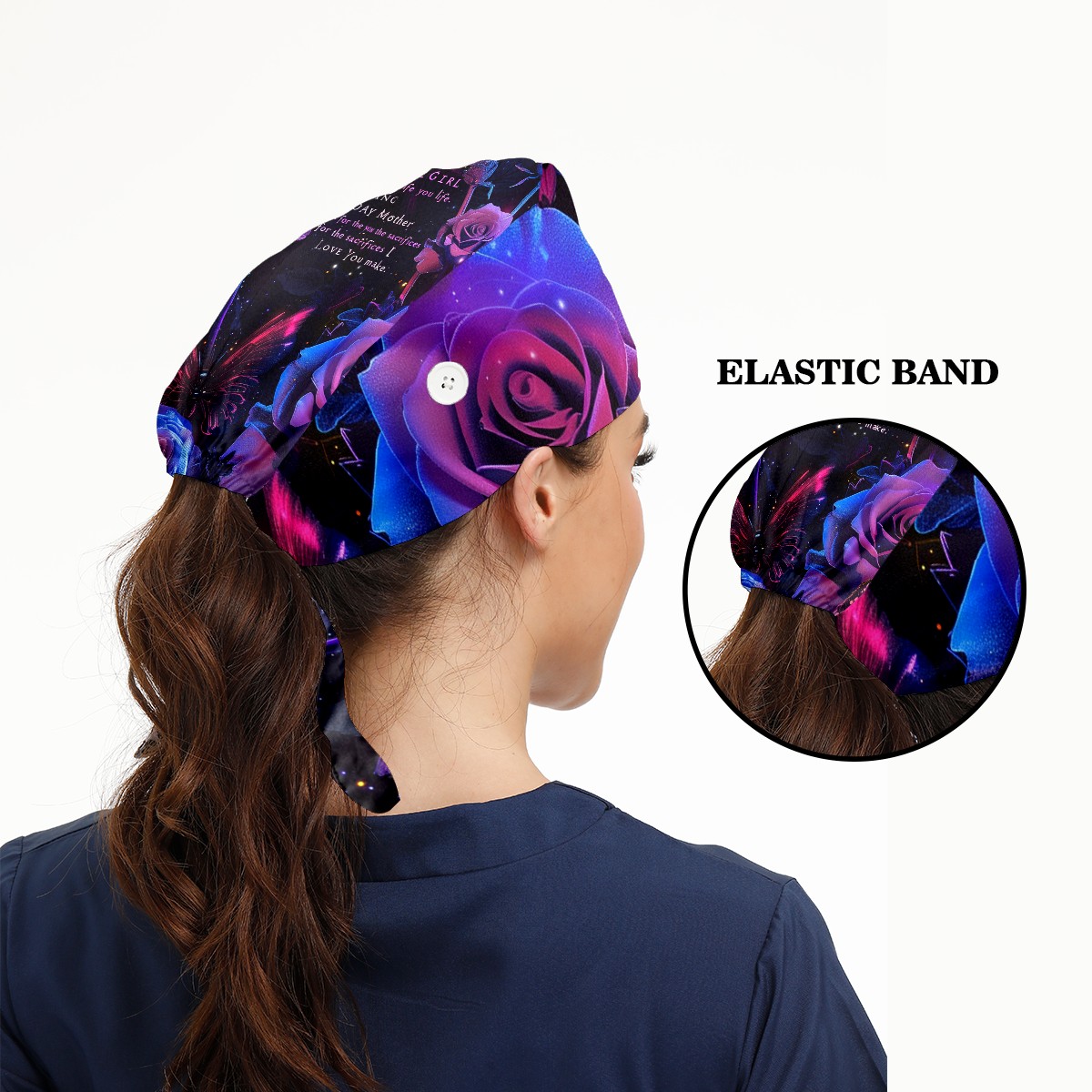 Working Caps with Button & Sweatband Satin Lined Cotton Adjustable Nurse Hats Elastic Band Scrub Cap Surgeon Hat Flower
