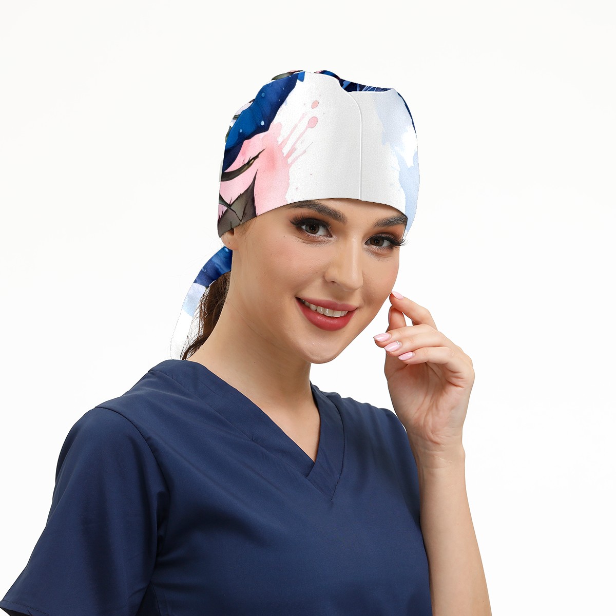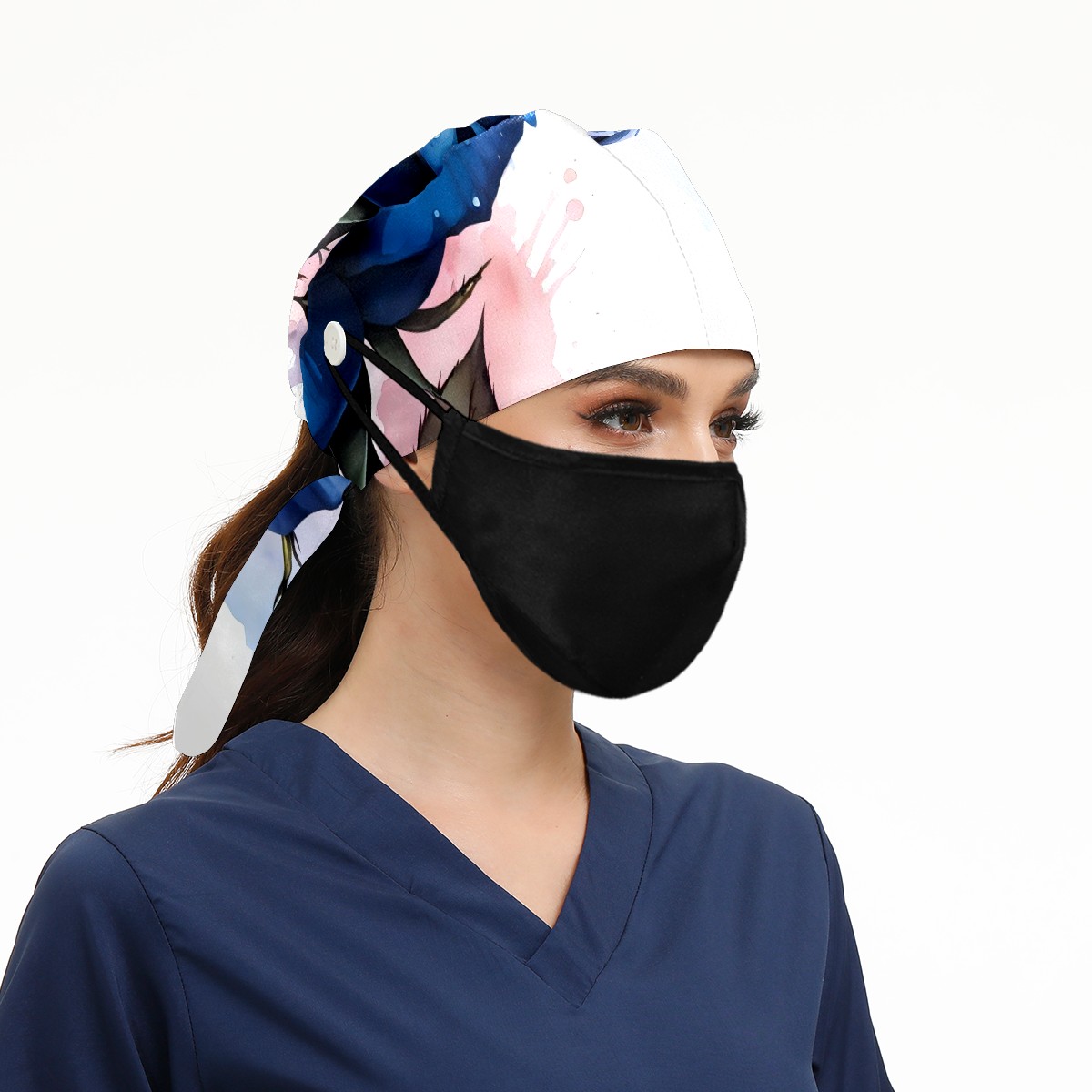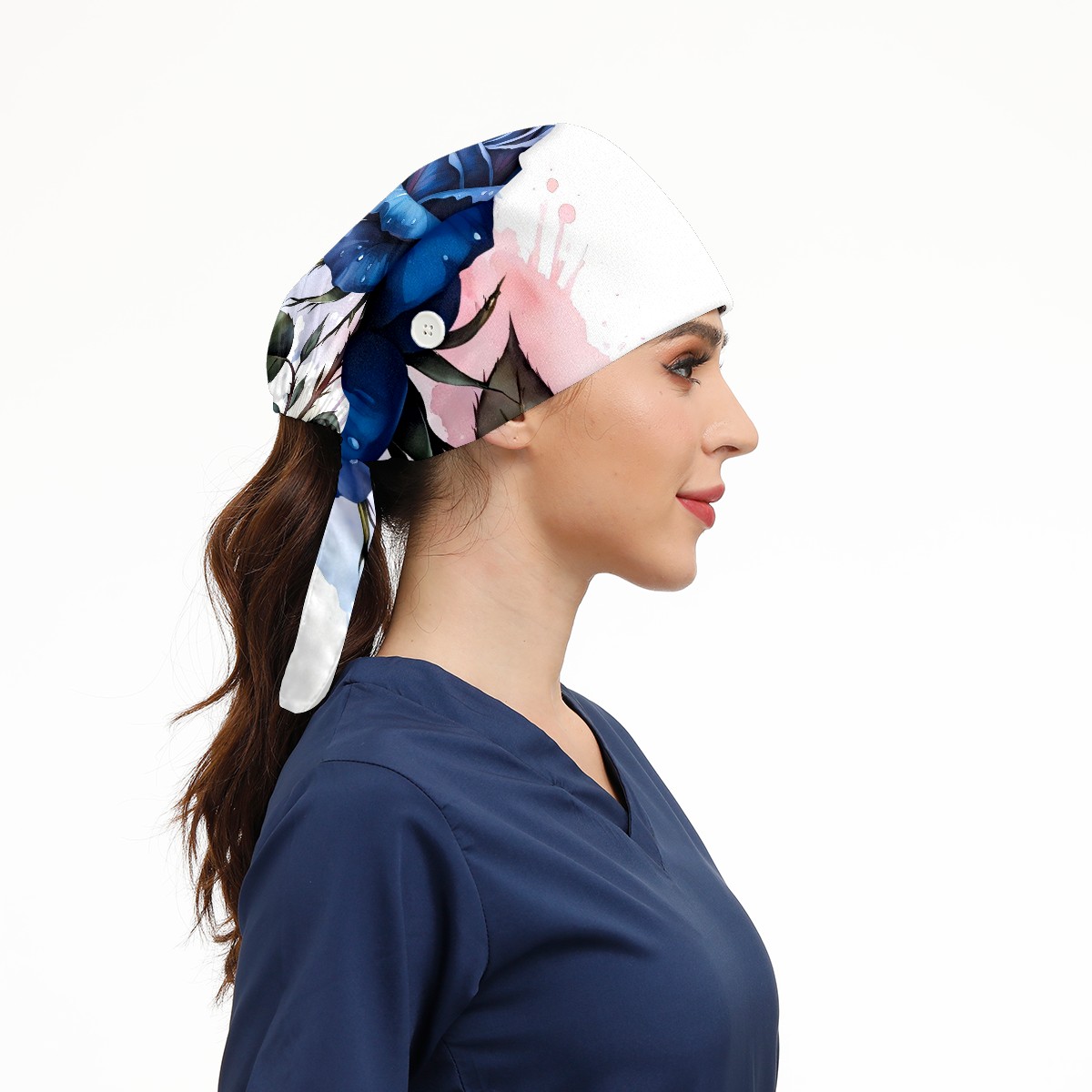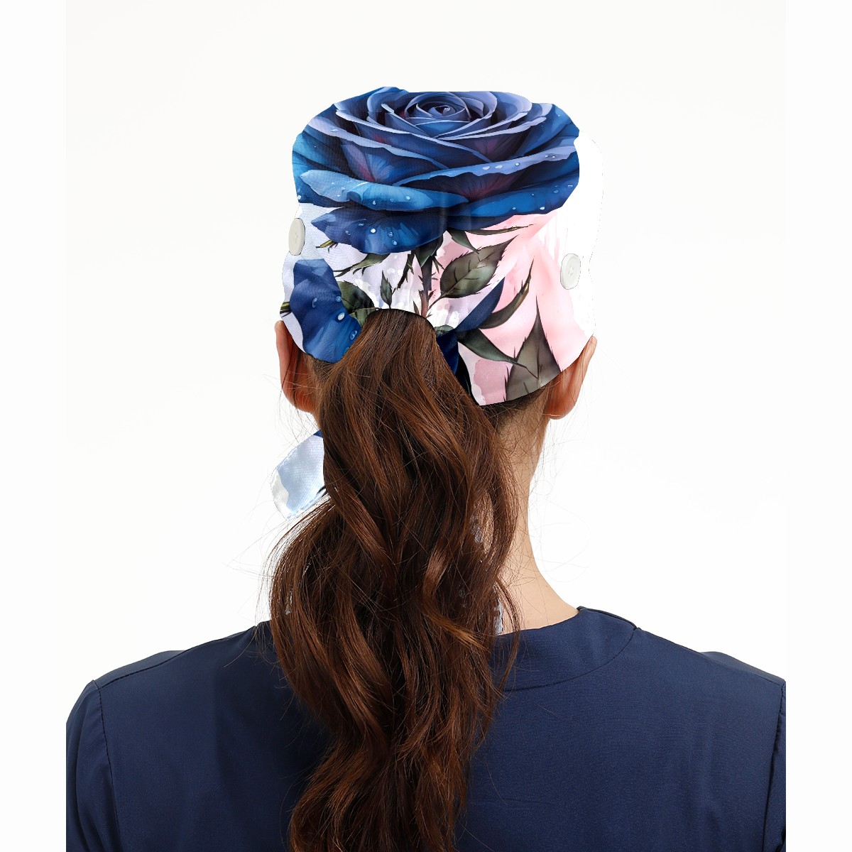 Working Caps with Button & Sweatband Satin Lined Cotton Adjustable Nurse Hats Elastic Band Scrub Cap Surgeon Hat Rose