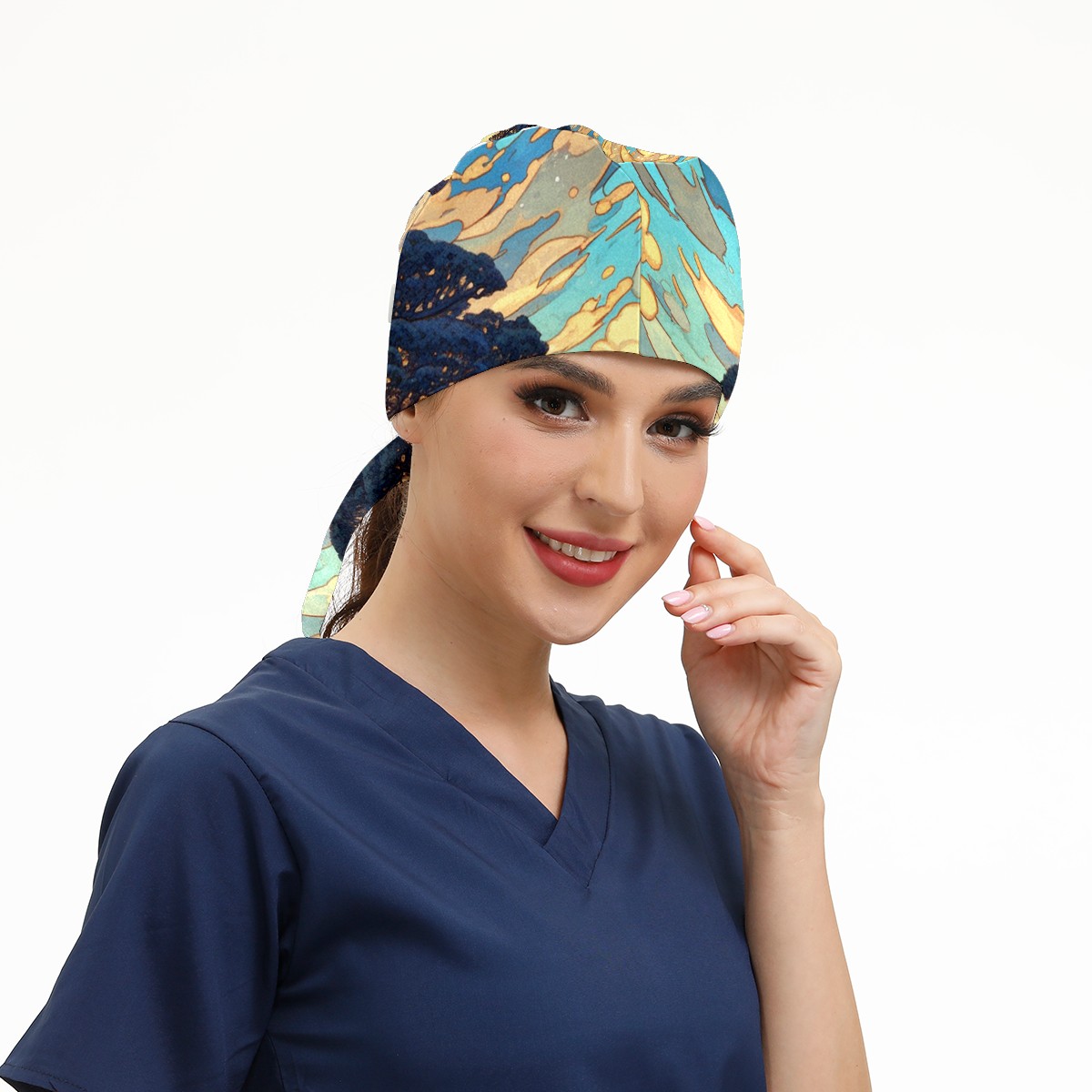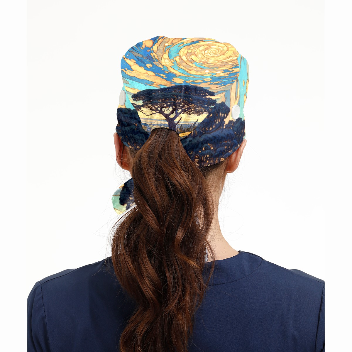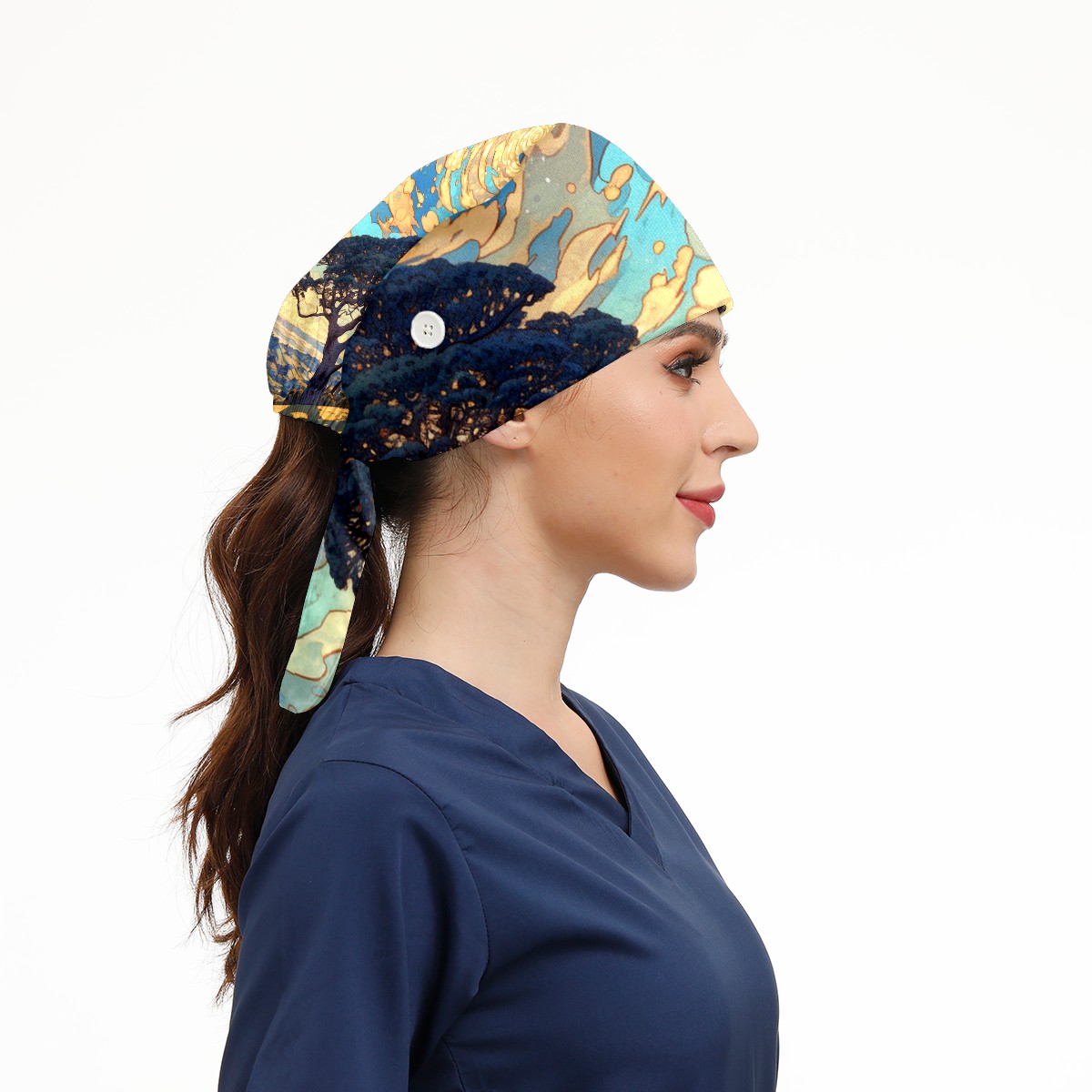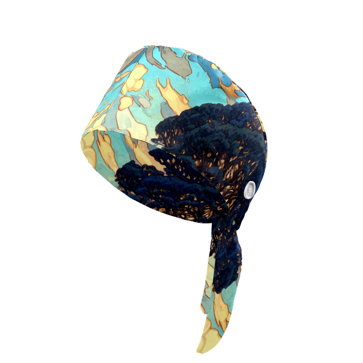 Working Caps with Button & Sweatband Satin Lined Cotton Adjustable Nurse Hats Elastic Band Scrub Cap Surgeon Hat Tree