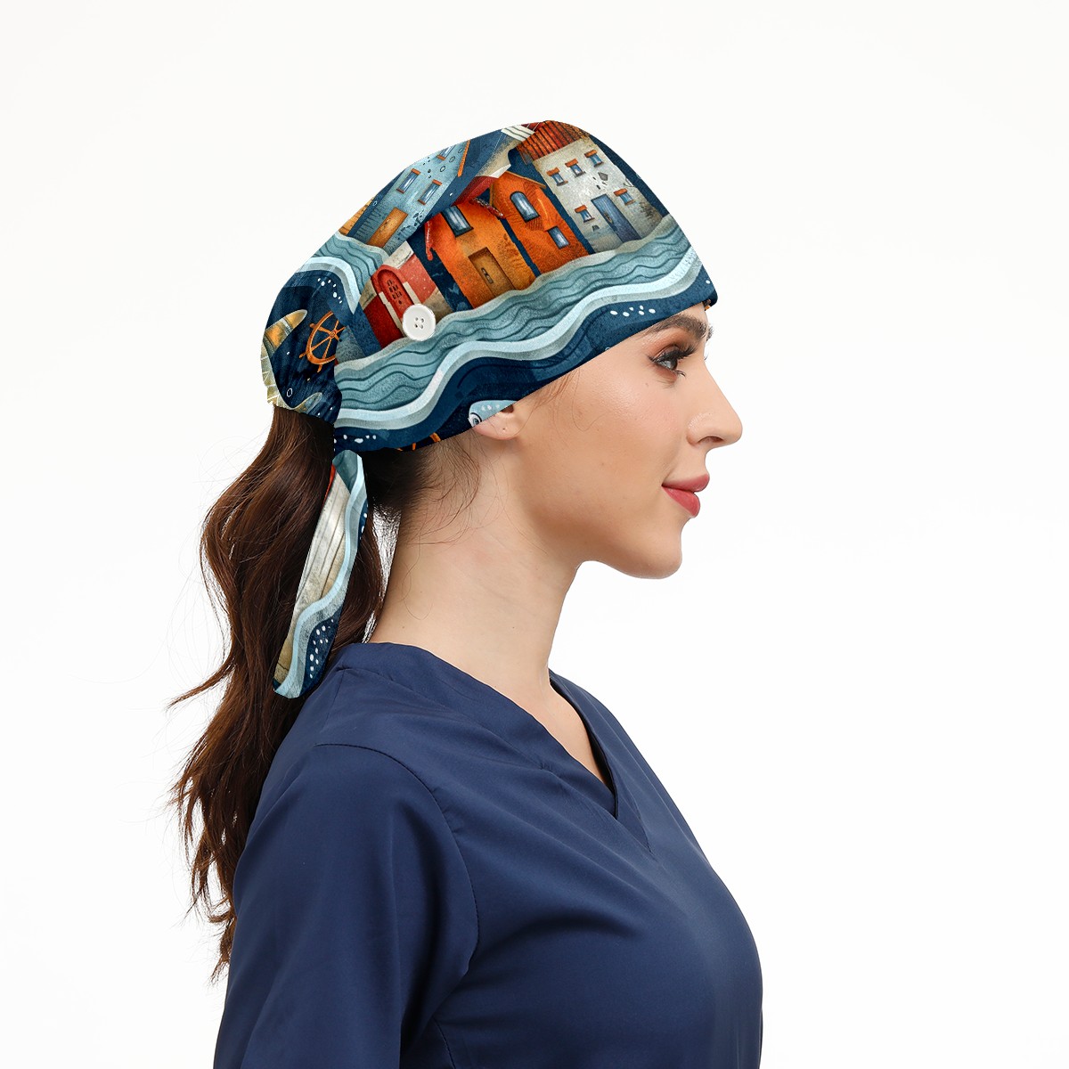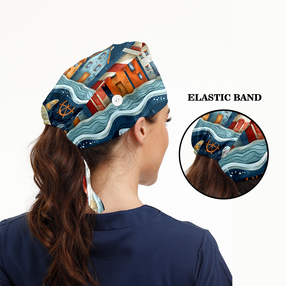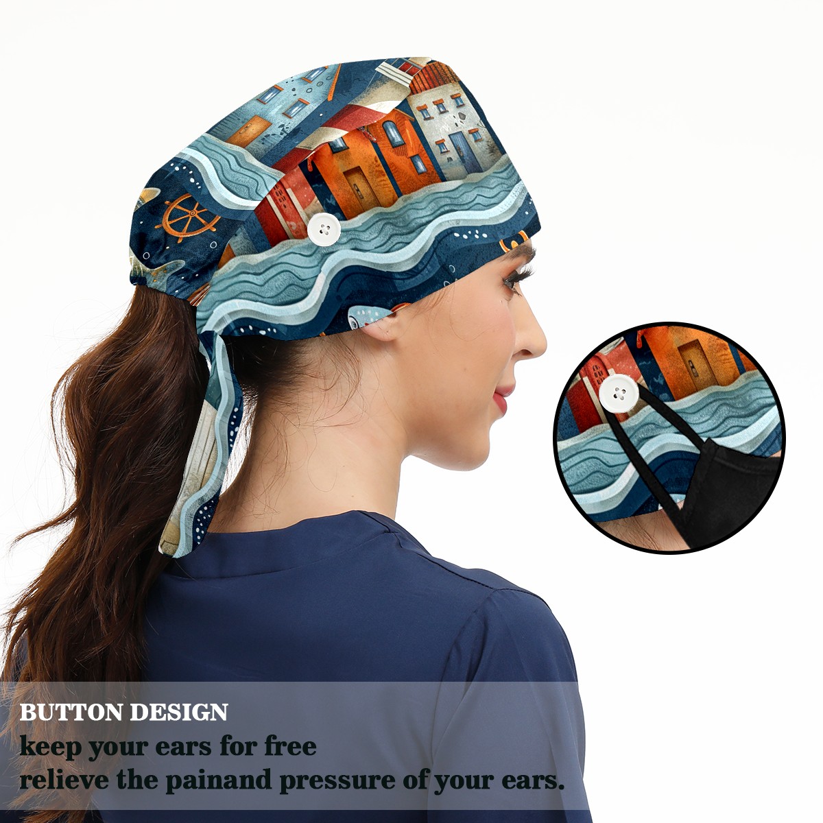 Working Caps with Button & Sweatband Satin Lined Cotton Adjustable Nurse Hats Elastic Band Scrub Cap Surgeon Hat Castle
