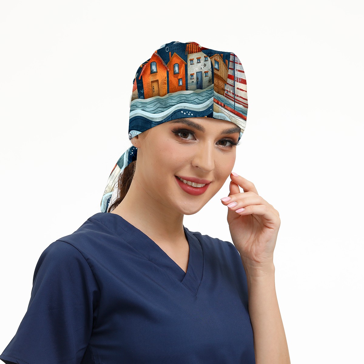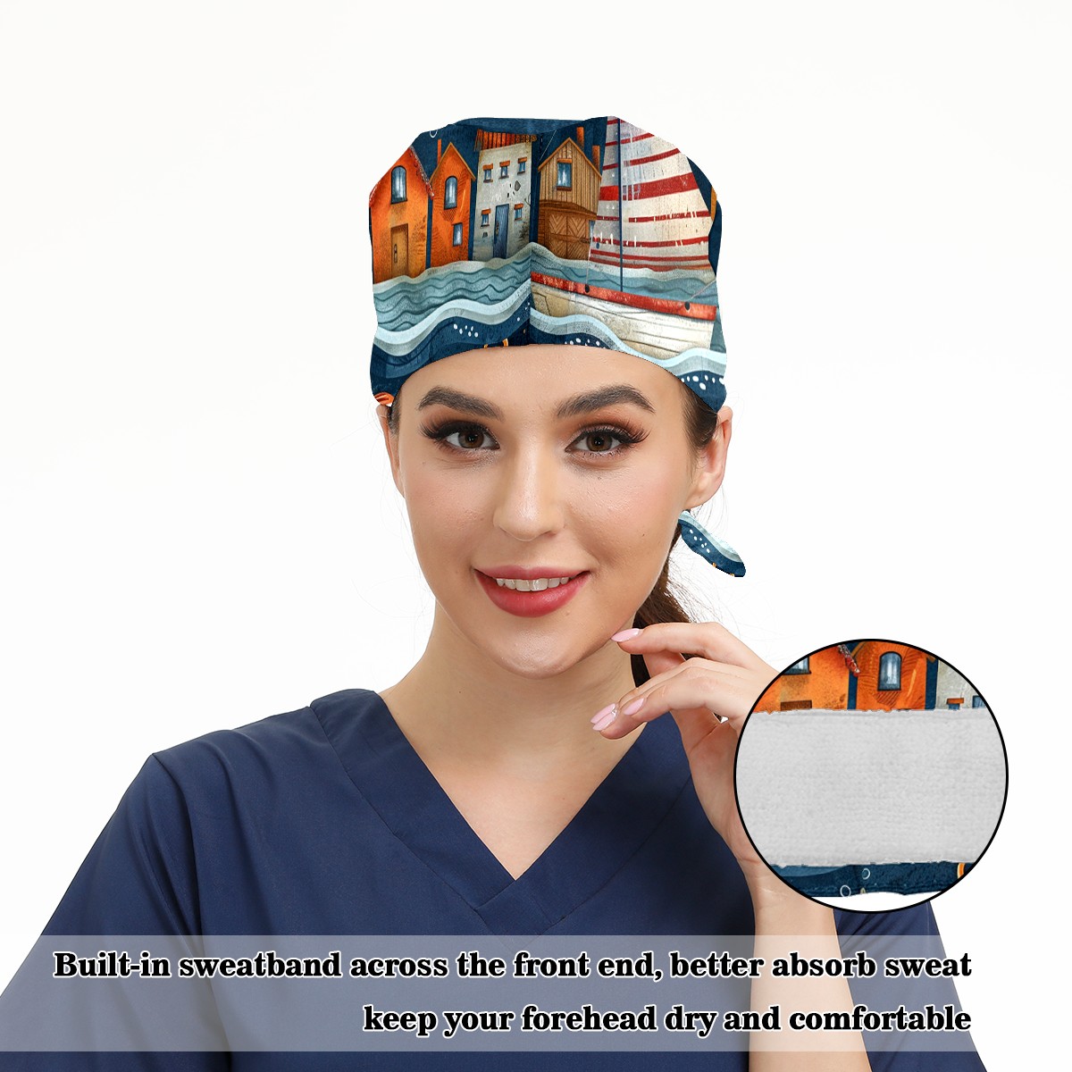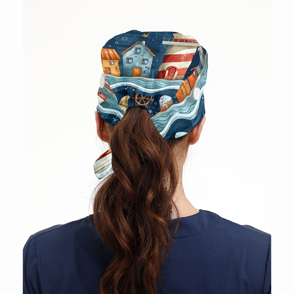 Working Caps with Button & Sweatband Satin Lined Cotton Adjustable Nurse Hats Elastic Band Scrub Cap Surgeon Hat Castle