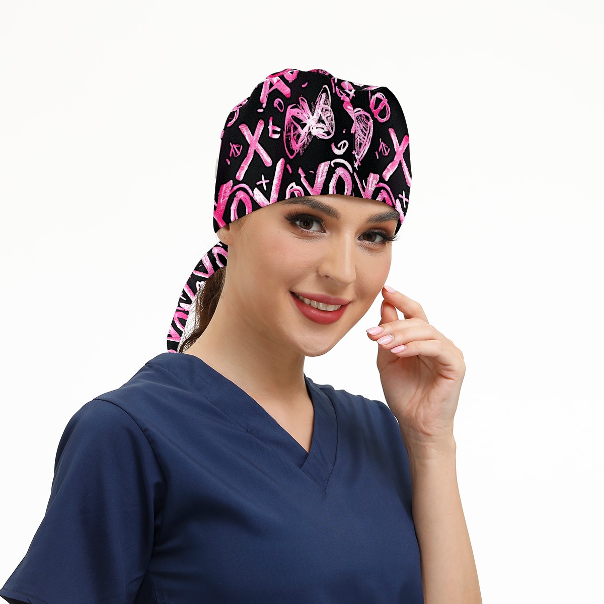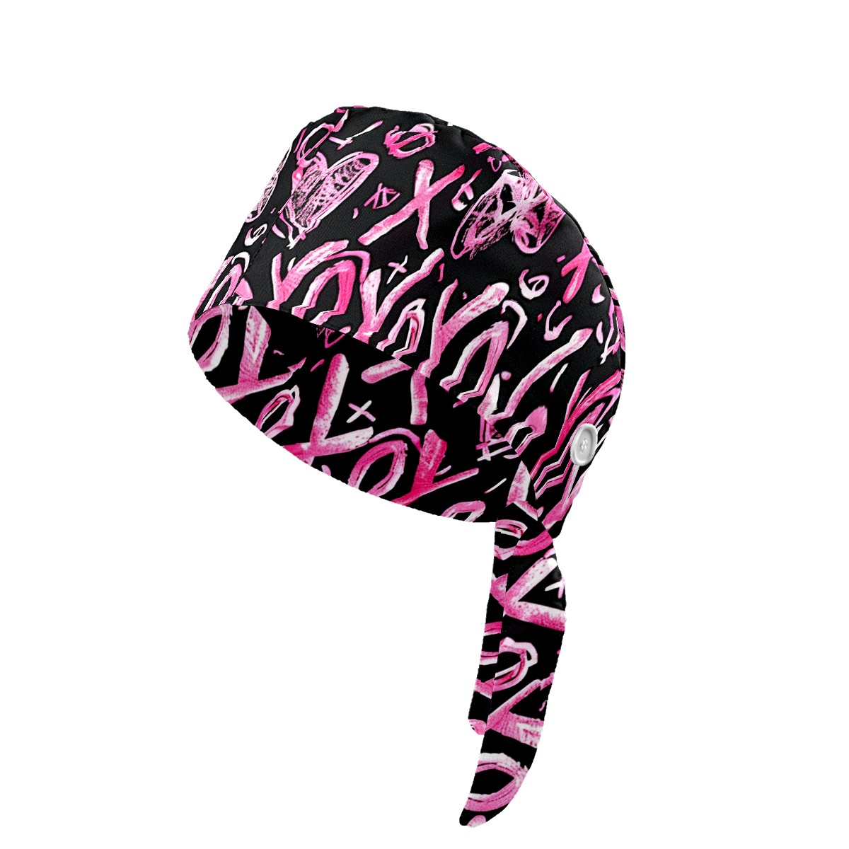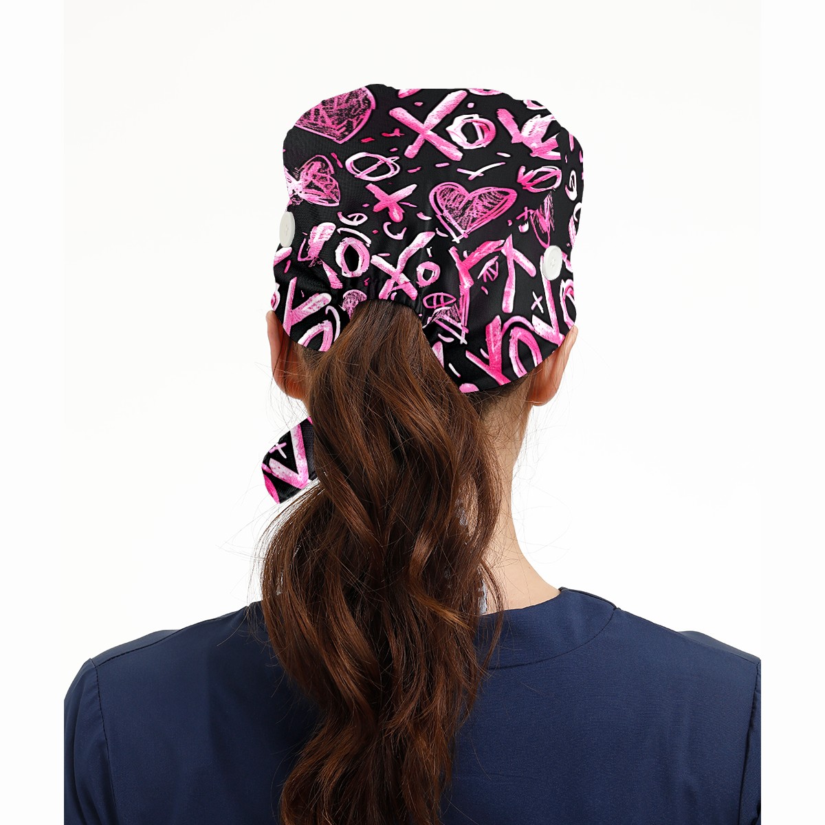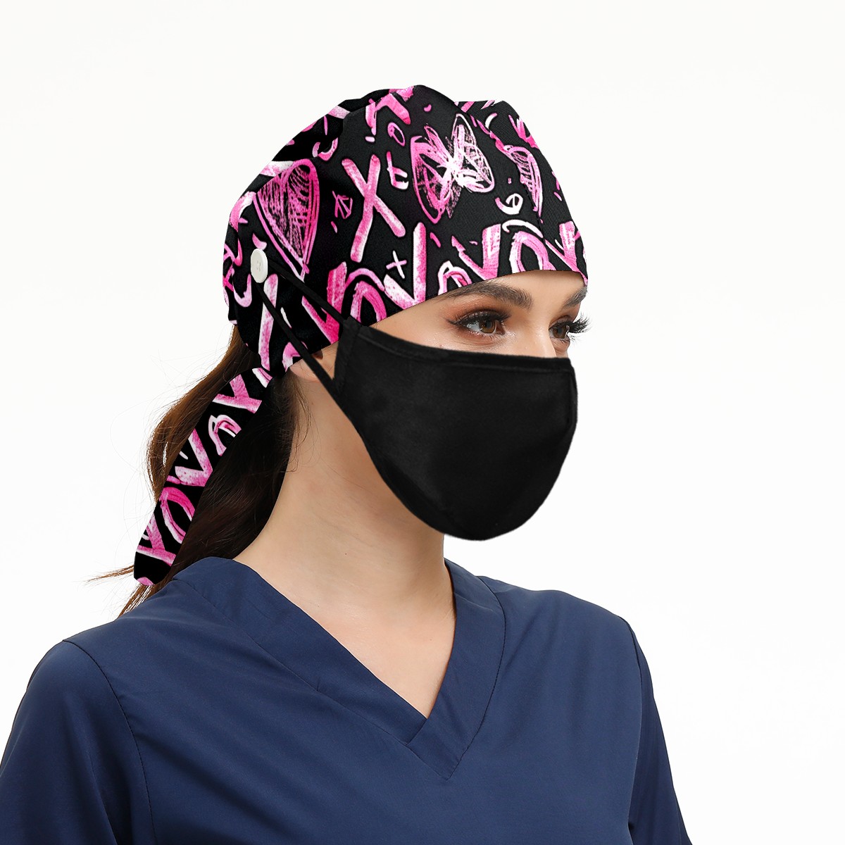 Working Caps with Button & Sweatband Satin Lined Cotton Adjustable Nurse Hats Elastic Band Scrub Cap Surgeon Hat Love