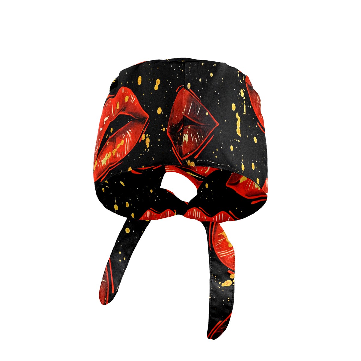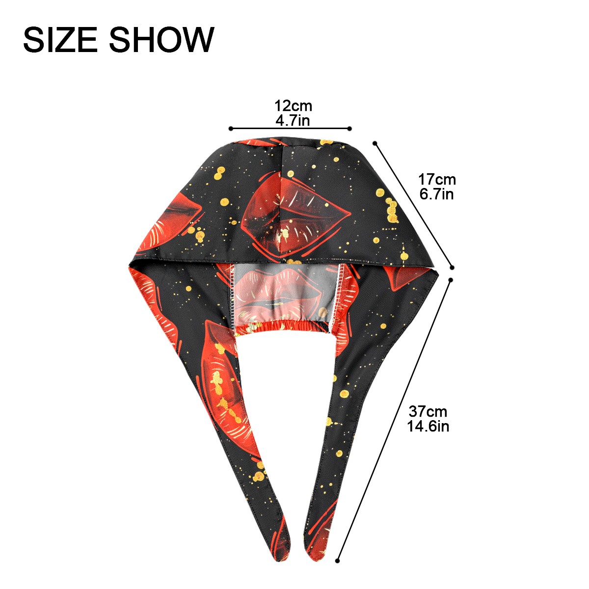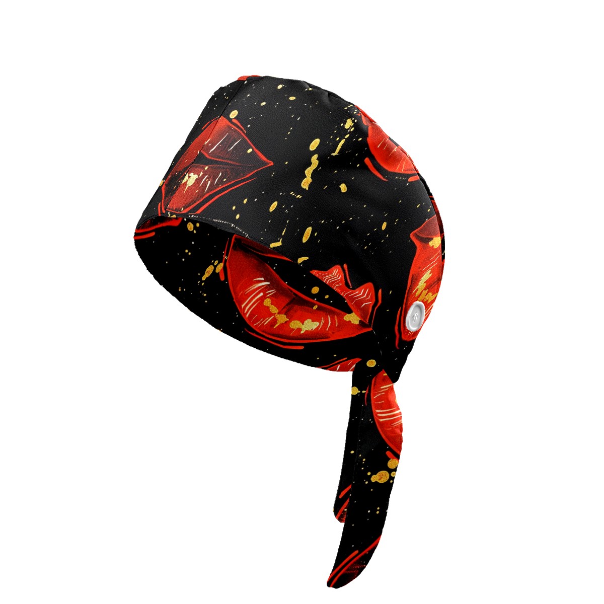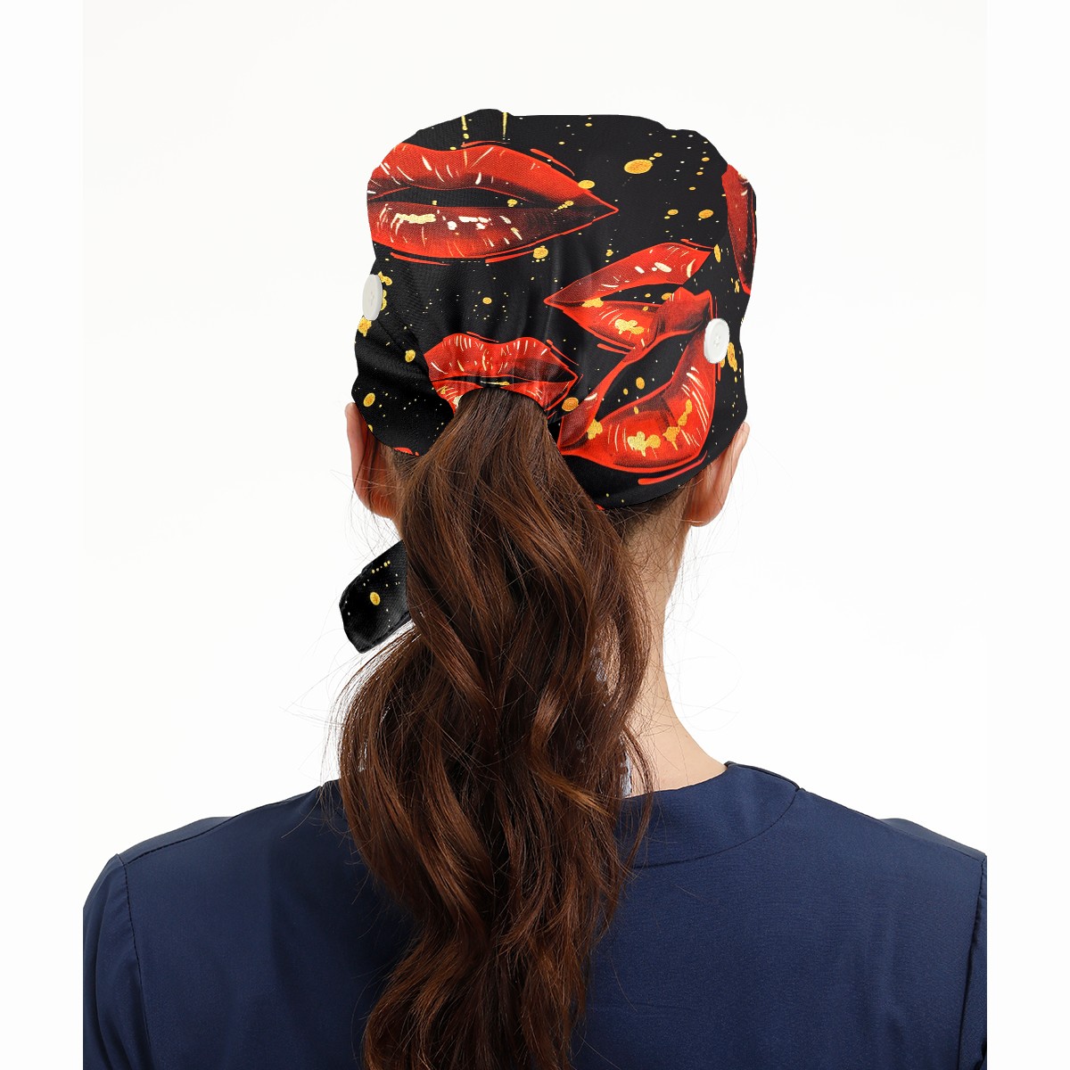 Working Caps with Button & Sweatband Satin Lined Cotton Adjustable Nurse Hats Elastic Band Scrub Cap Surgeon Hat Red Lips