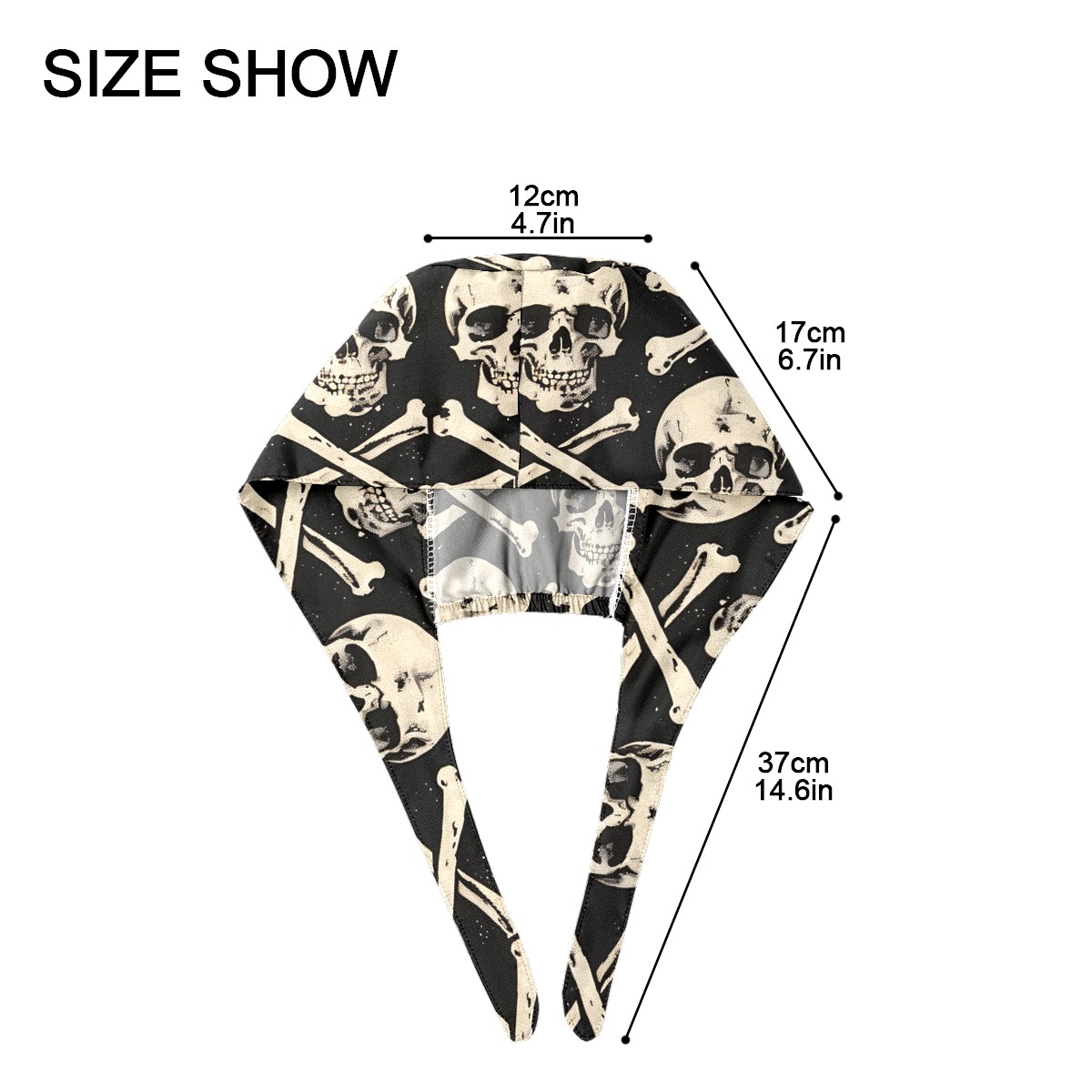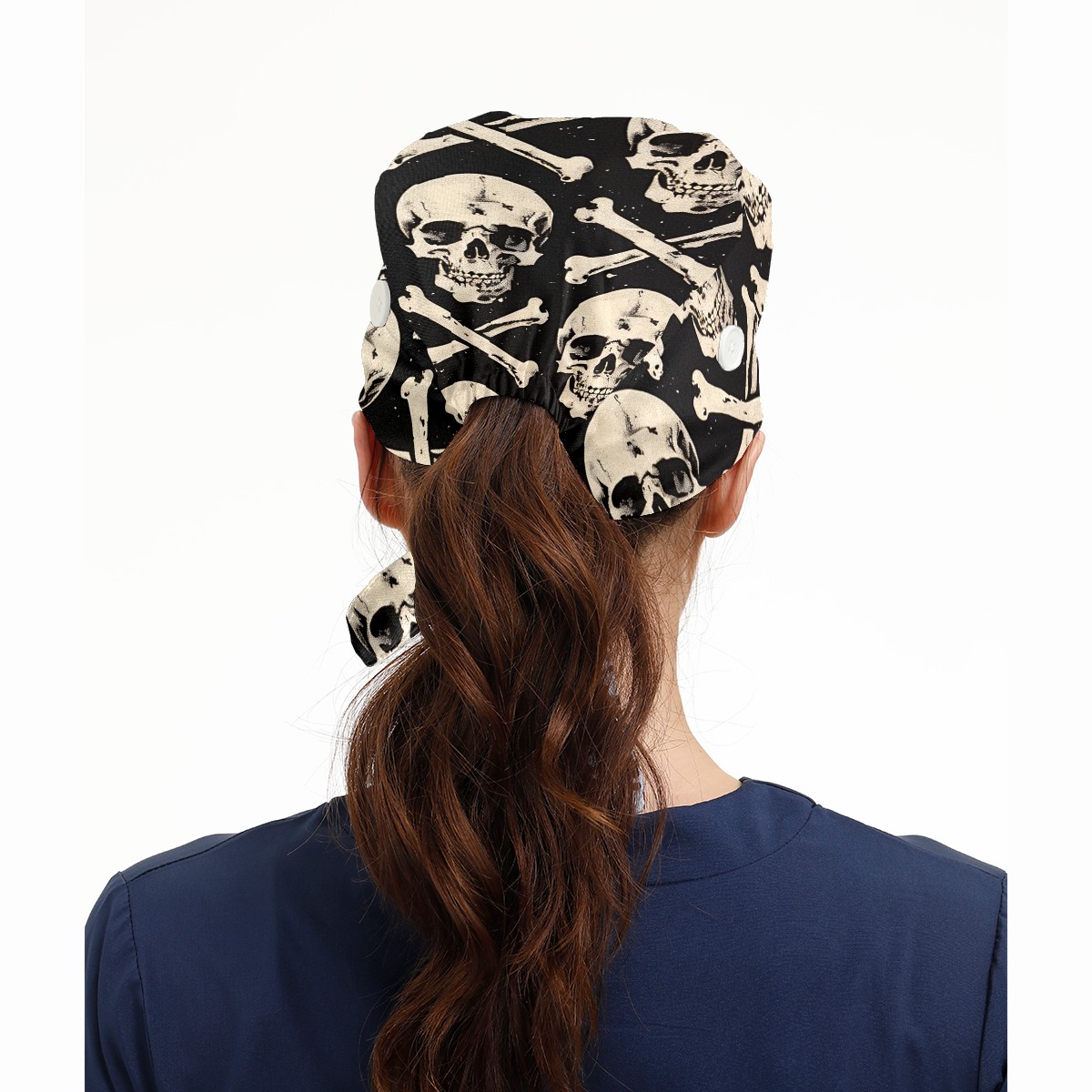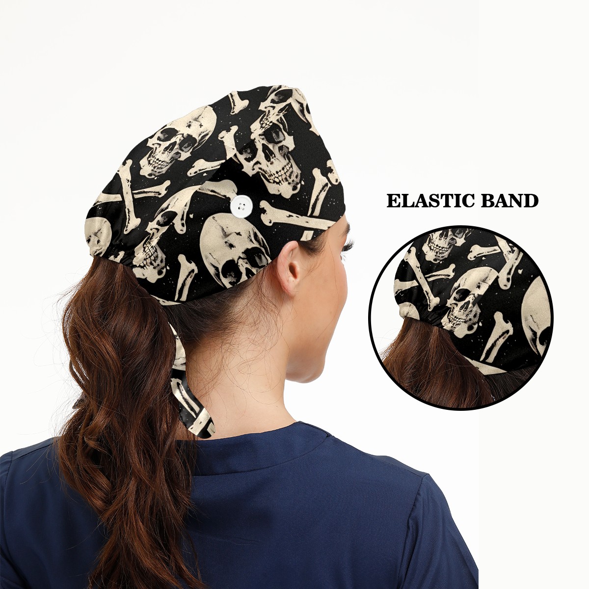 Working Caps with Button & Sweatband Satin Lined Cotton Adjustable Nurse Hats Elastic Band Scrub Cap Surgeon Hat Skull Head