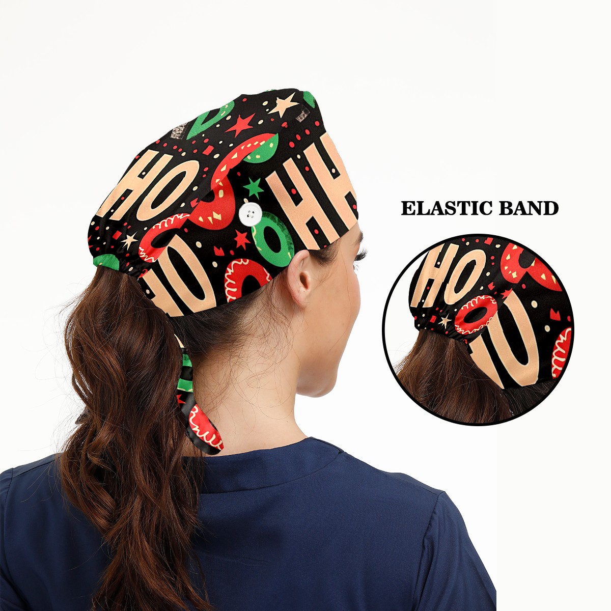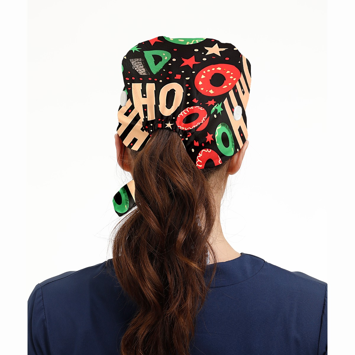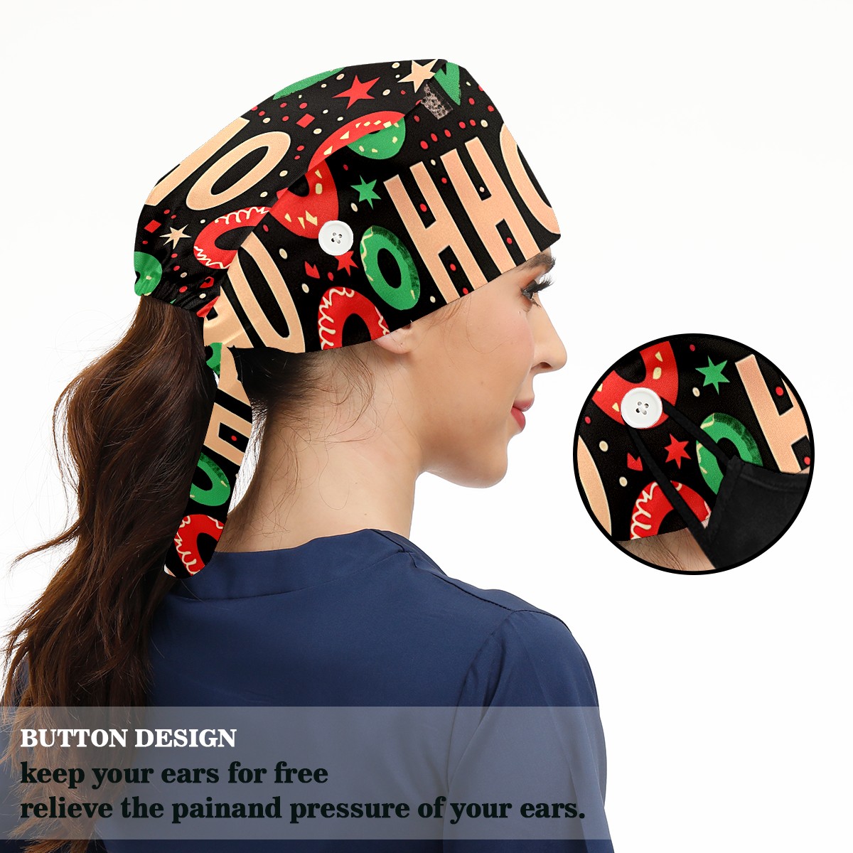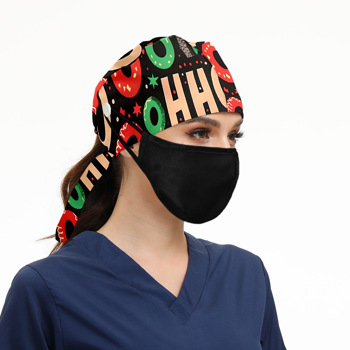 Working Caps with Button & Sweatband Satin Lined Cotton Adjustable Nurse Hats Elastic Band Scrub Cap Surgeon Hat Letter