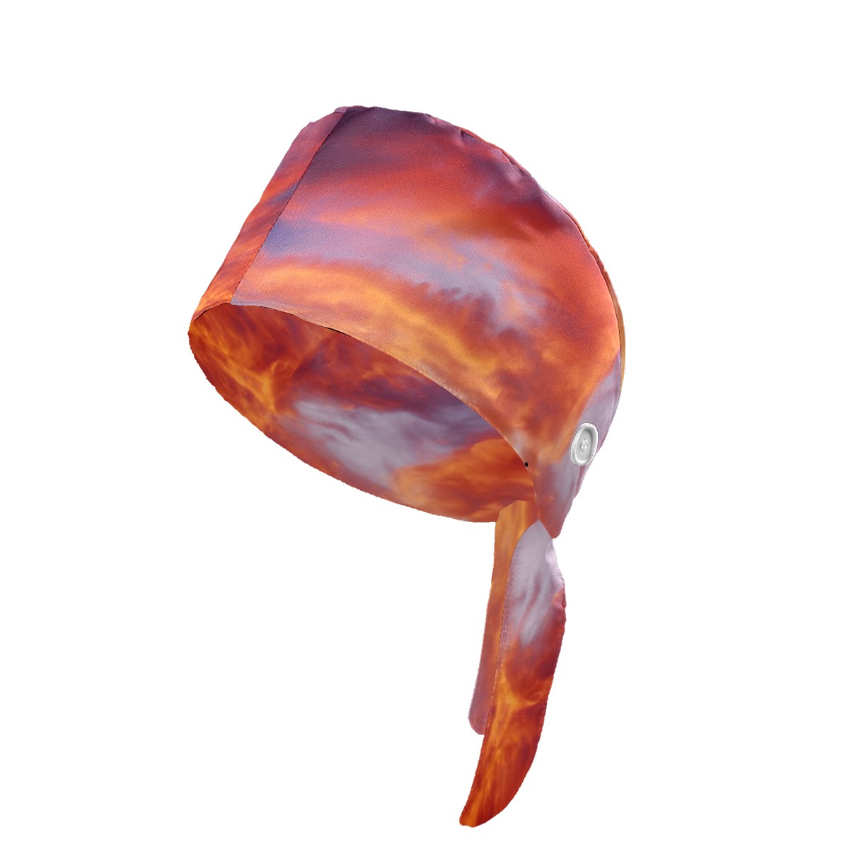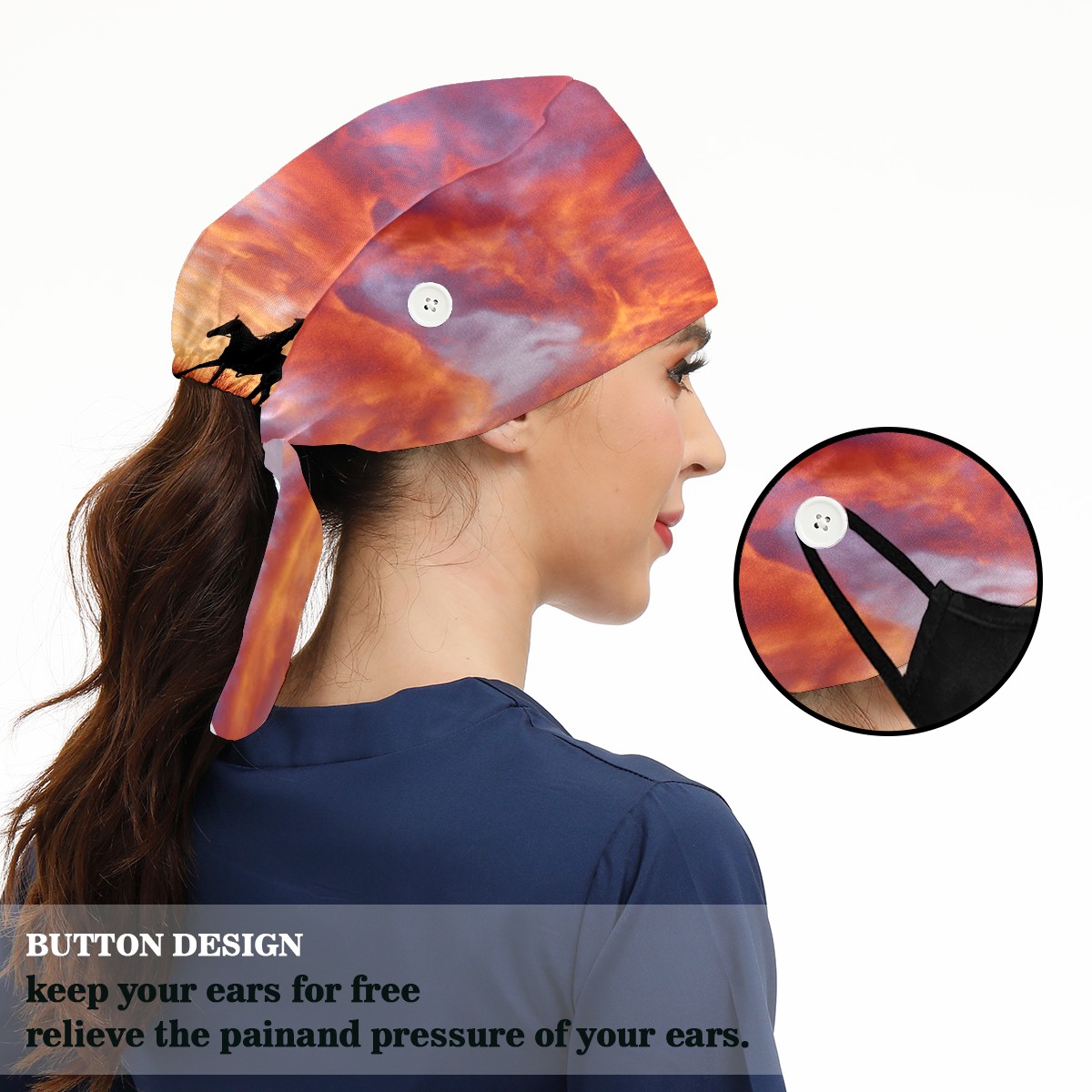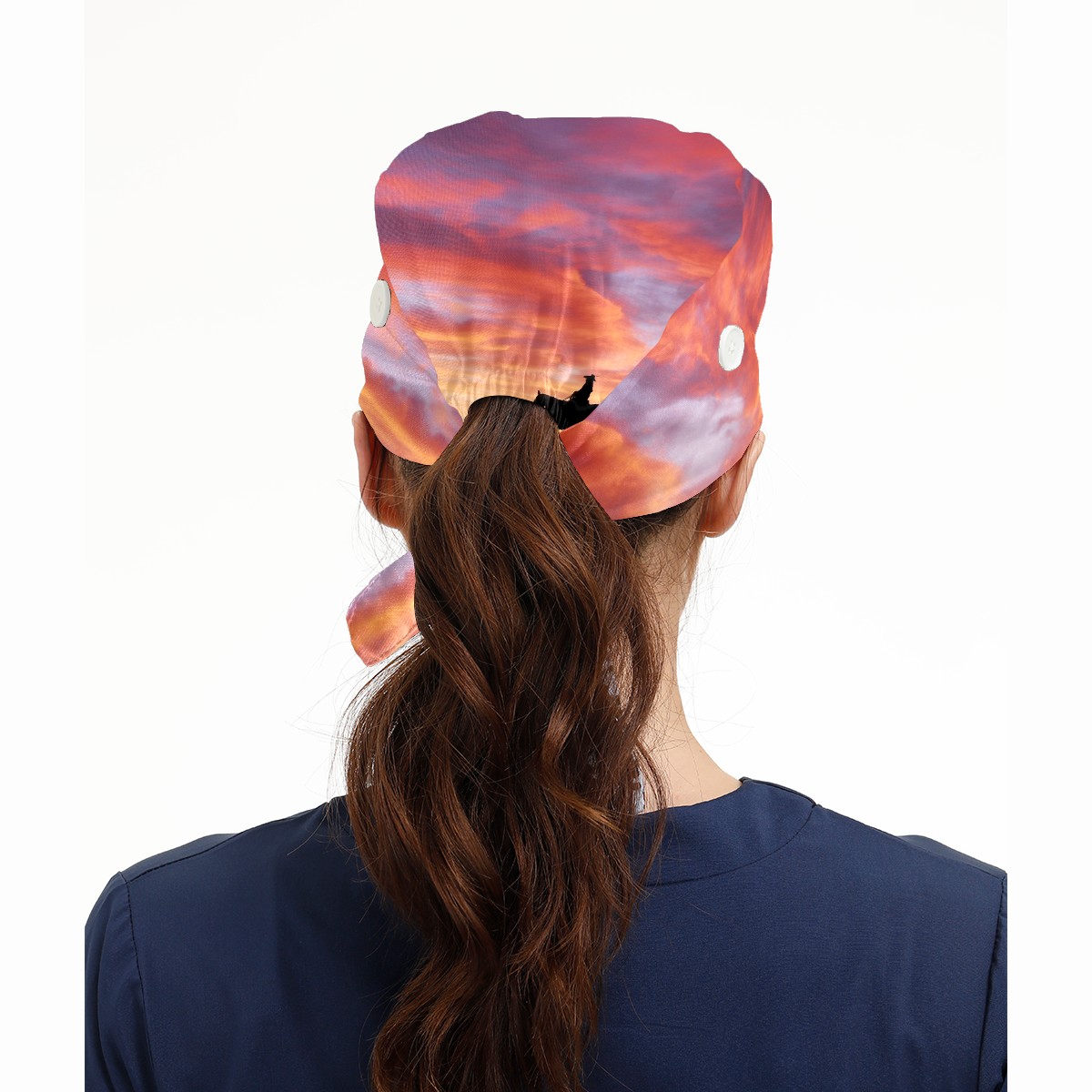 Working Caps with Button & Sweatband Satin Lined Cotton Adjustable Nurse Hats Elastic Band Scrub Cap Surgeon Hat Sunset