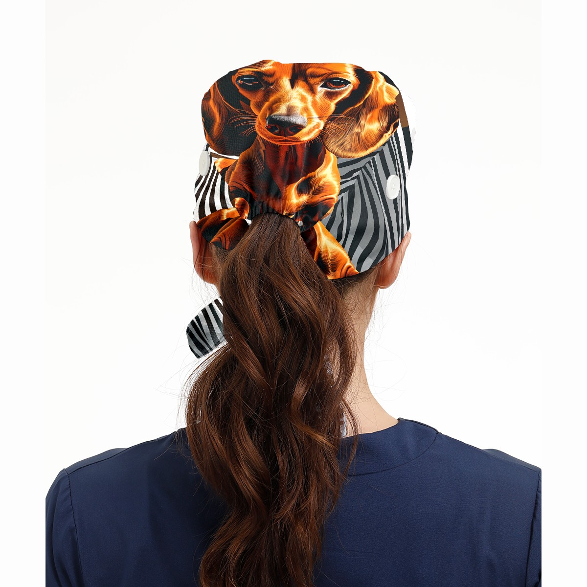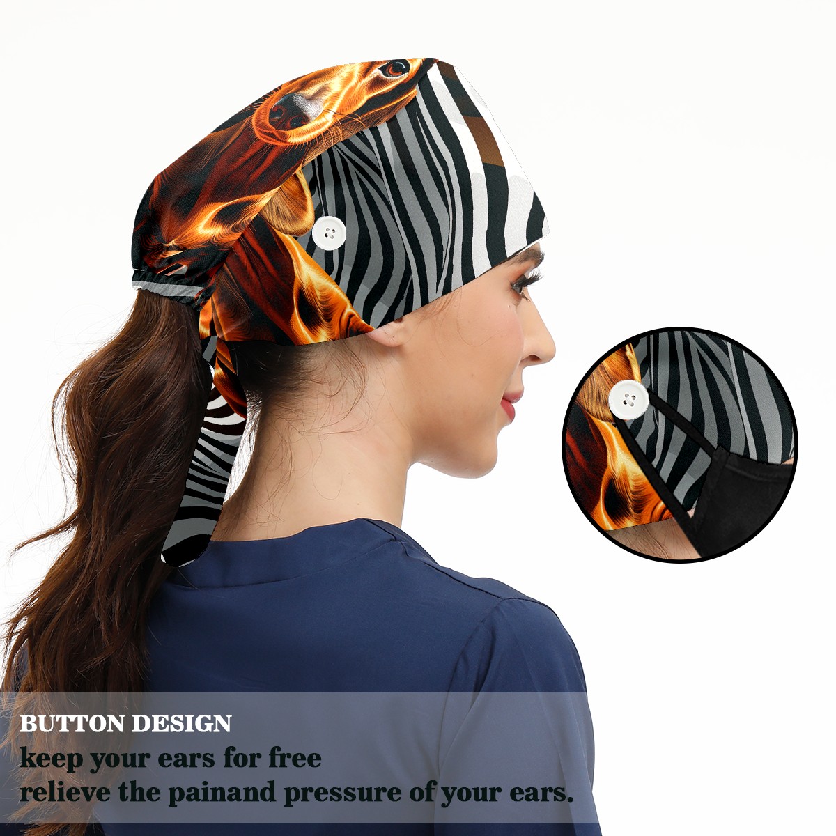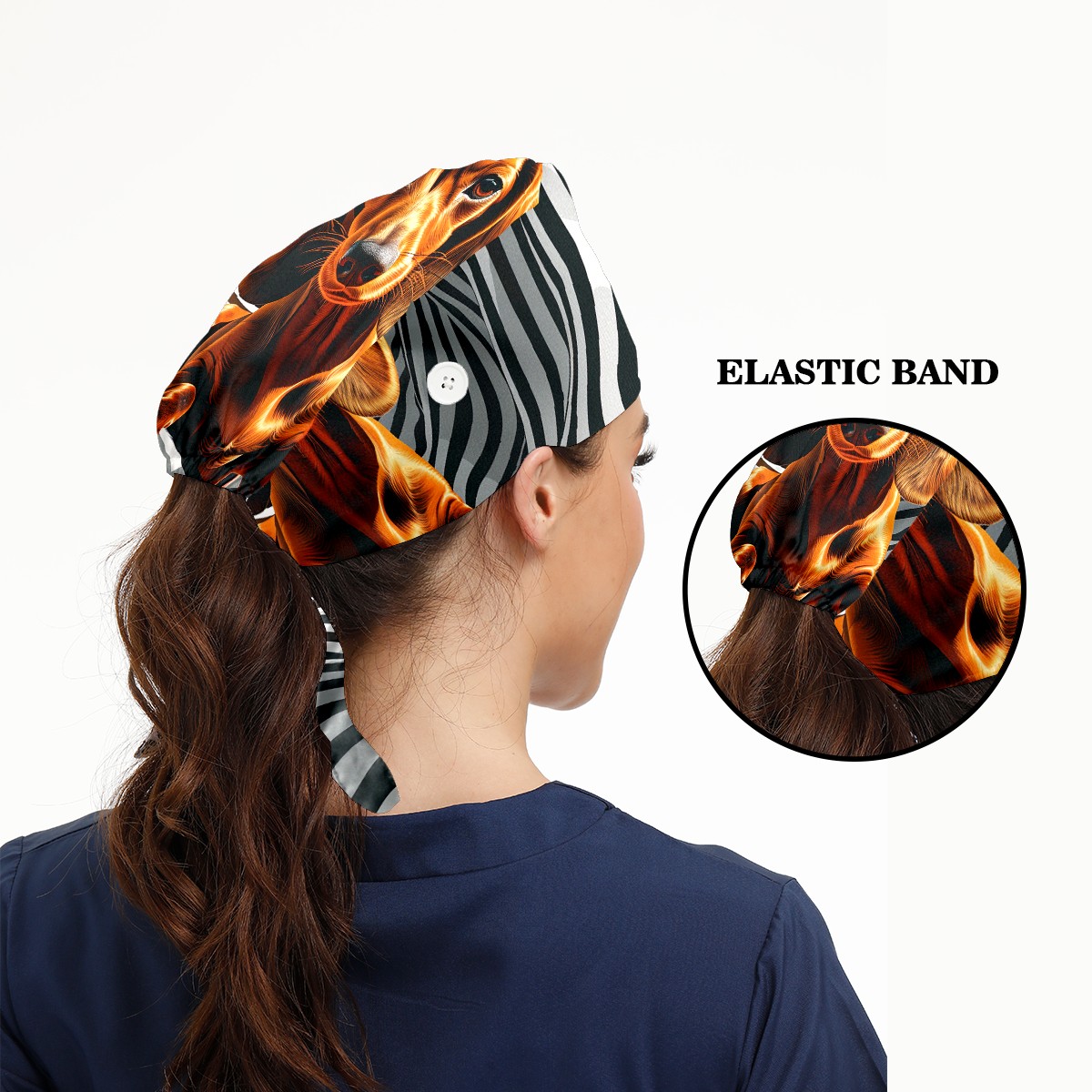 Working Caps with Button & Sweatband Satin Lined Cotton Adjustable Nurse Hats Elastic Band Scrub Cap Surgeon Hat Dog