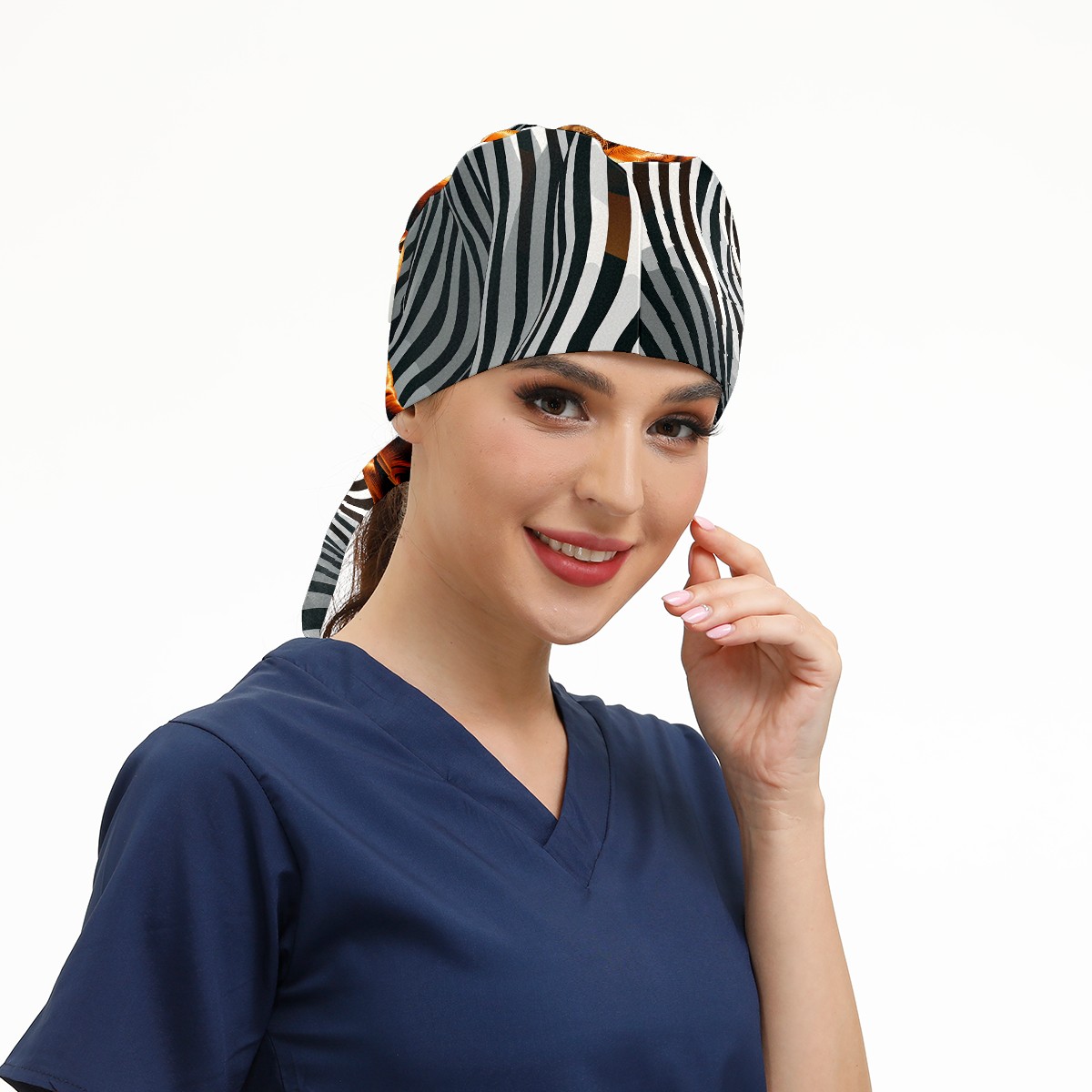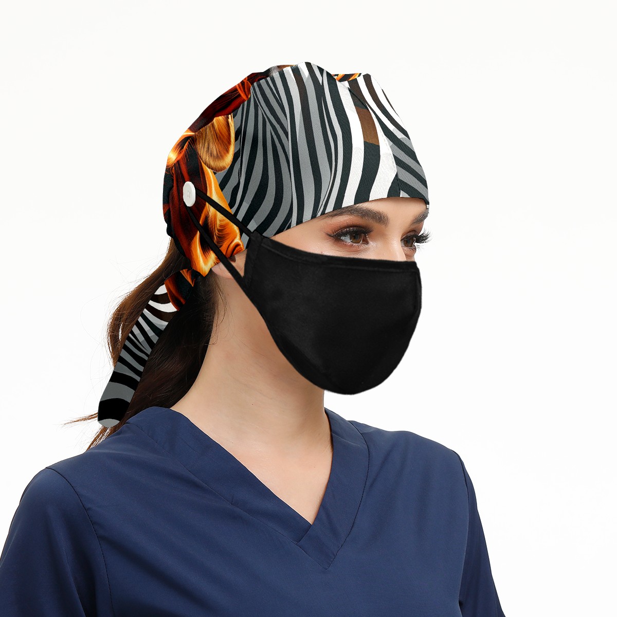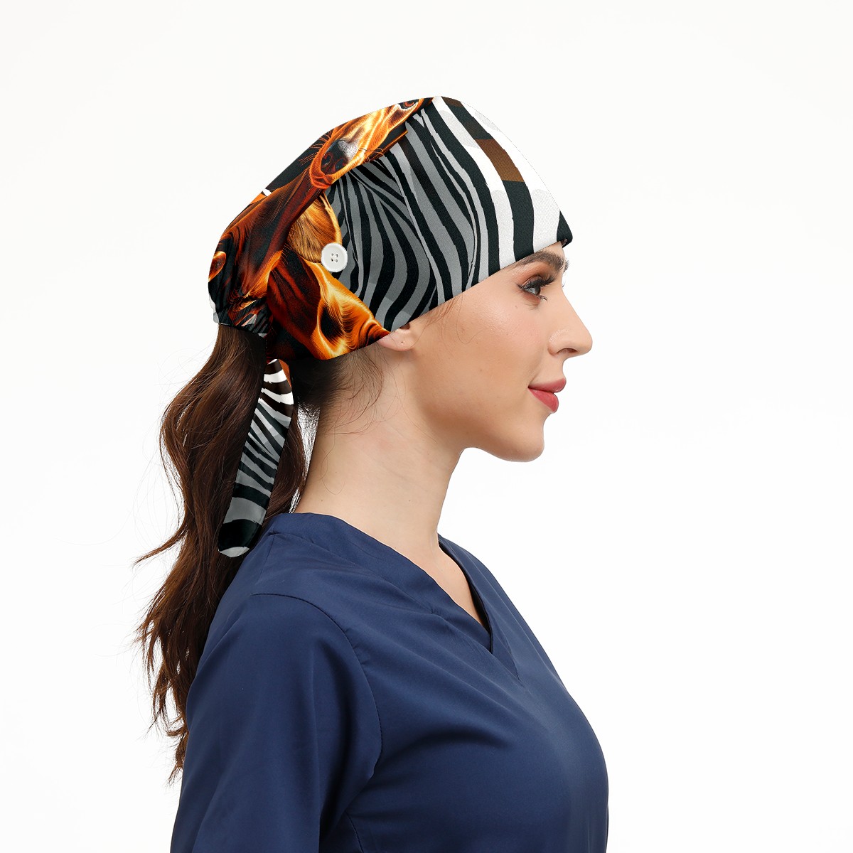 Working Caps with Button & Sweatband Satin Lined Cotton Adjustable Nurse Hats Elastic Band Scrub Cap Surgeon Hat Dog