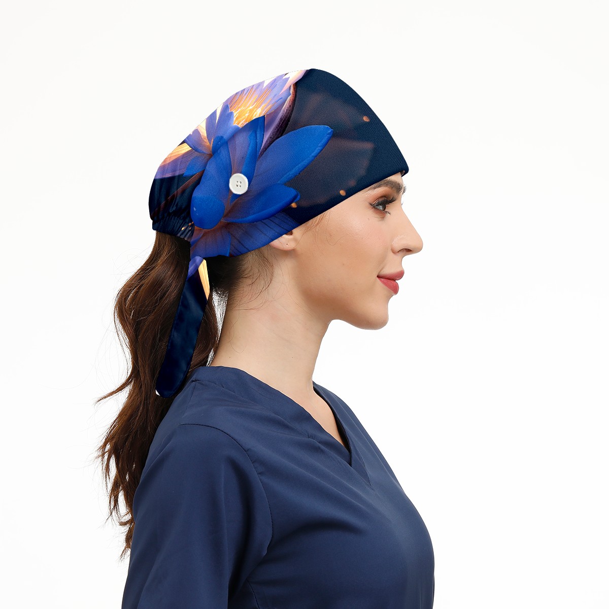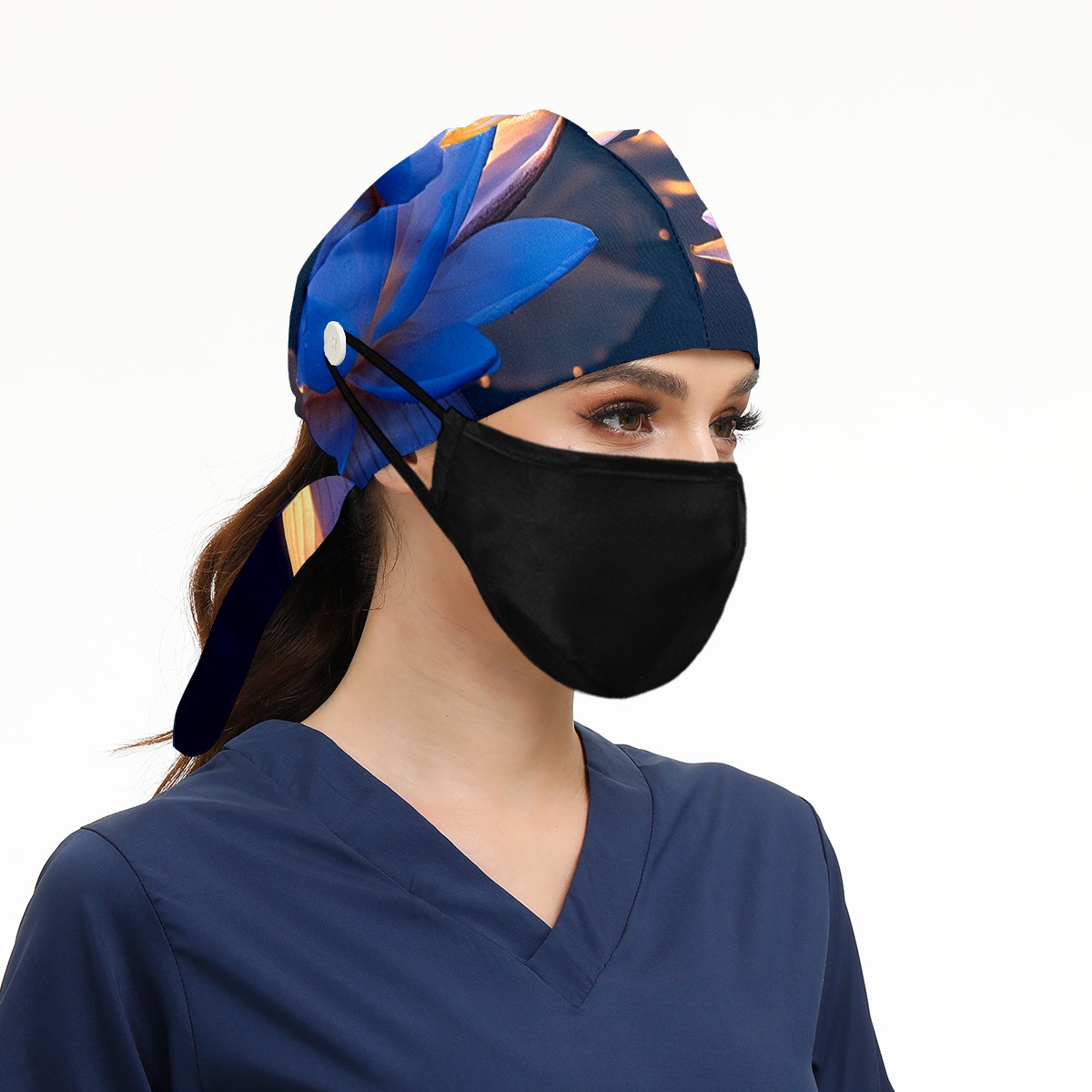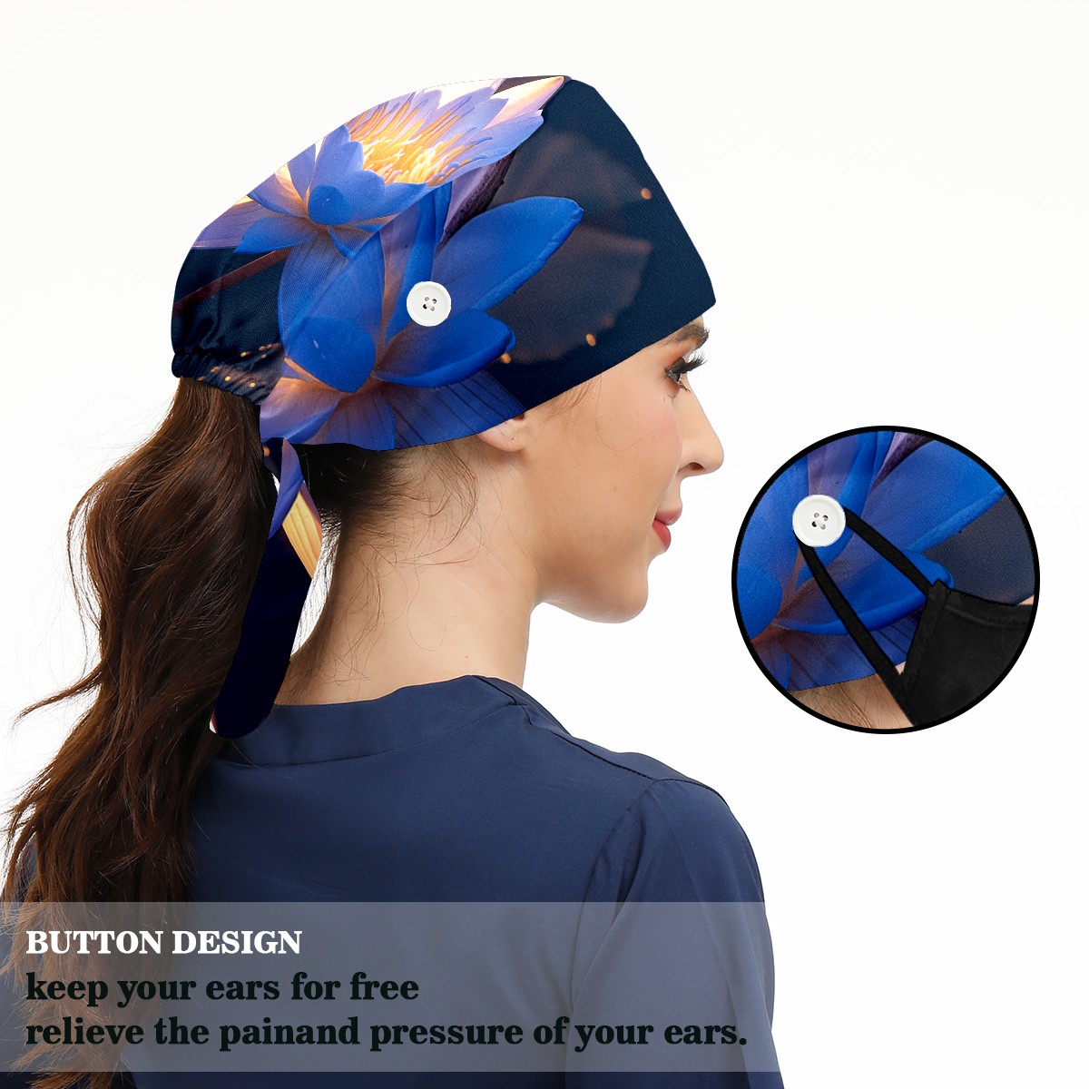 Working Caps with Button & Sweatband Satin Lined Cotton Adjustable Nurse Hats Elastic Band Scrub Cap Surgeon Hat Lily