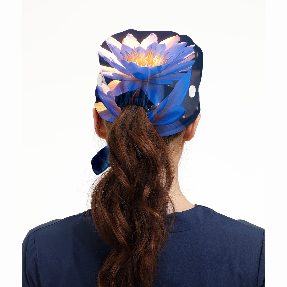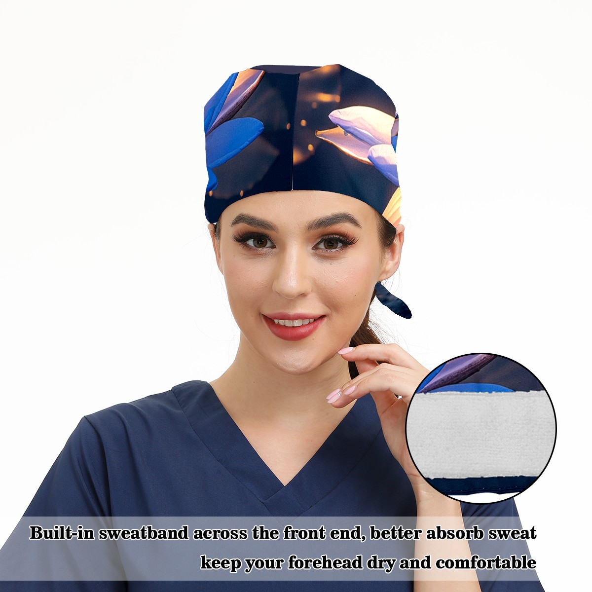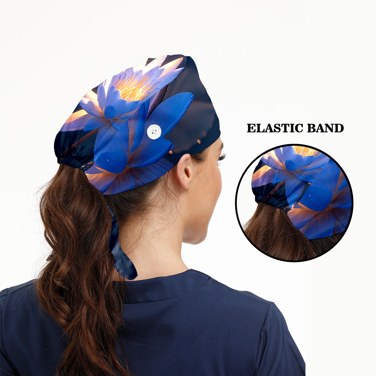 Working Caps with Button & Sweatband Satin Lined Cotton Adjustable Nurse Hats Elastic Band Scrub Cap Surgeon Hat Lily