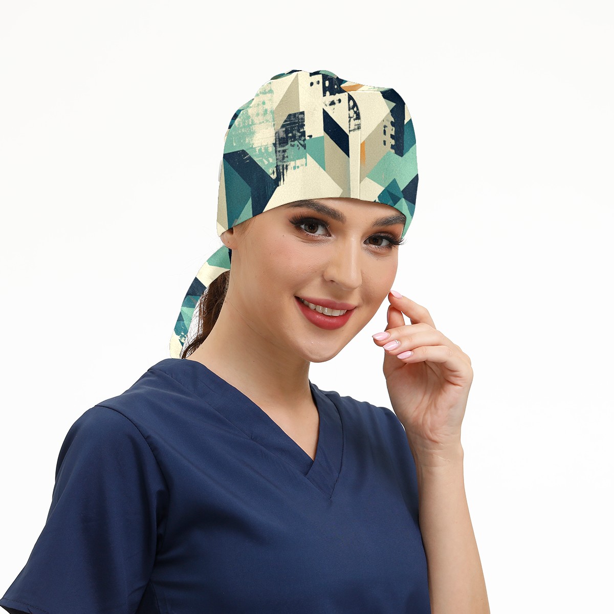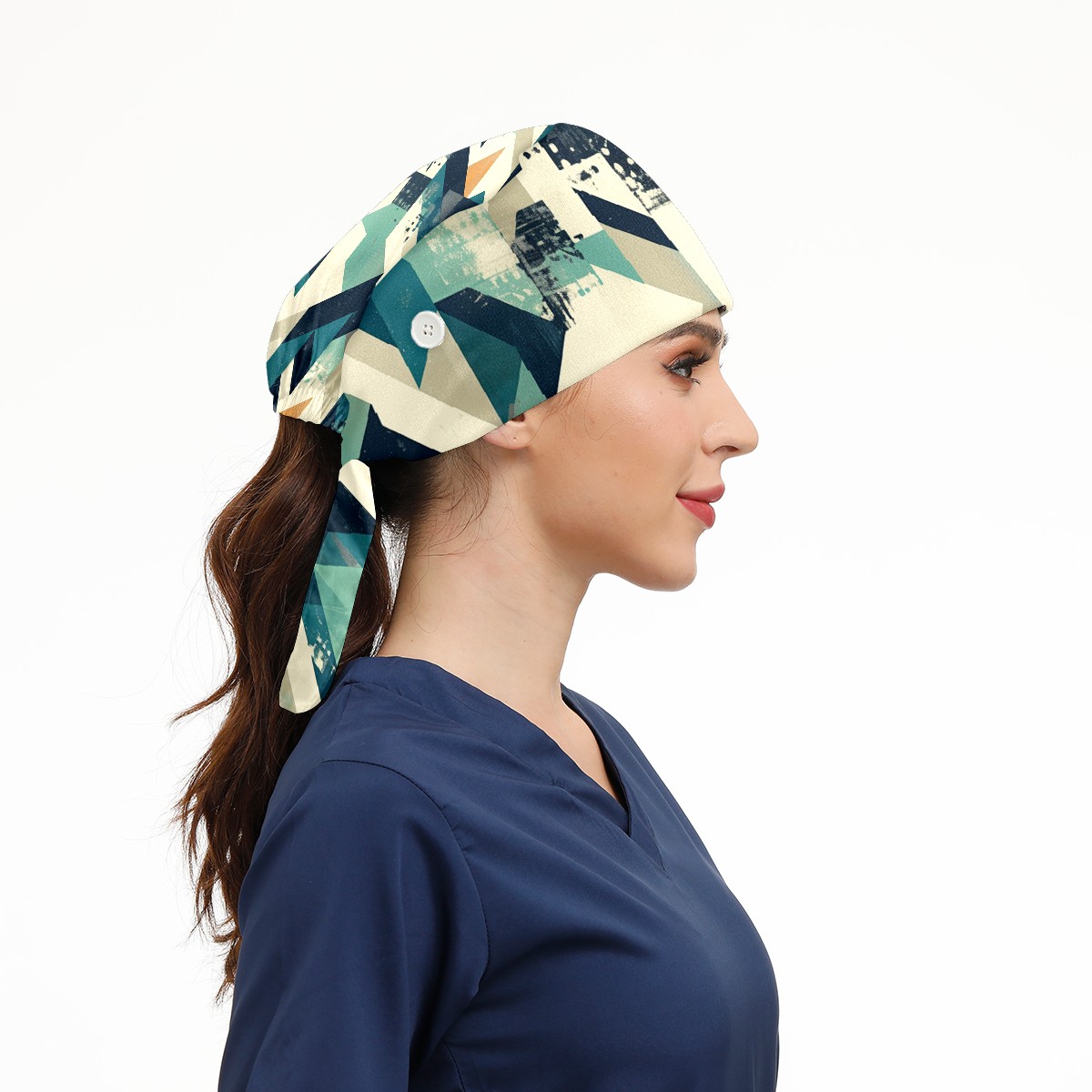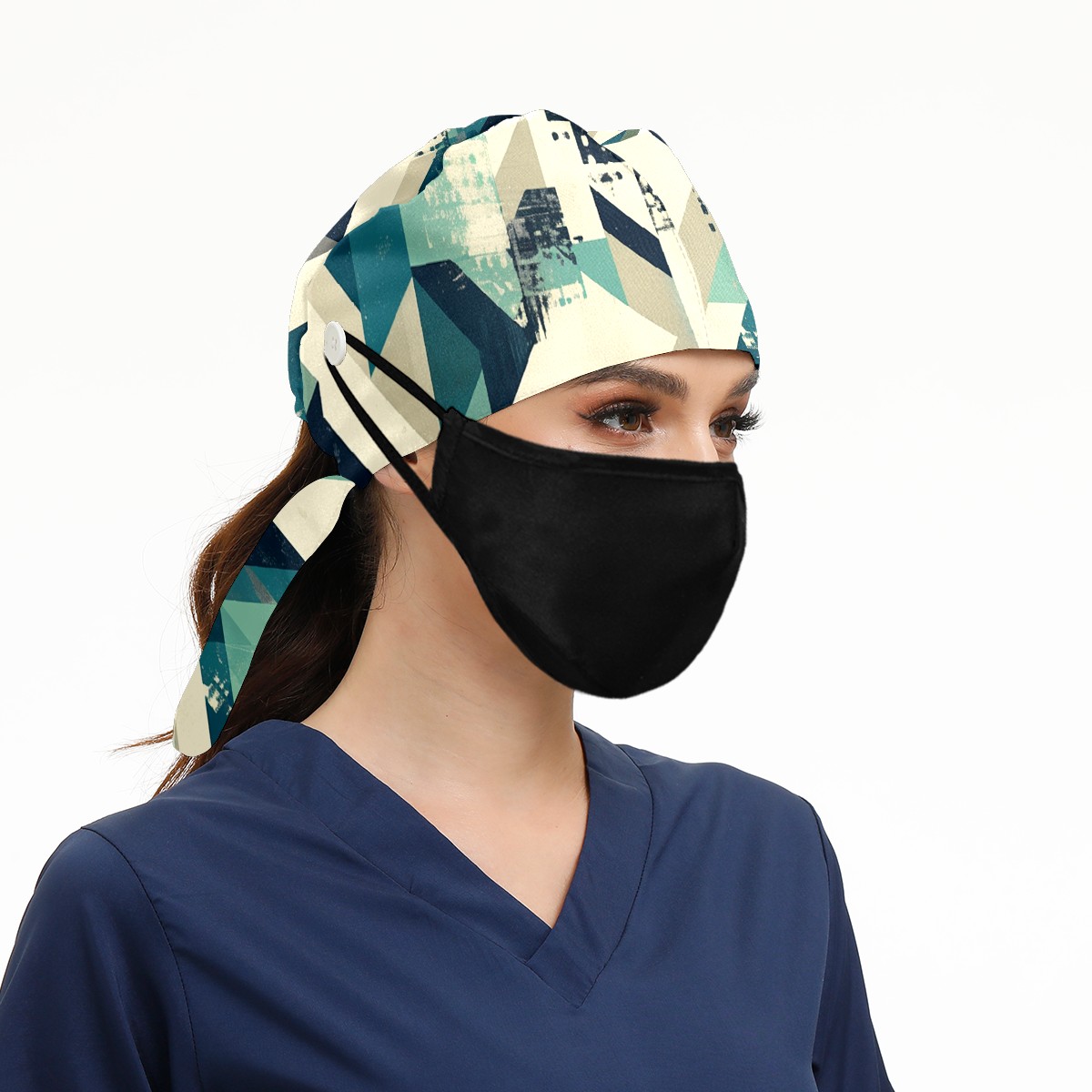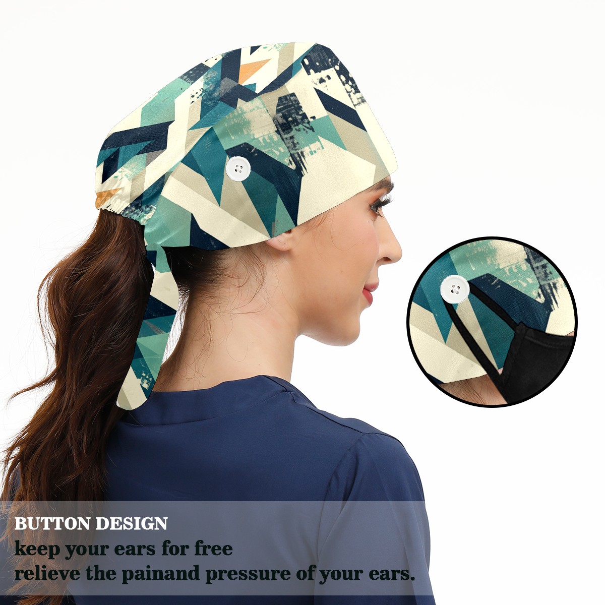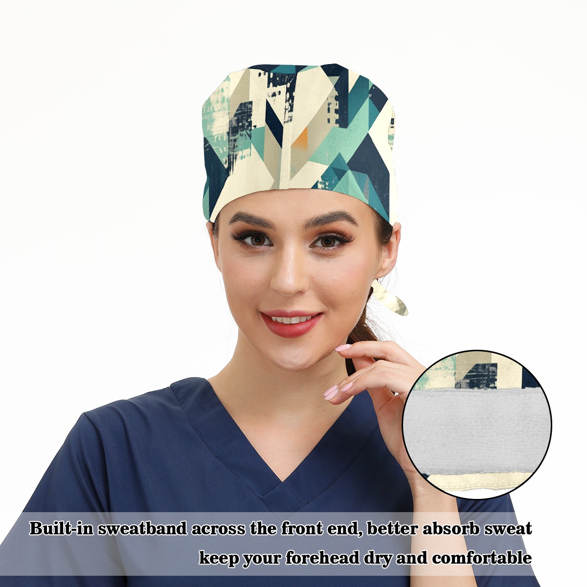 Working Caps with Button & Sweatband Satin Lined Cotton Adjustable Nurse Hats Elastic Band Scrub Cap Surgeon Hat Generate 4