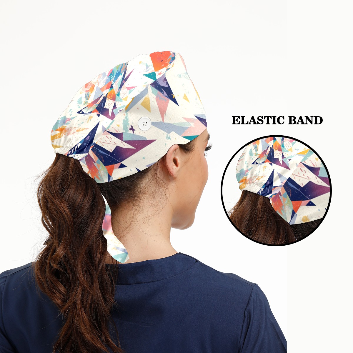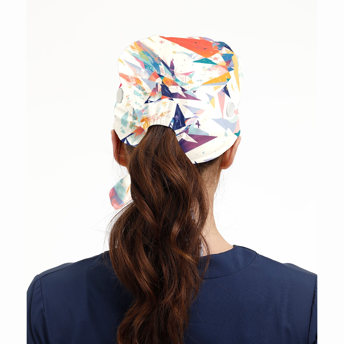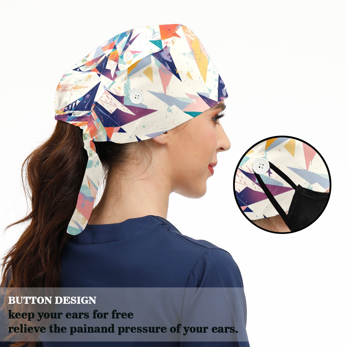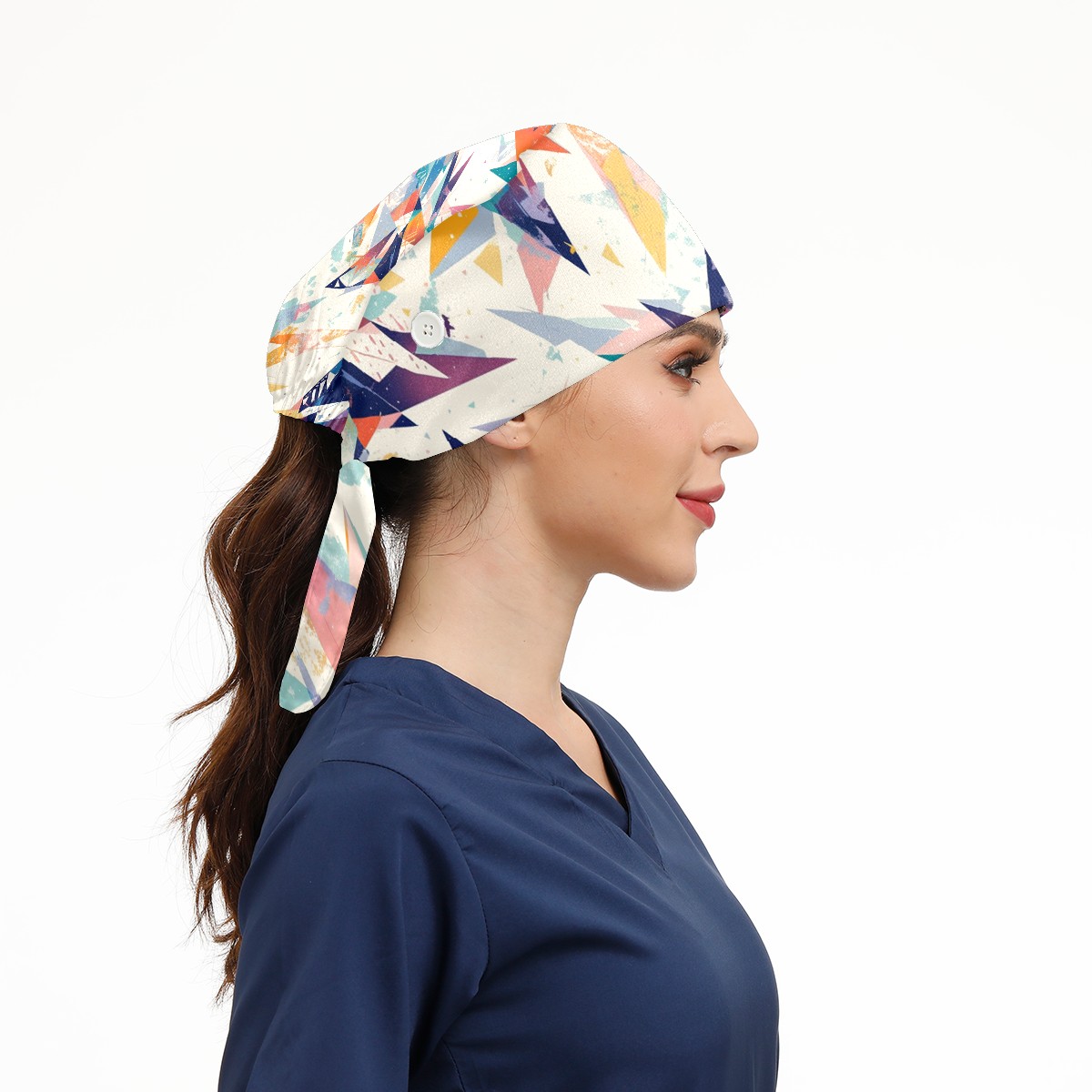 Working Caps with Button & Sweatband Satin Lined Cotton Adjustable Nurse Hats Elastic Band Scrub Cap Surgeon Hat Generate 3