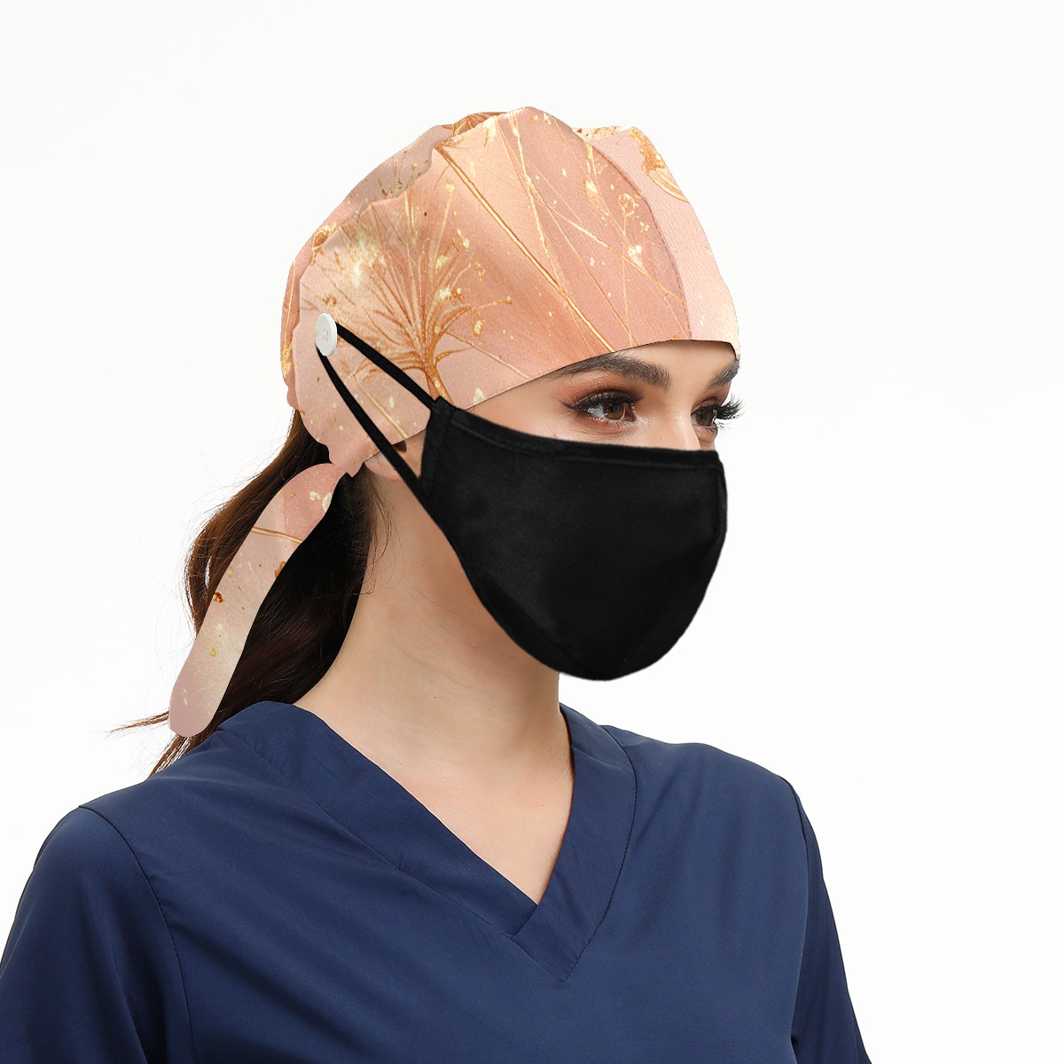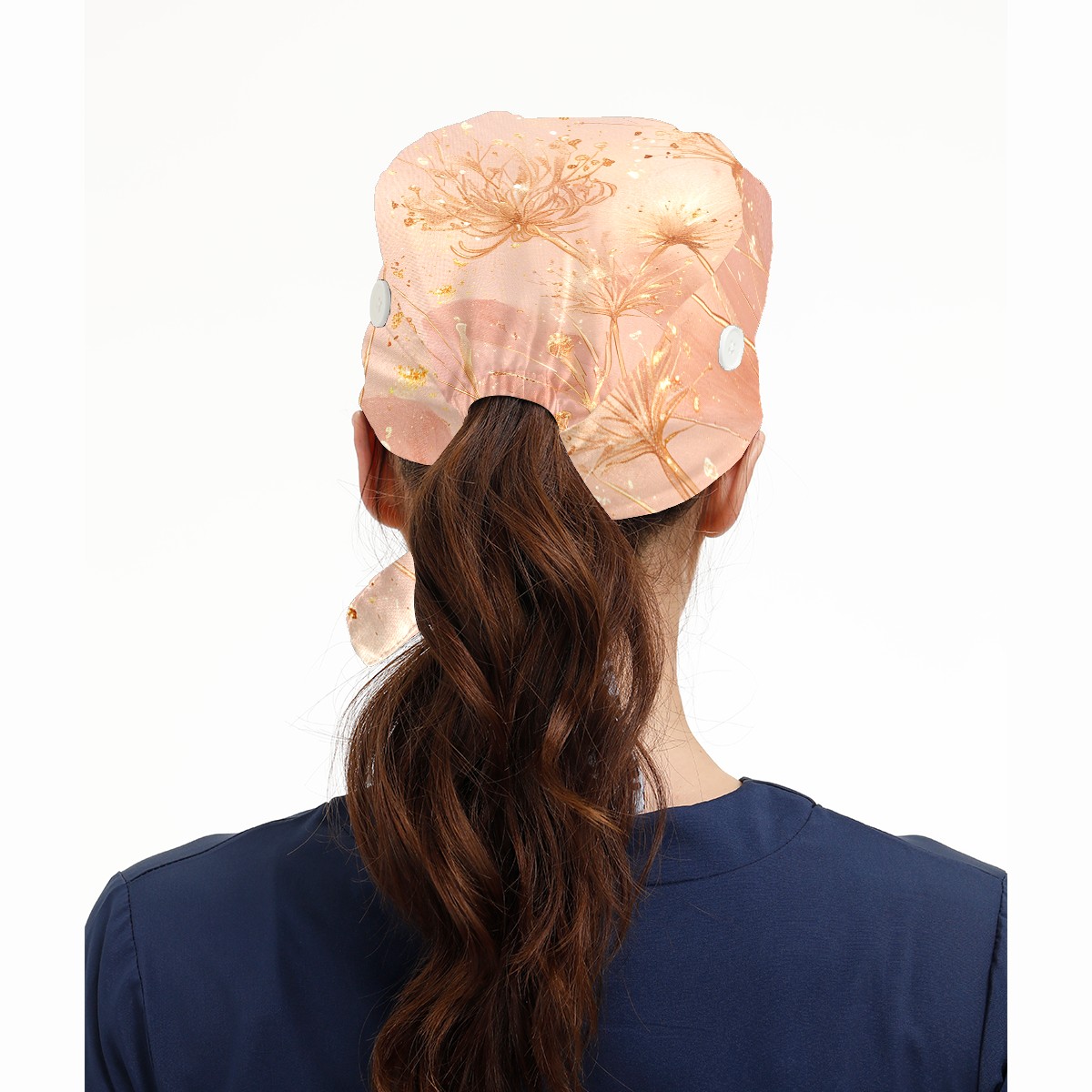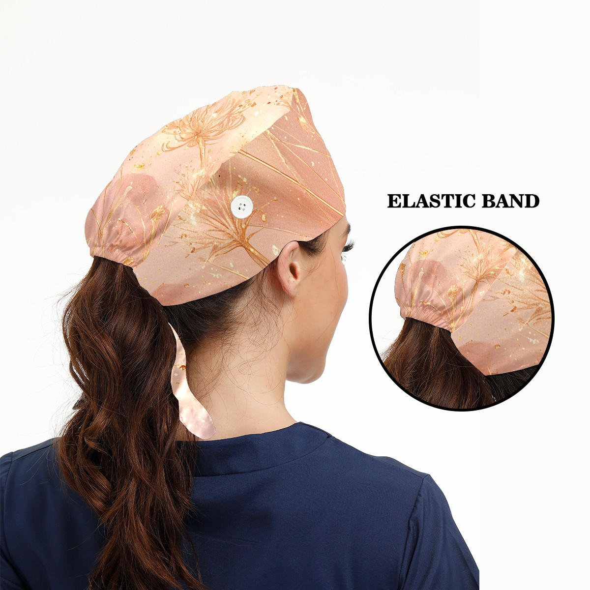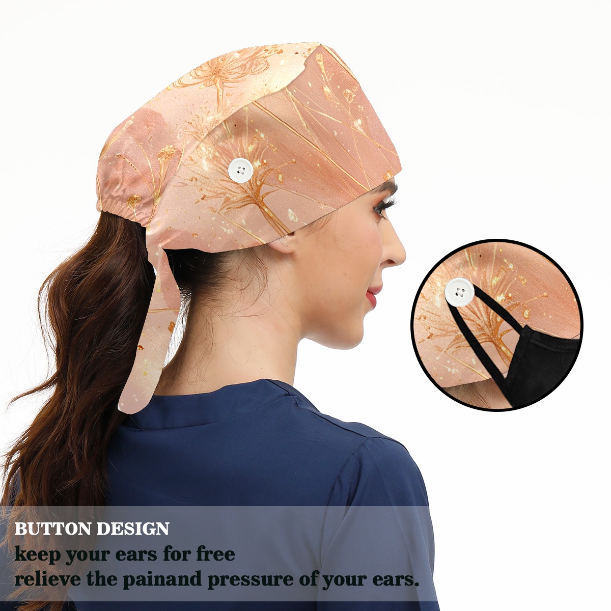 Working Caps with Button & Sweatband Satin Lined Cotton Adjustable Nurse Hats Elastic Band Scrub Cap Surgeon Hat Flowers