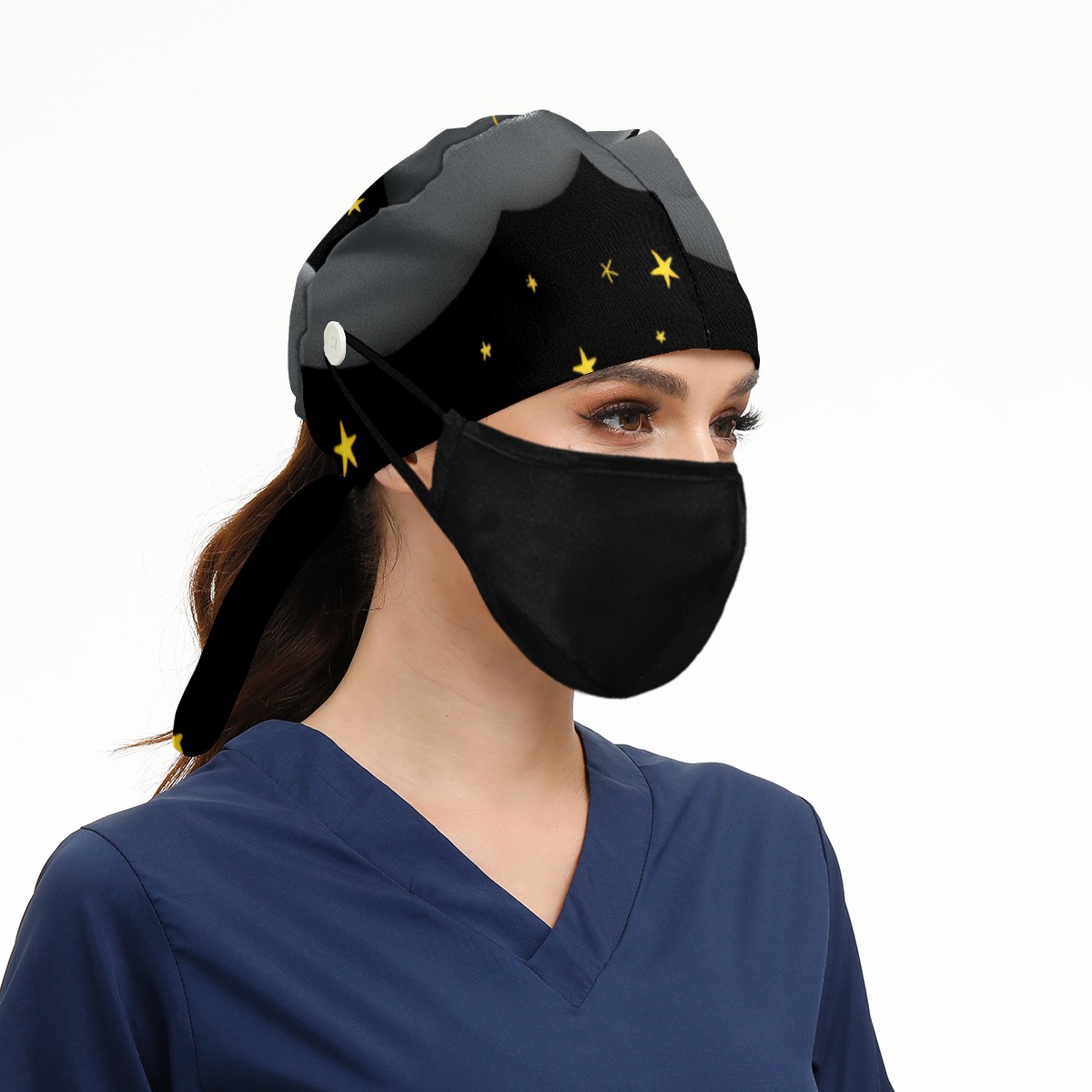 Working Caps with Button & Sweatband Satin Lined Cotton Adjustable Nurse Hats Elastic Band Scrub Cap Surgeon Hat Easter 241