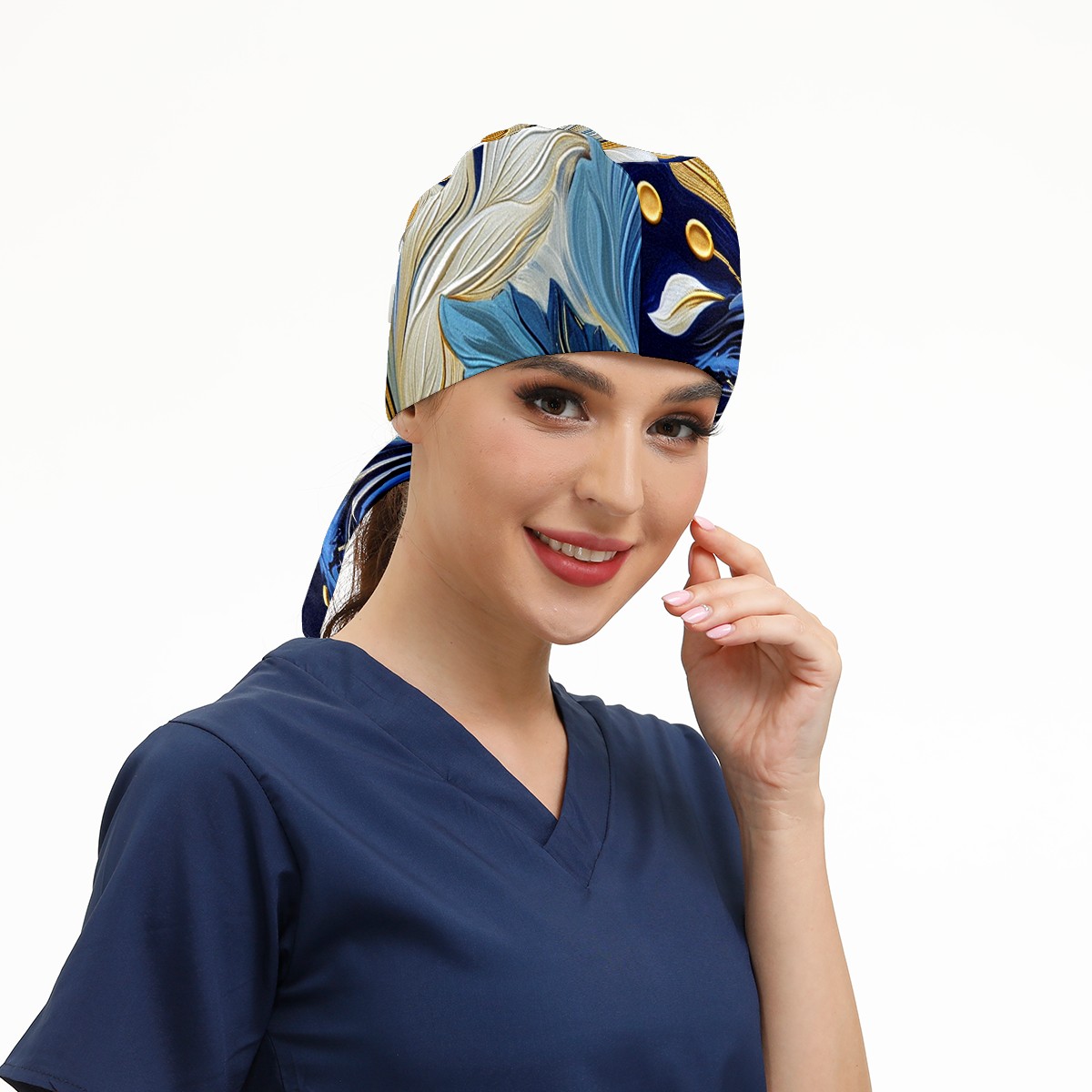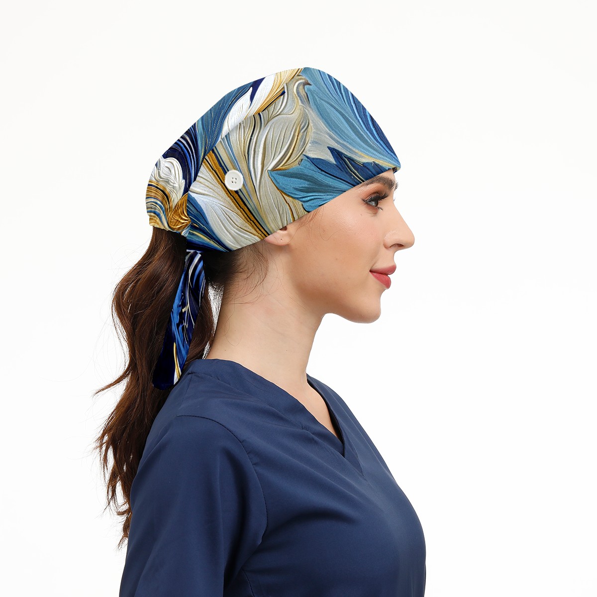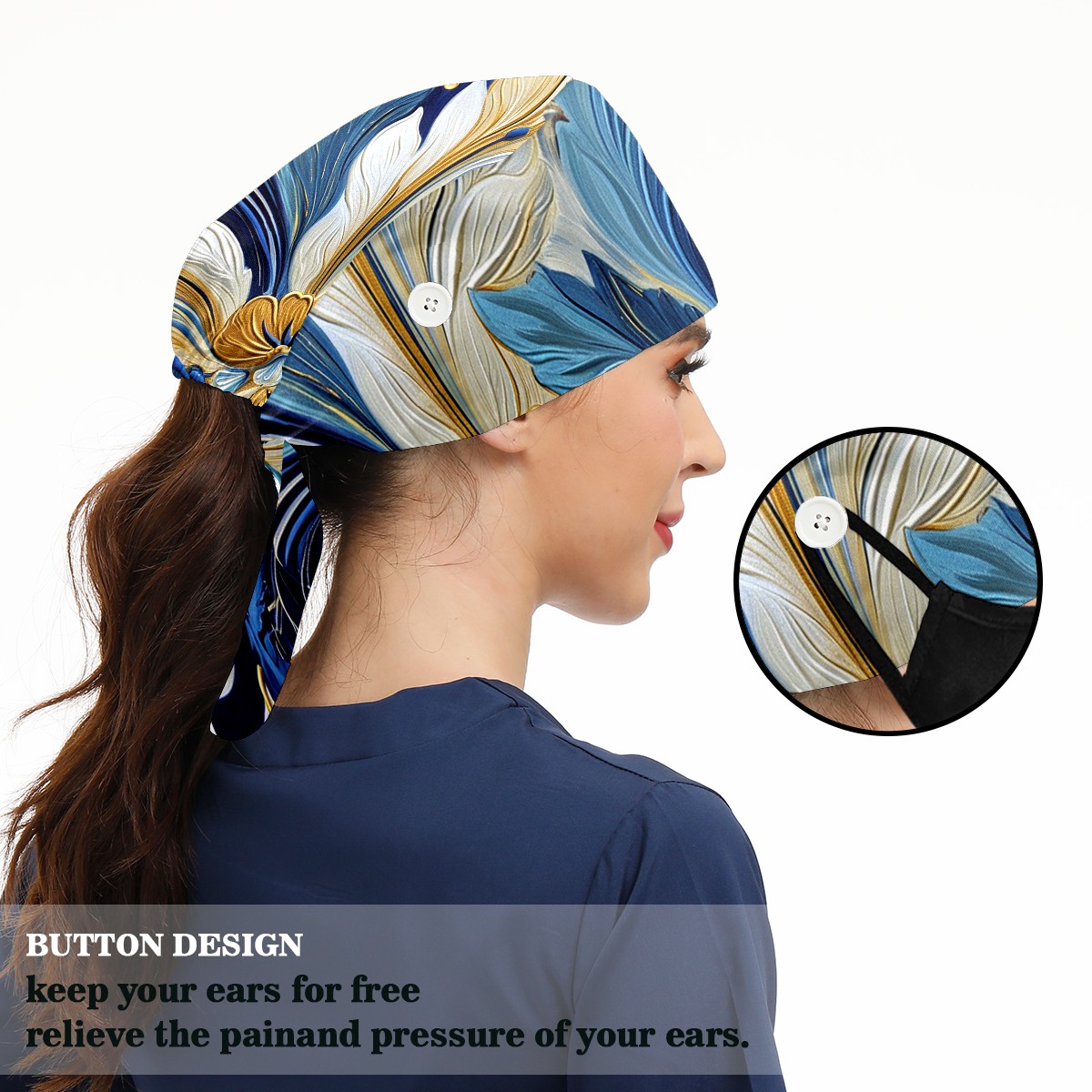 Working Caps with Button & Sweatband Satin Lined Cotton Adjustable Nurse Hats Elastic Band Scrub Cap Surgeon Hat Easter