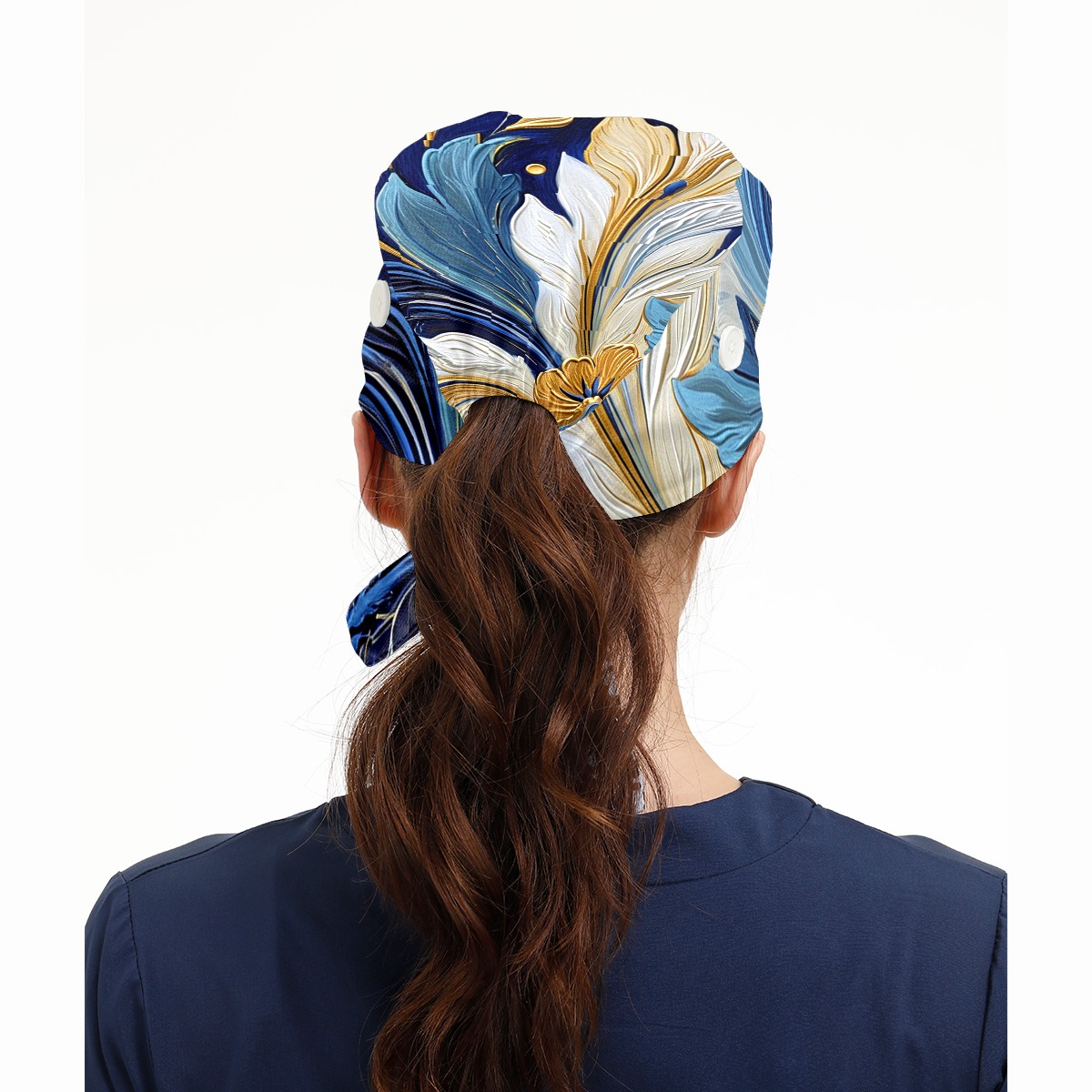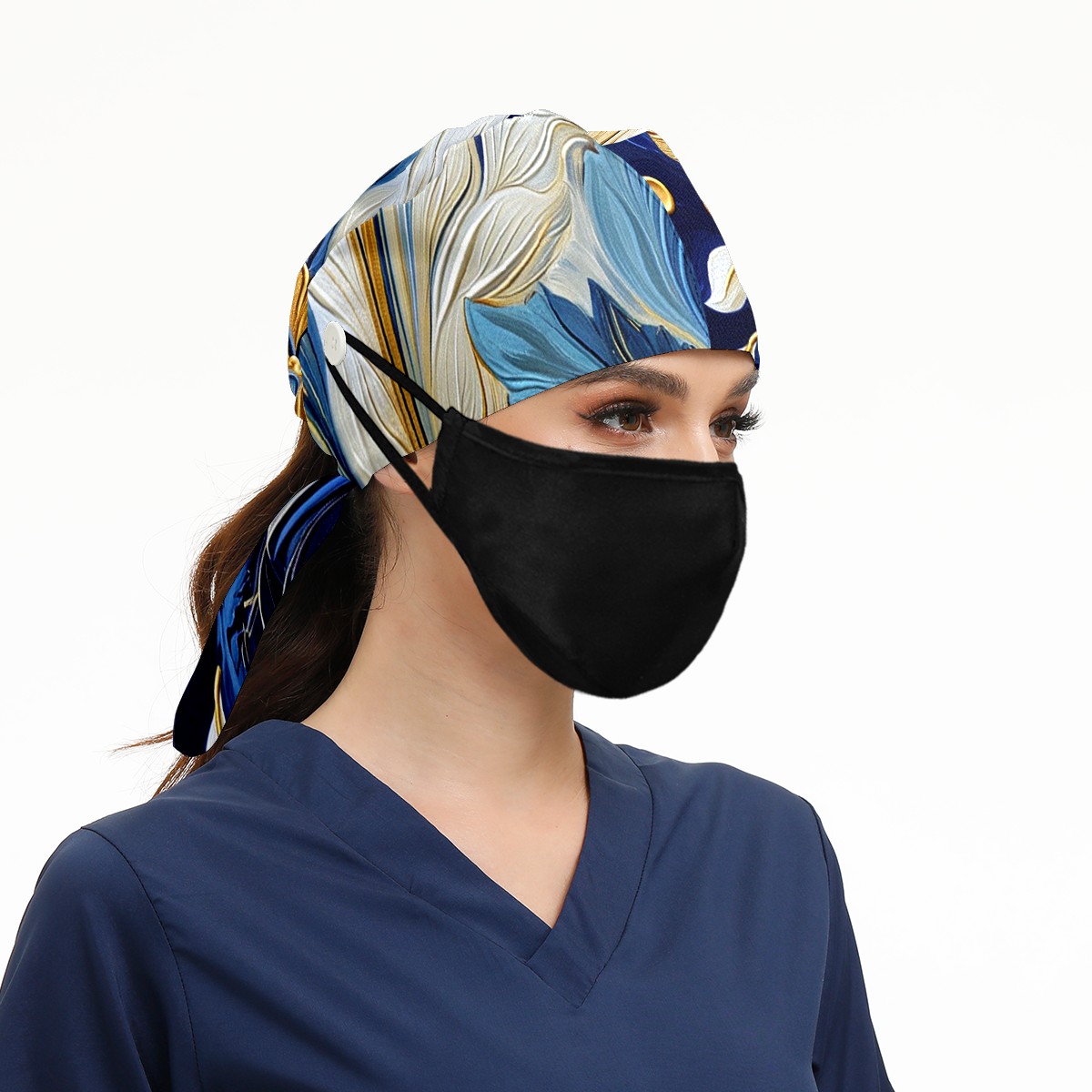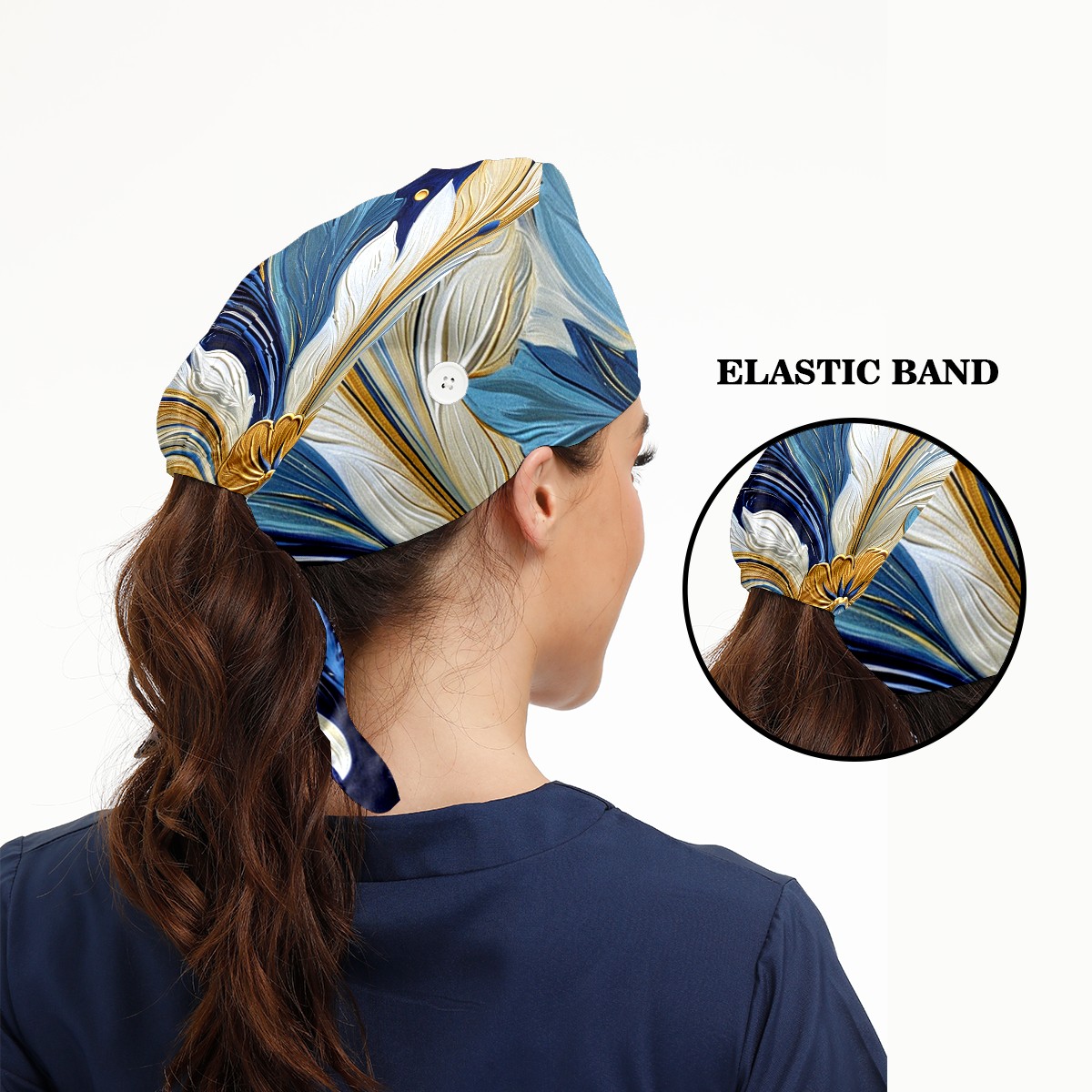 Working Caps with Button & Sweatband Satin Lined Cotton Adjustable Nurse Hats Elastic Band Scrub Cap Surgeon Hat Easter