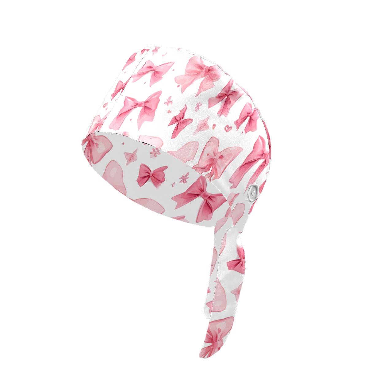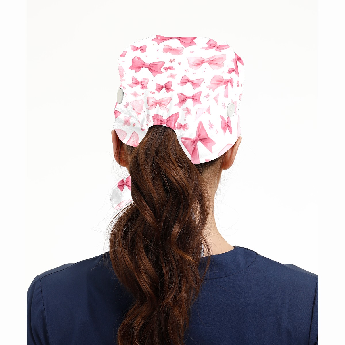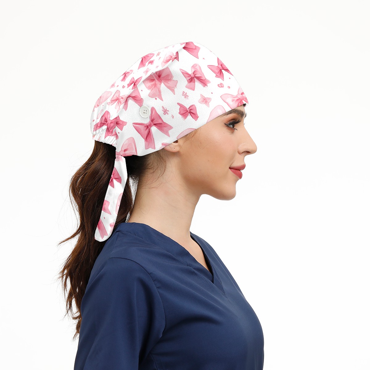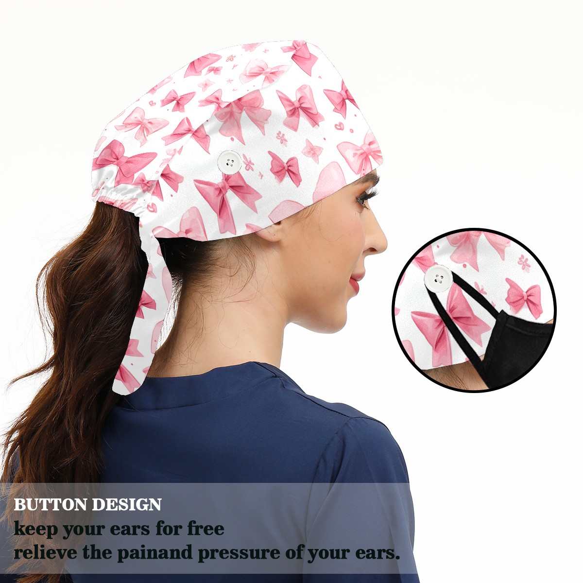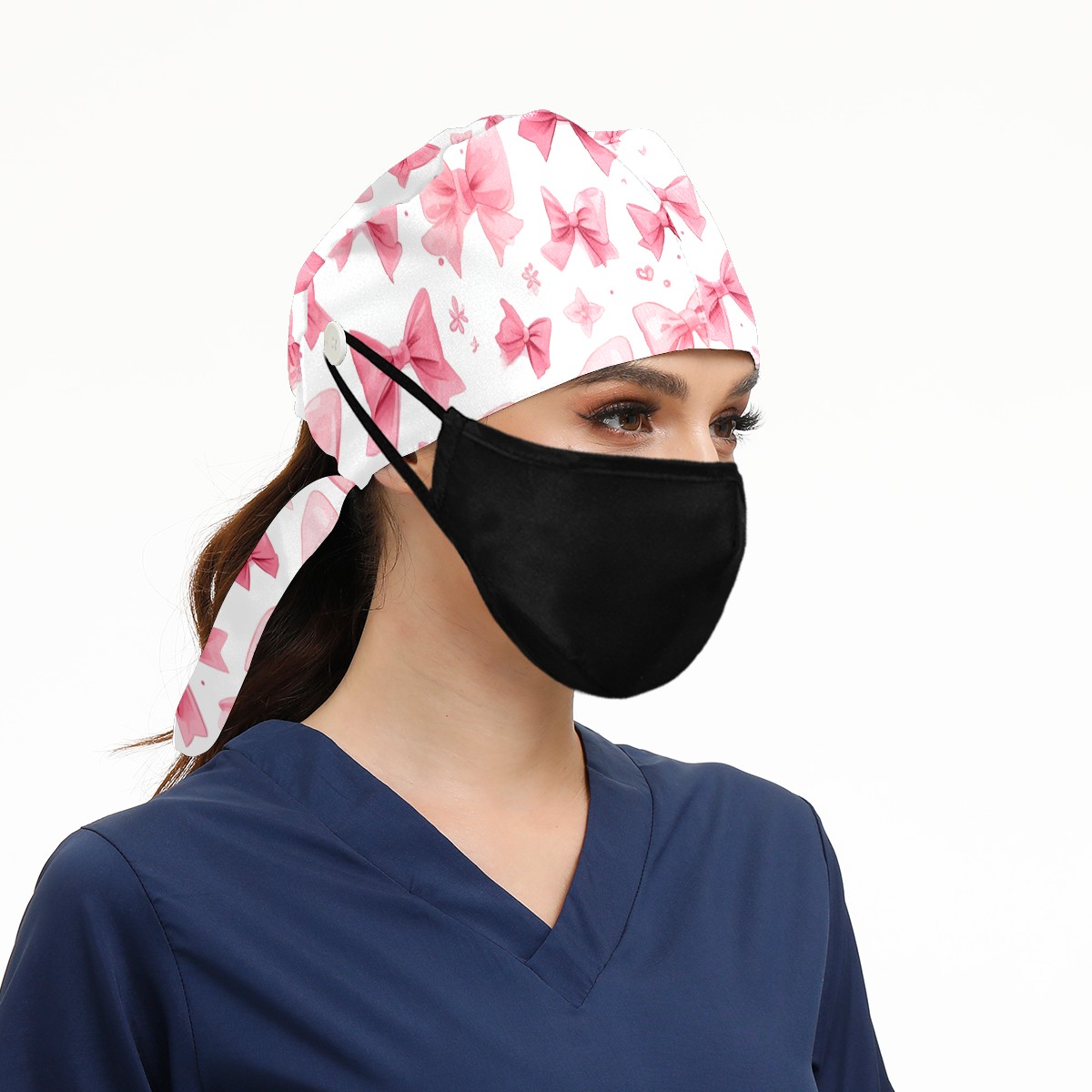 Working Caps with Button & Sweatband Satin Lined Cotton Adjustable Nurse Hats Elastic Band Scrub Cap Surgeon Hat Bows 3