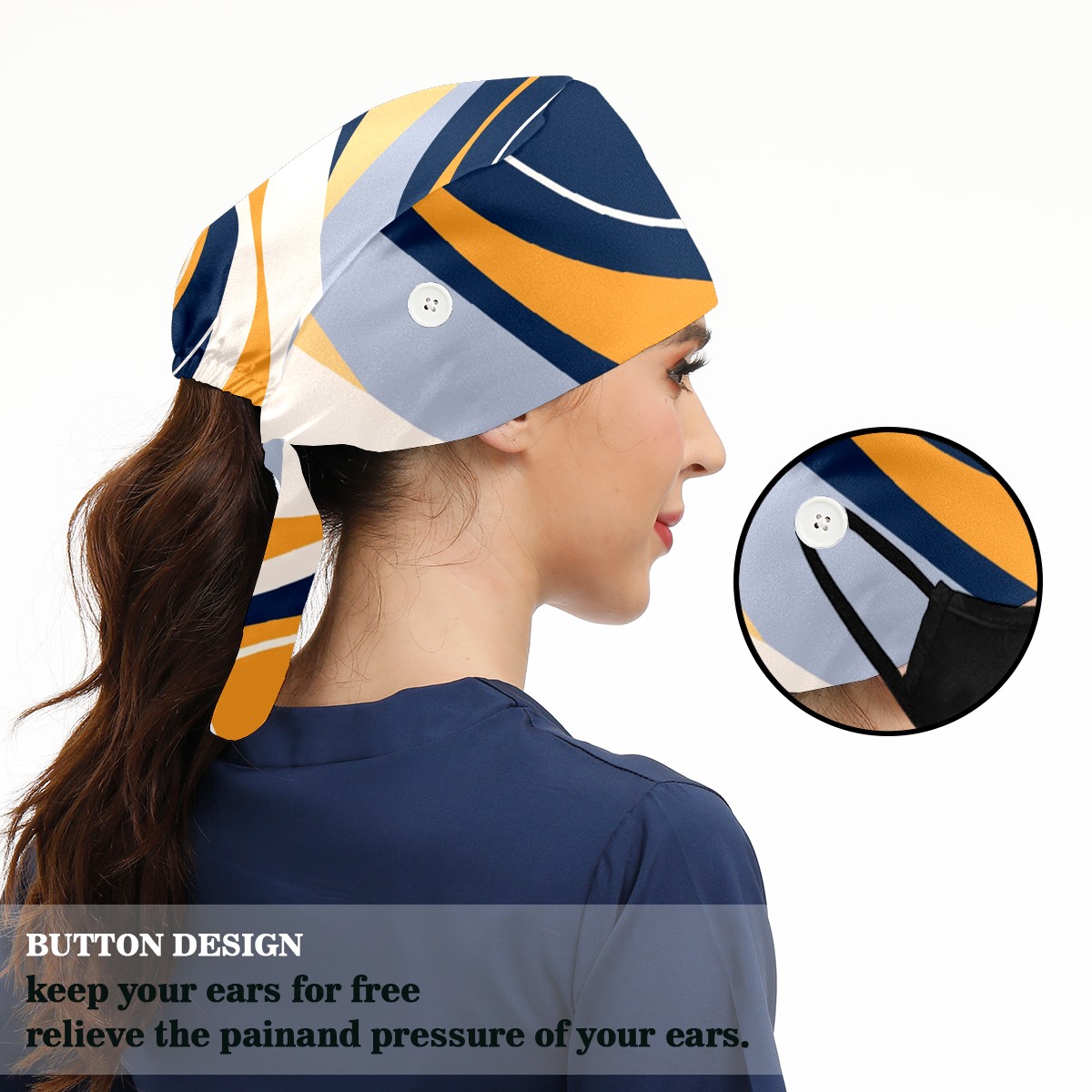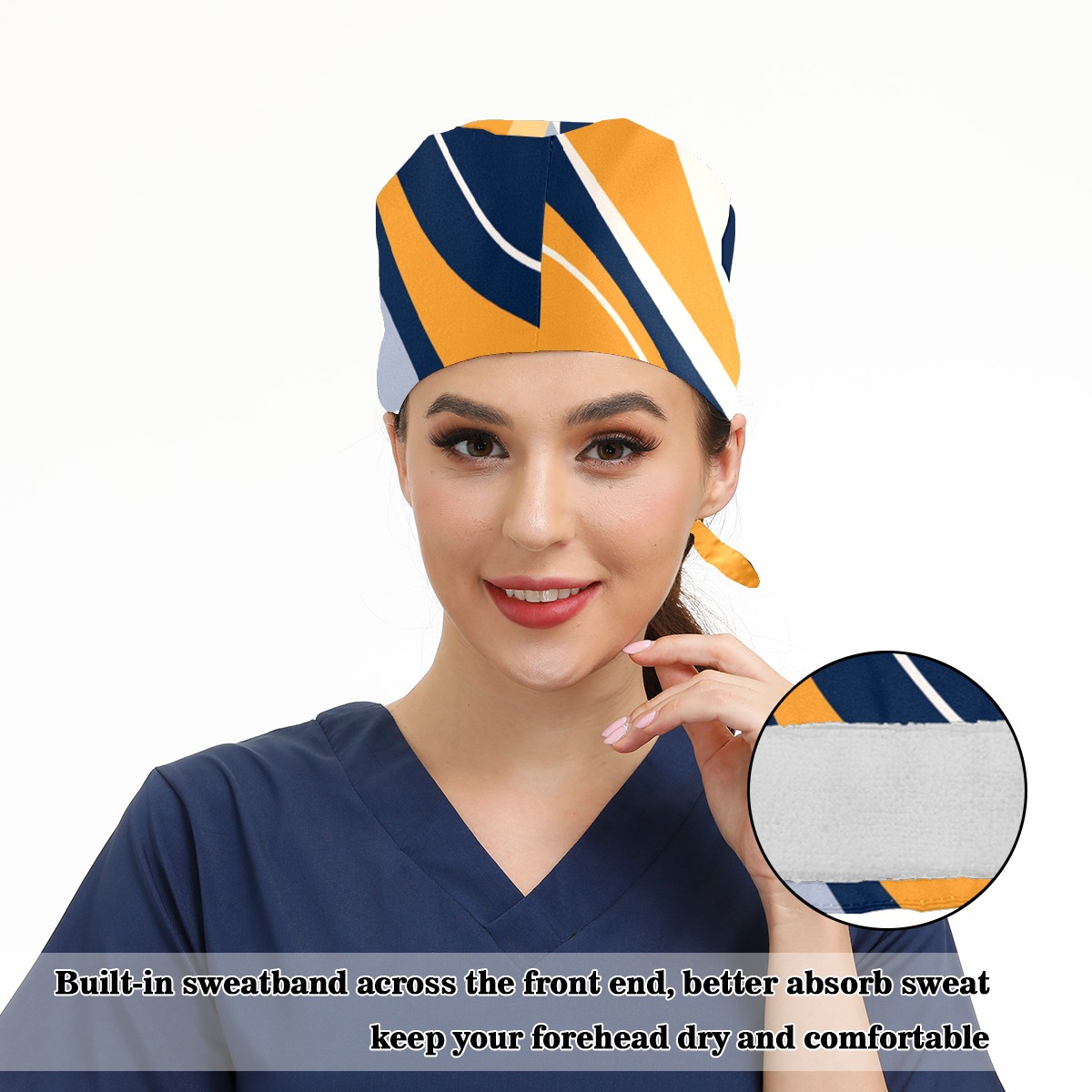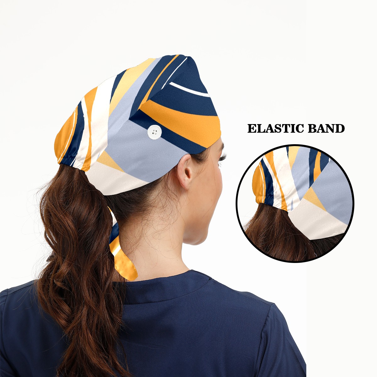 Working Caps with Button & Sweatband Satin Lined Cotton Adjustable Nurse Hats Elastic Band Scrub Cap Surgeon Hat Abstract