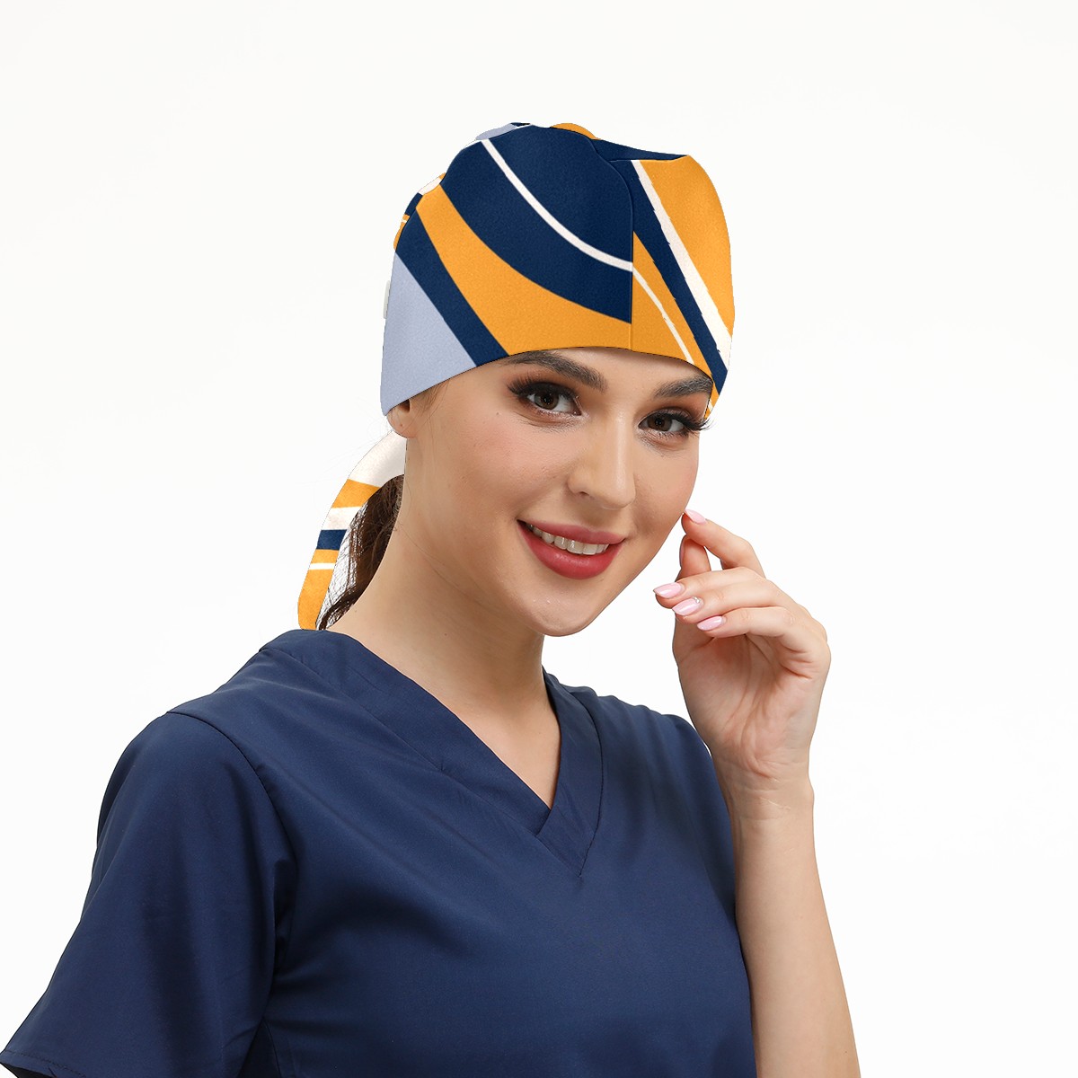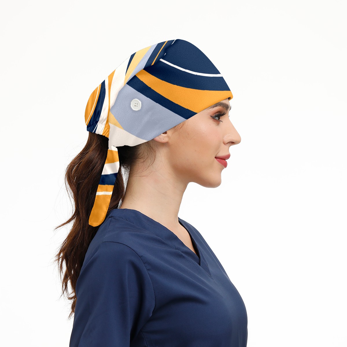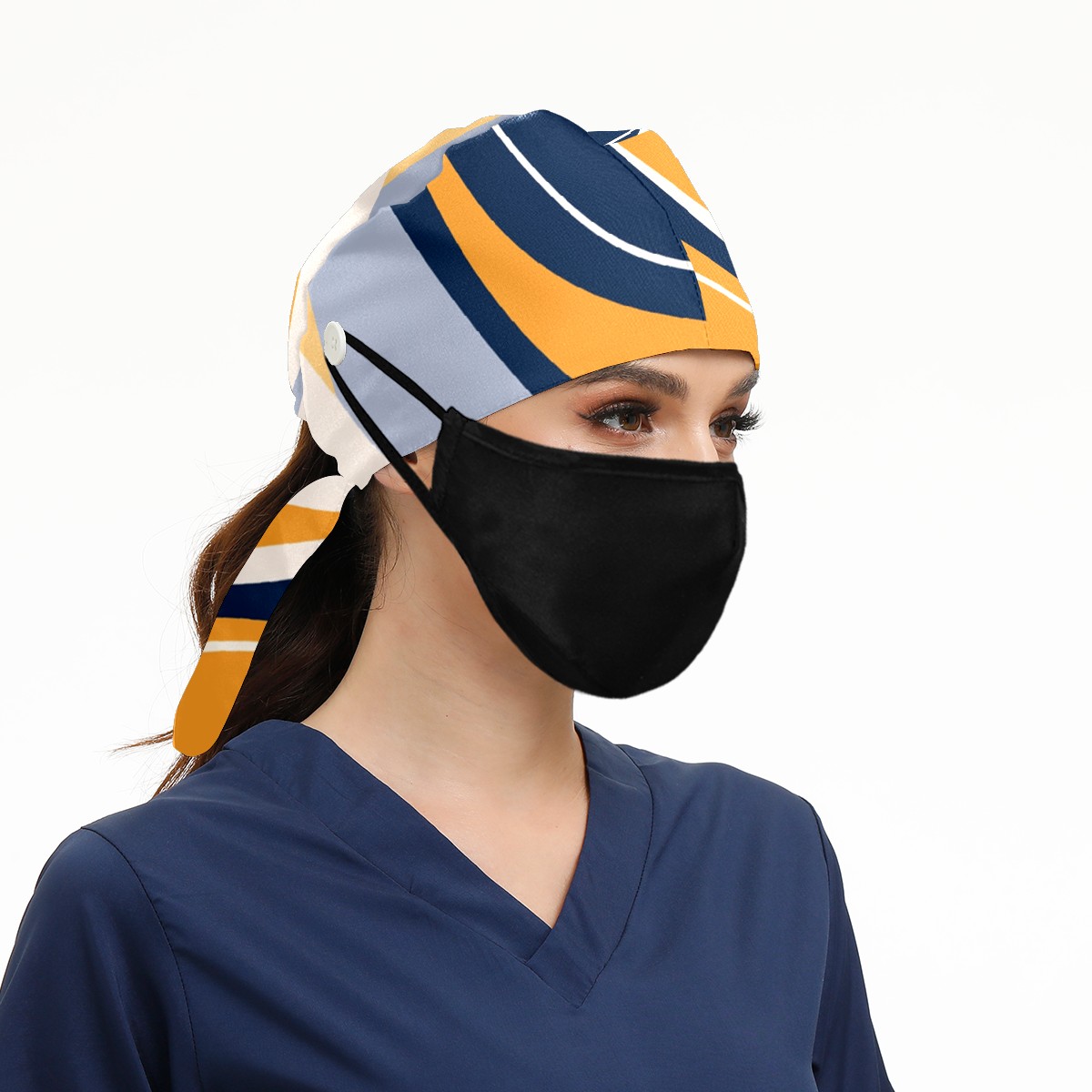 Working Caps with Button & Sweatband Satin Lined Cotton Adjustable Nurse Hats Elastic Band Scrub Cap Surgeon Hat Abstract