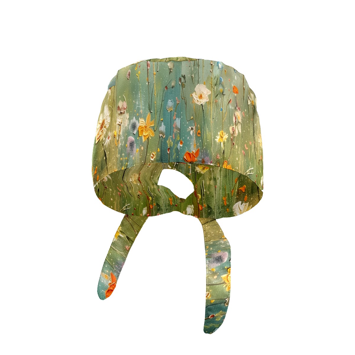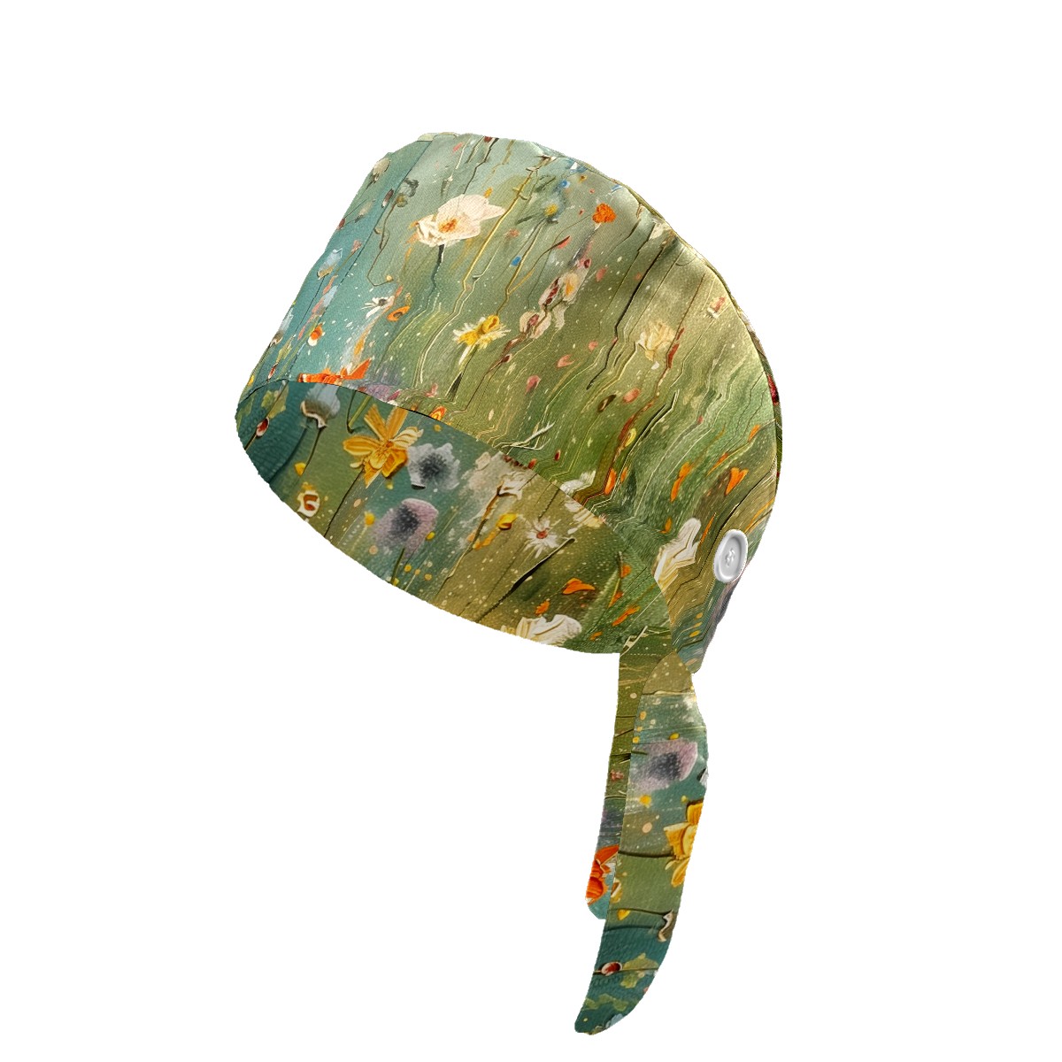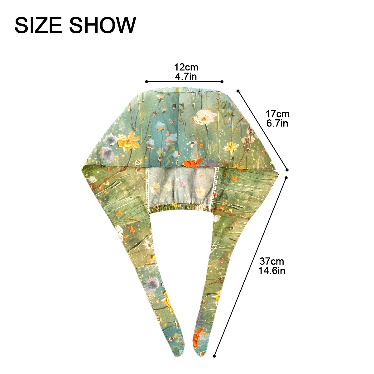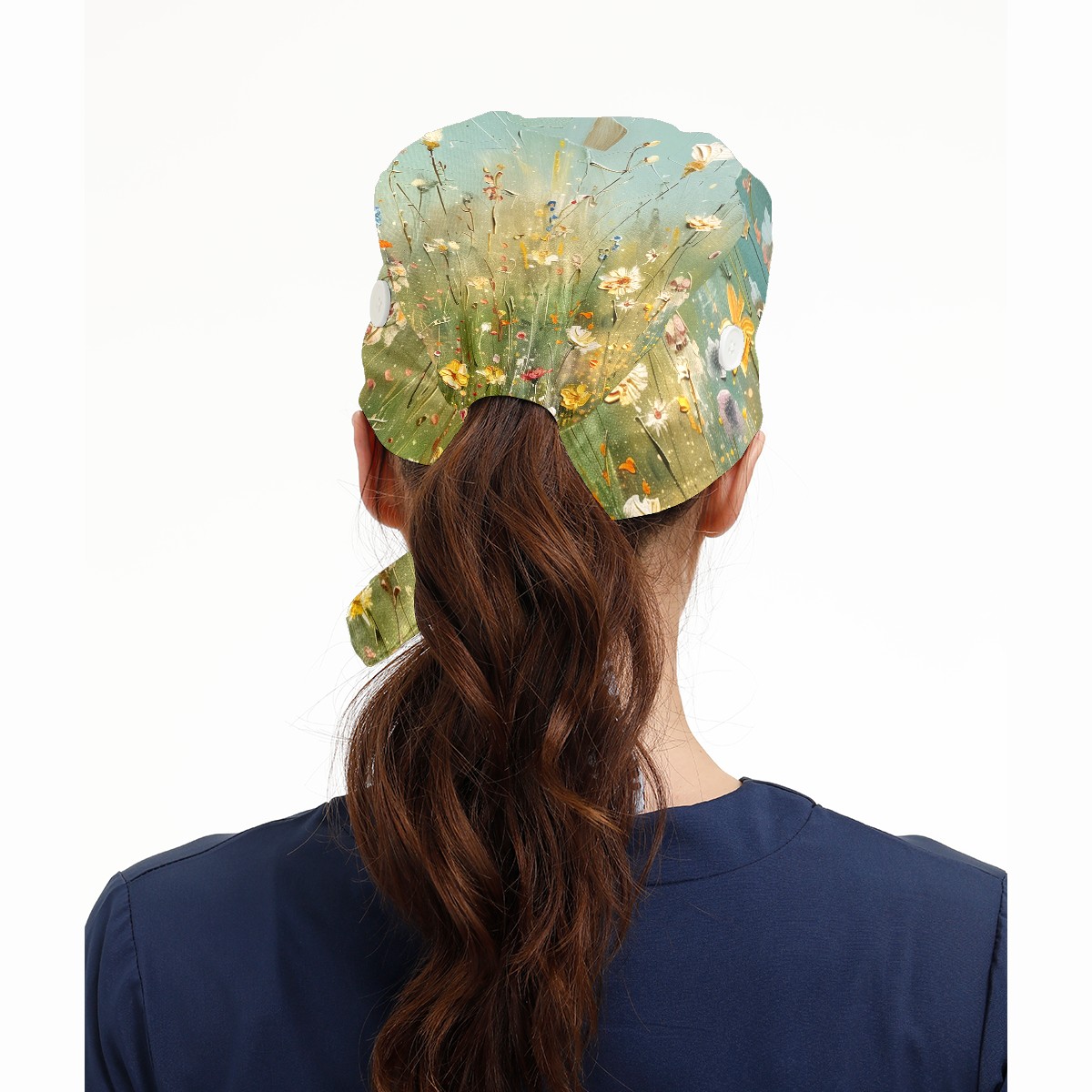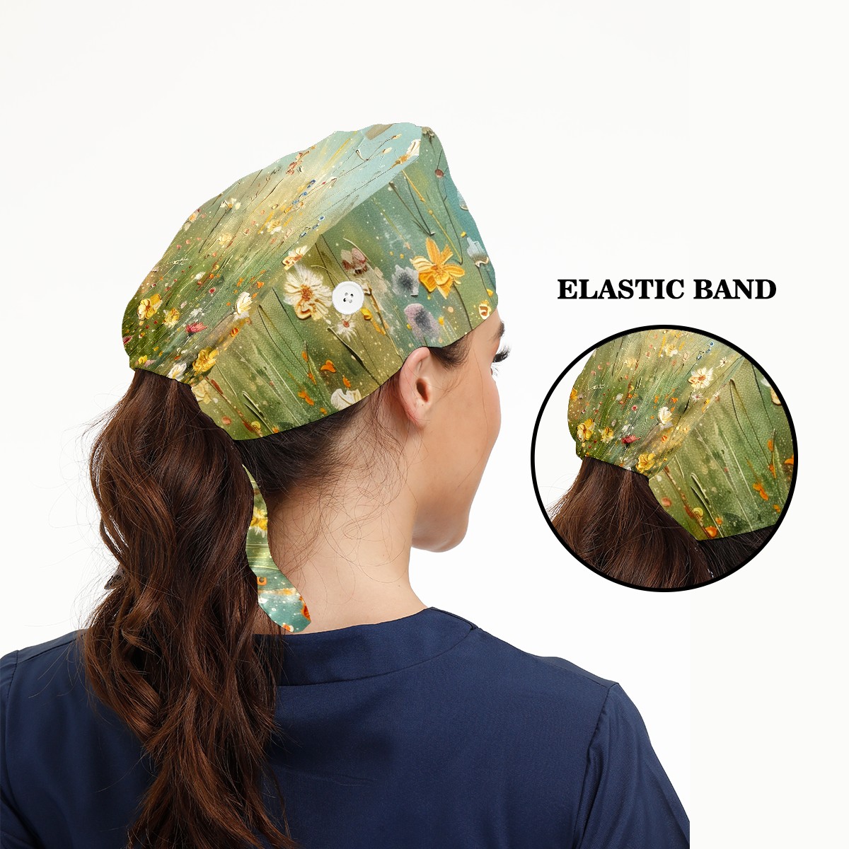 Working Caps with Button & Sweatband Satin Lined Cotton Adjustable Nurse Hats Elastic Band Scrub Cap Surgeon Hat Flowers Plants
