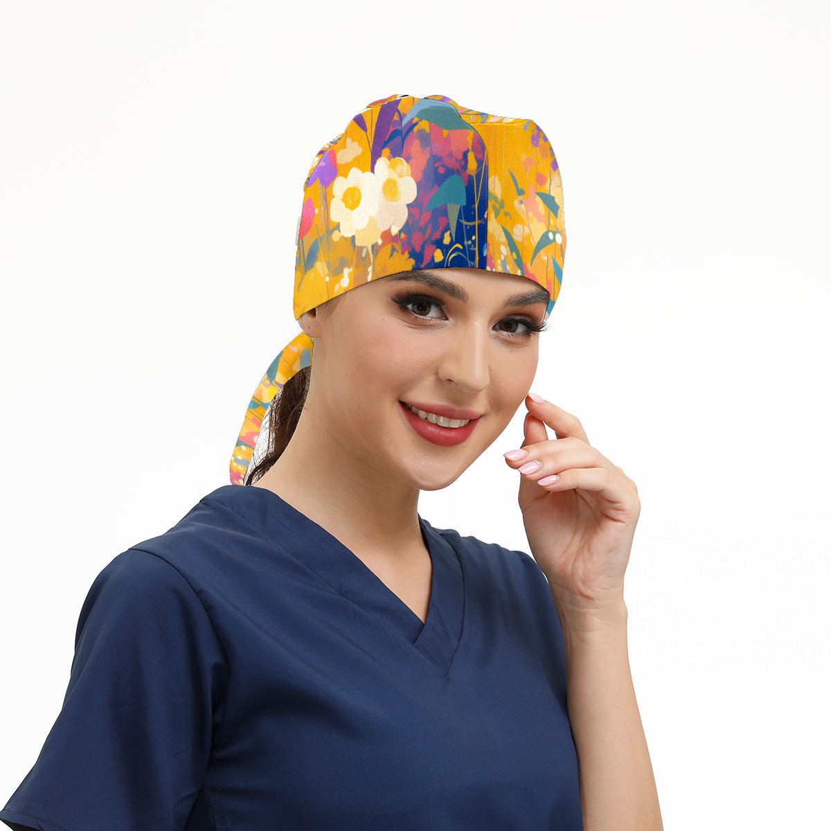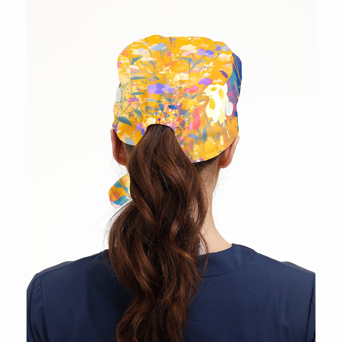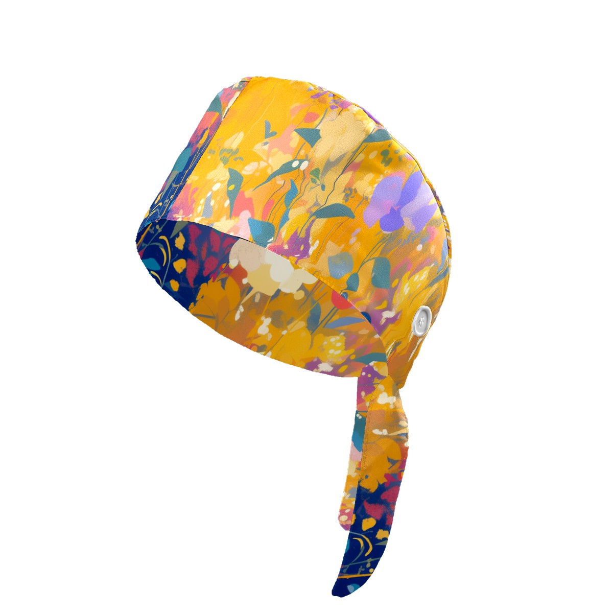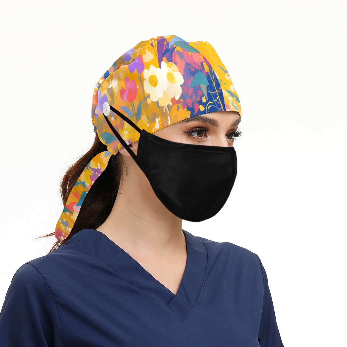 Working Caps with Button & Sweatband Satin Lined Cotton Adjustable Nurse Hats Elastic Band Scrub Cap Surgeon Hat Wildflower