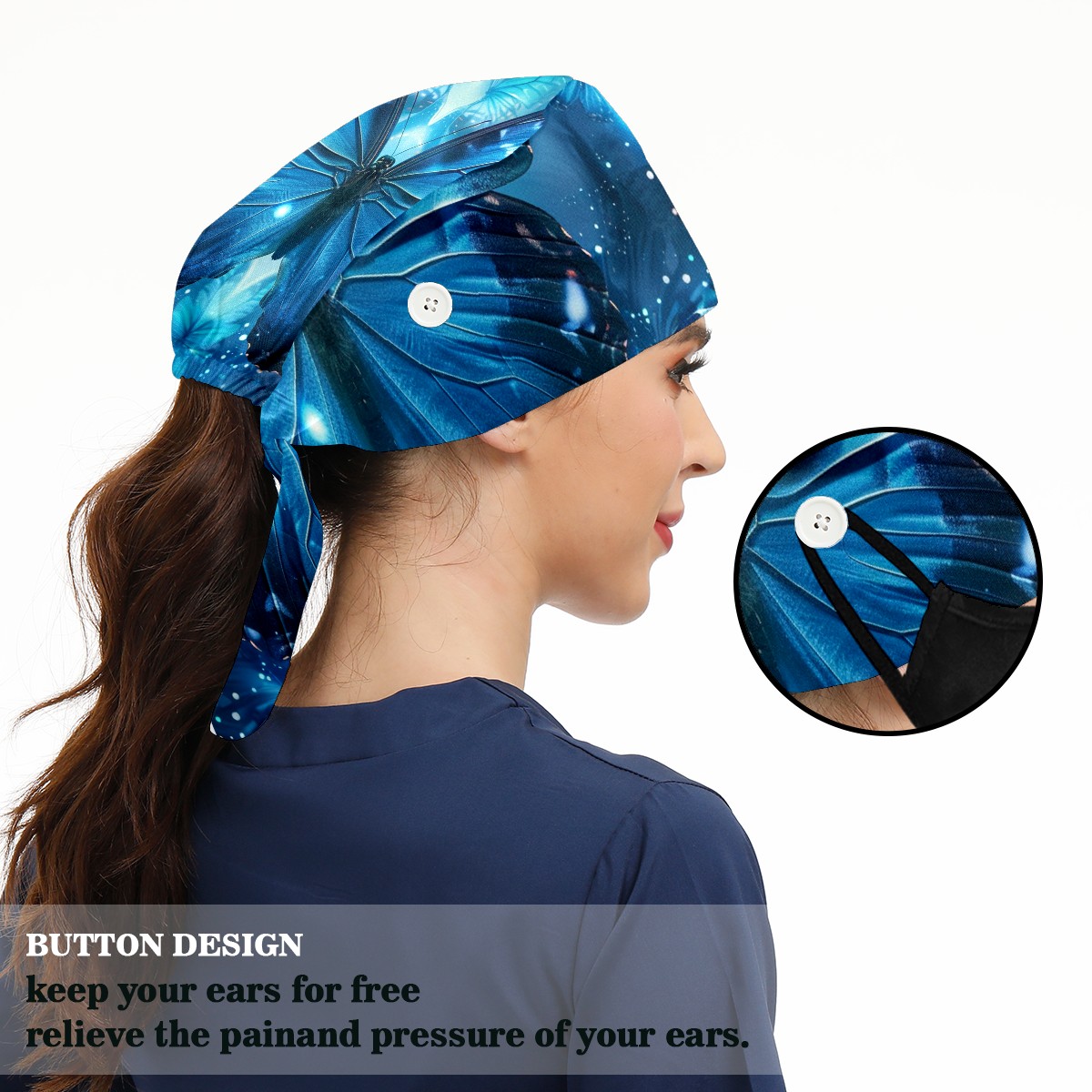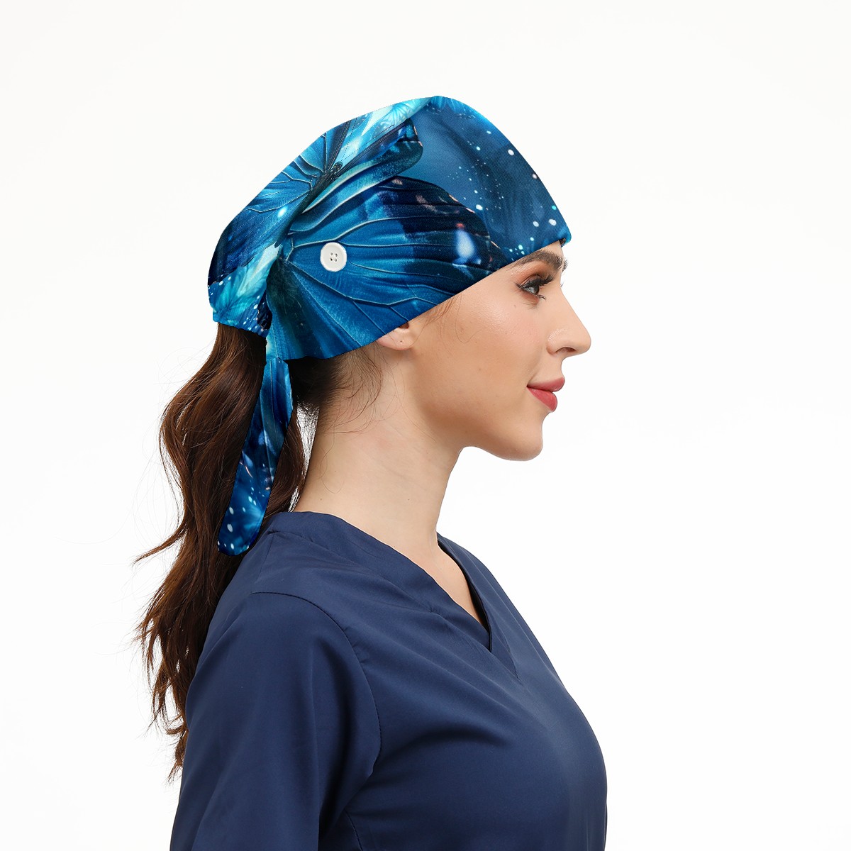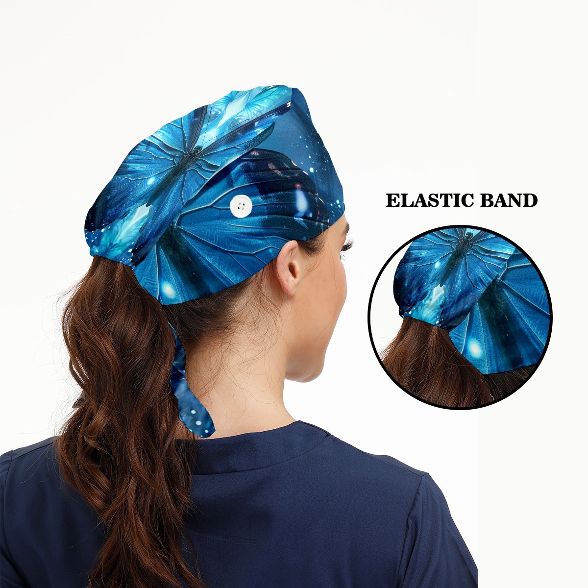 Working Caps with Button & Sweatband Satin Lined Cotton Adjustable Nurse Hats Elastic Band Scrub Cap Surgeon Hat Butterfly