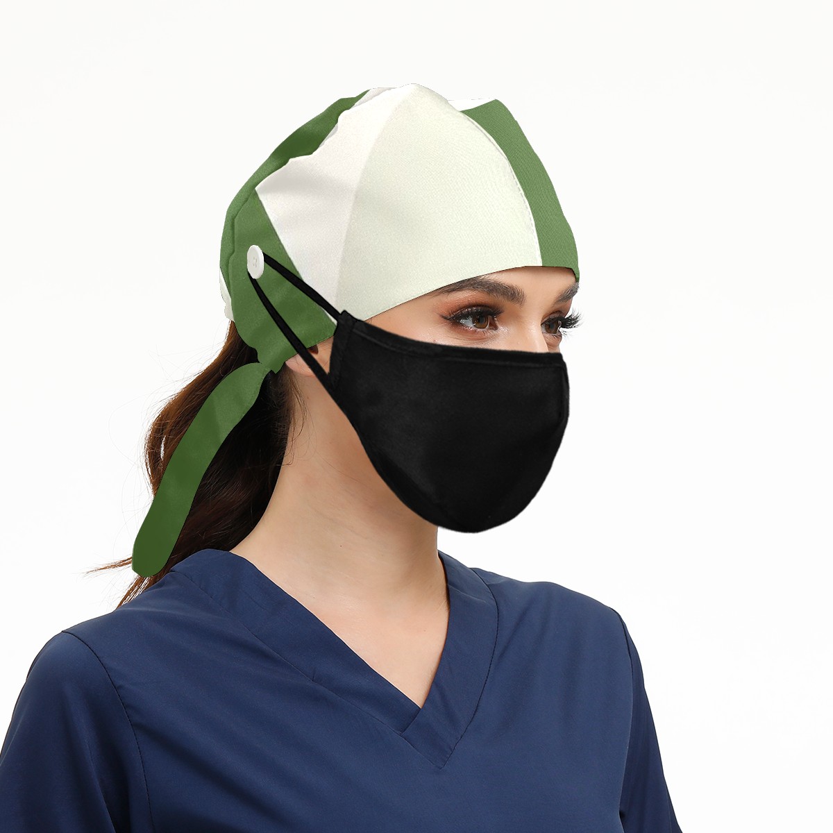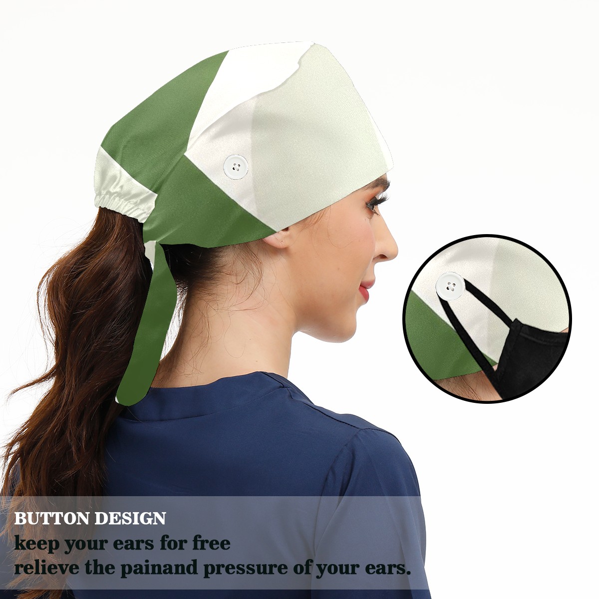 Working Caps with Button & Sweatband Satin Lined Cotton Adjustable Nurse Hats Elastic Band Scrub Cap Surgeon Hat Colour
