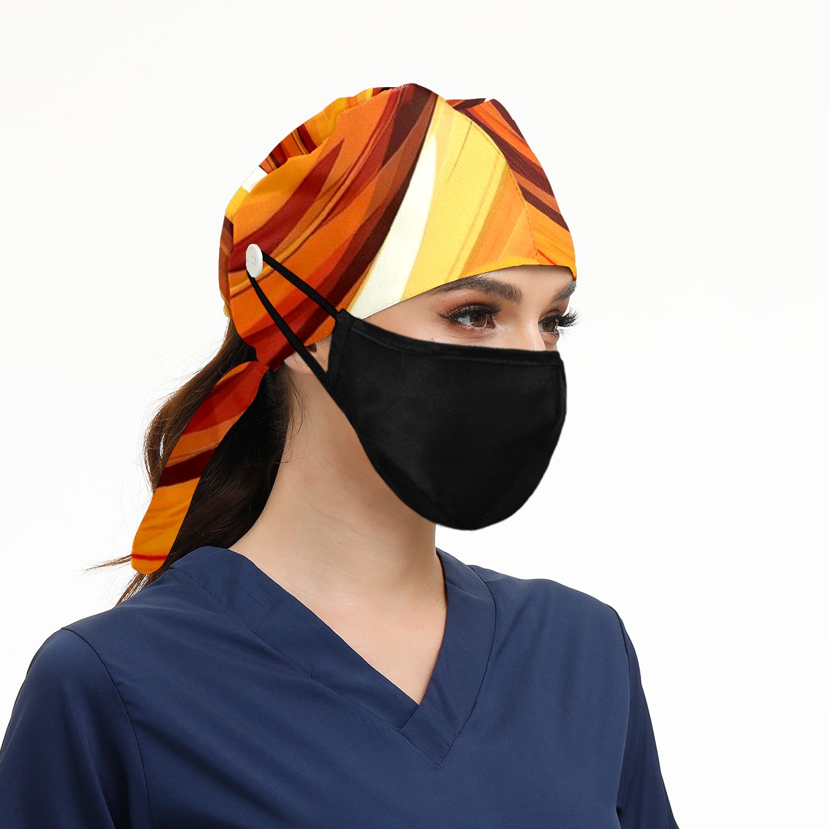 Working Caps with Button & Sweatband Satin Lined Cotton Adjustable Nurse Hats Elastic Band Scrub Cap Surgeon Hat Night Sky