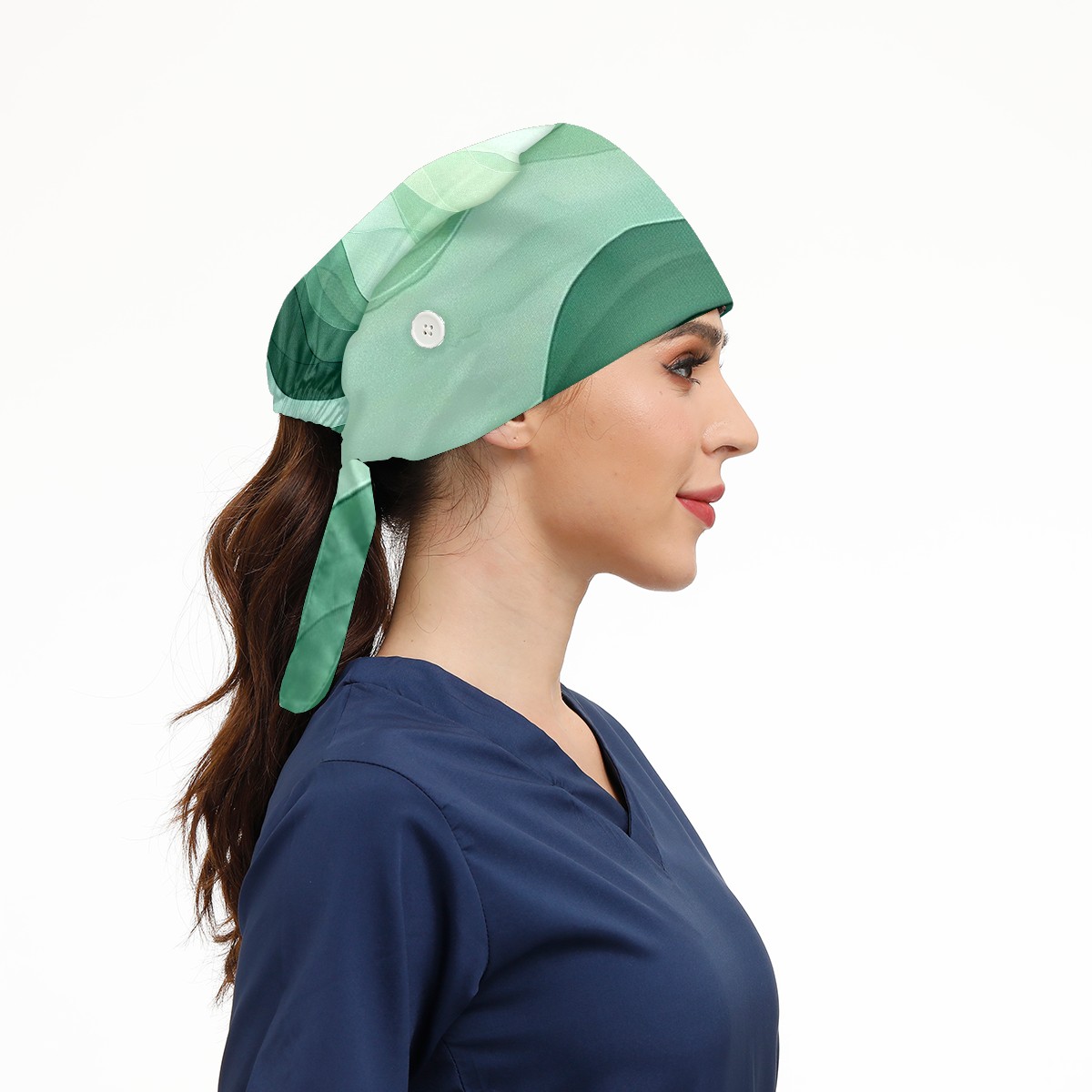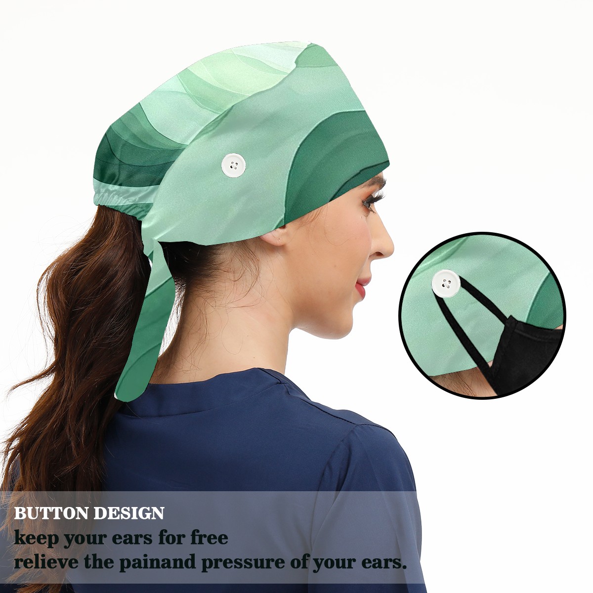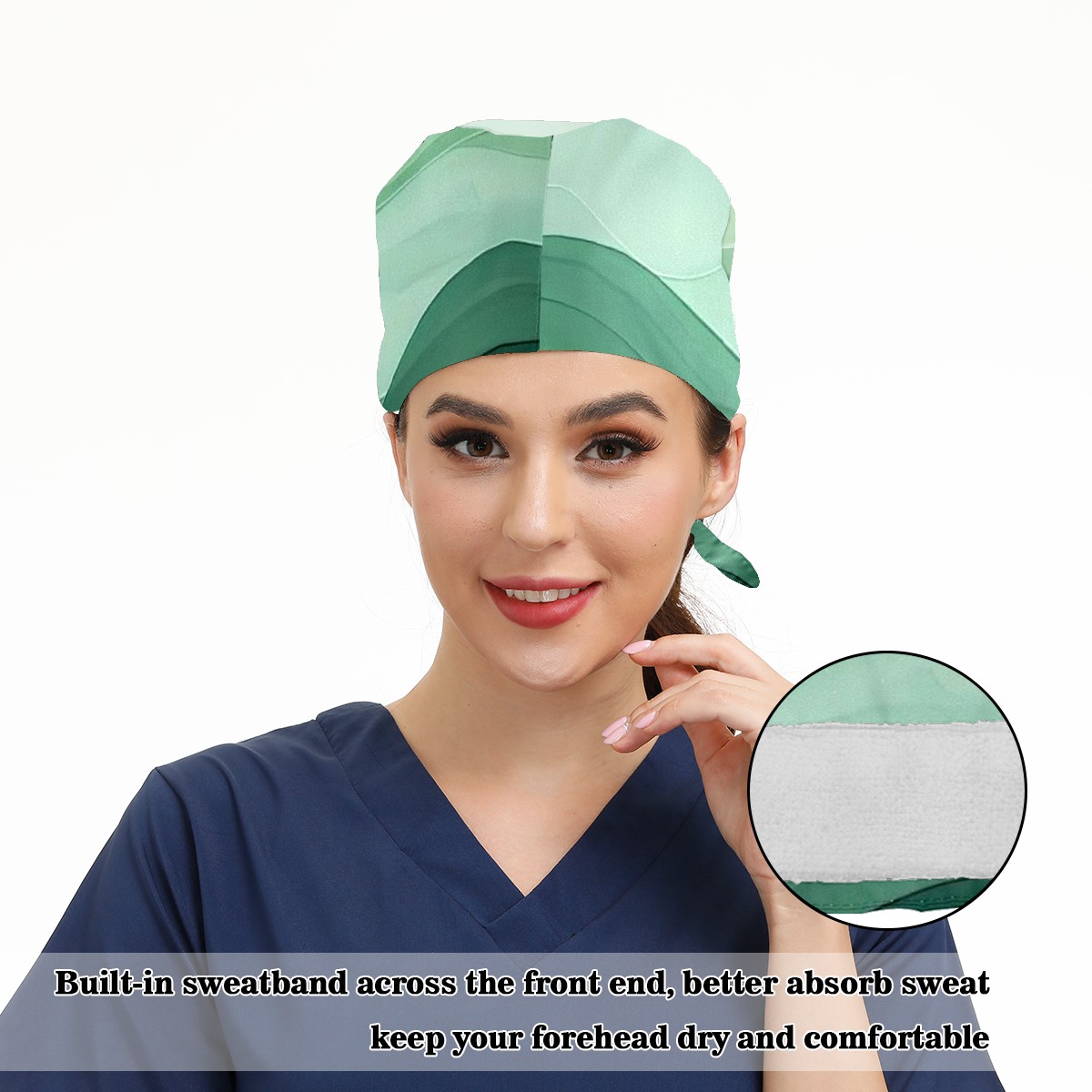 Working Caps with Button & Sweatband Satin Lined Cotton Adjustable Nurse Hats Elastic Band Scrub Cap Surgeon Hat Stripe