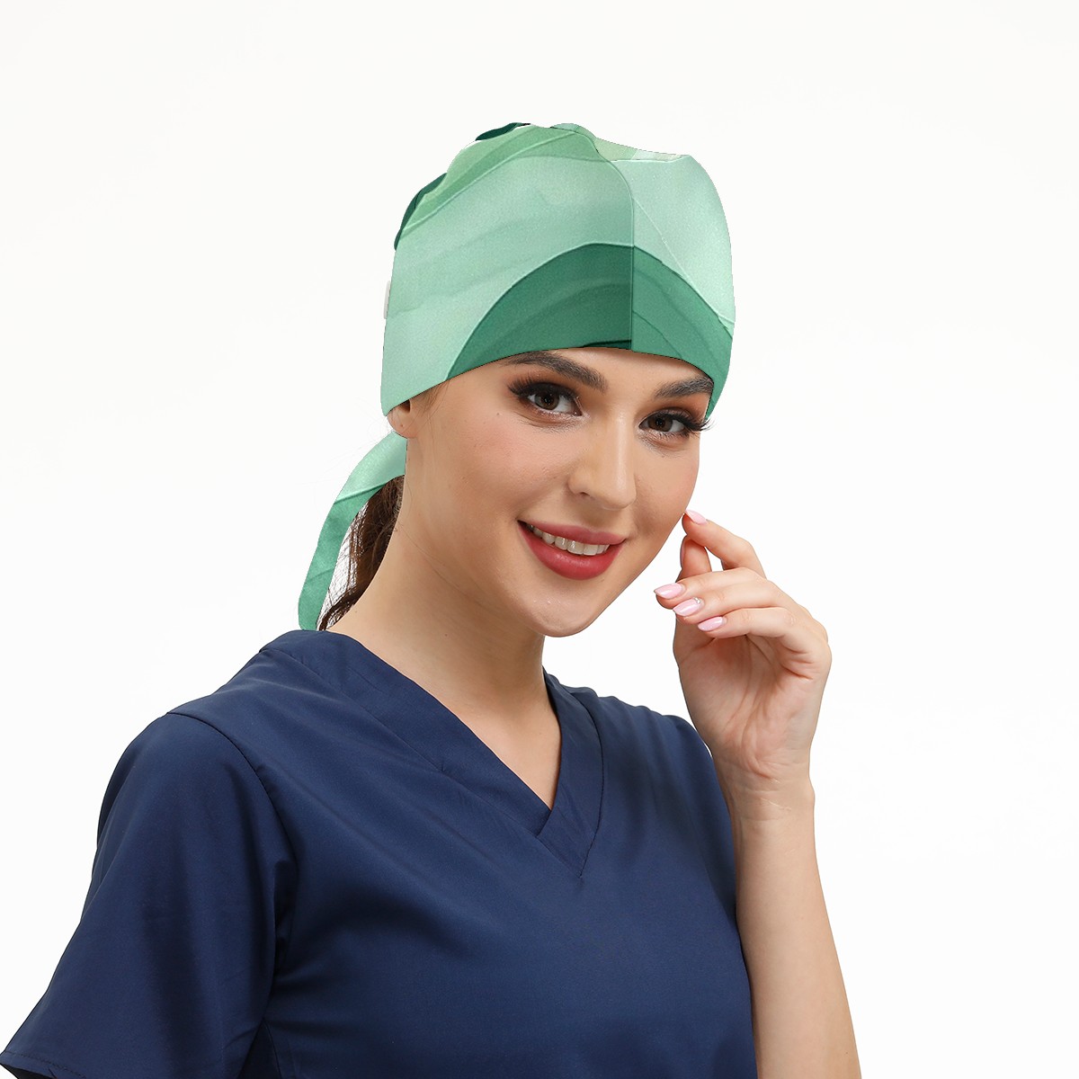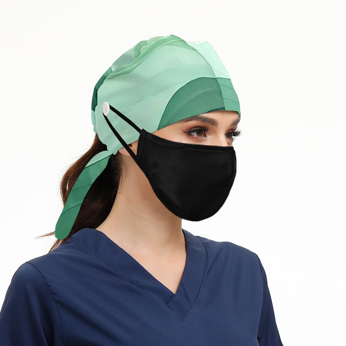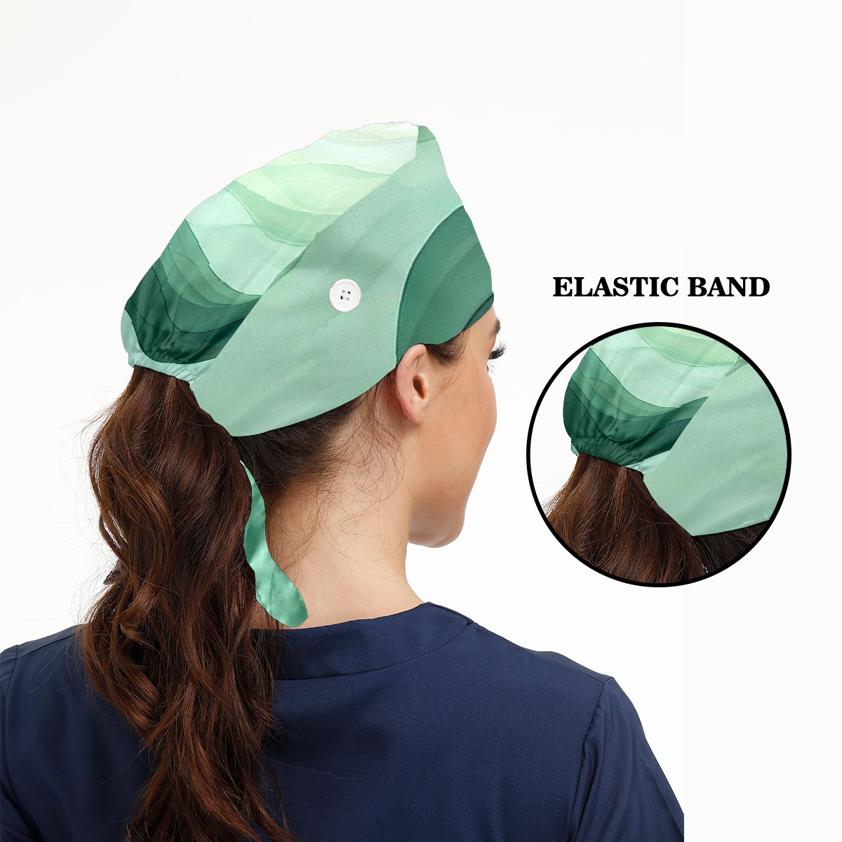 Working Caps with Button & Sweatband Satin Lined Cotton Adjustable Nurse Hats Elastic Band Scrub Cap Surgeon Hat Stripe