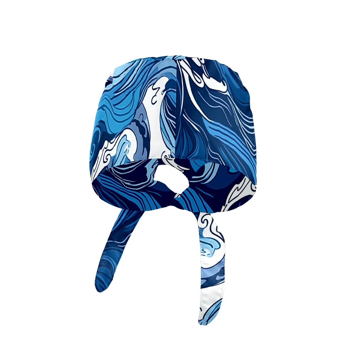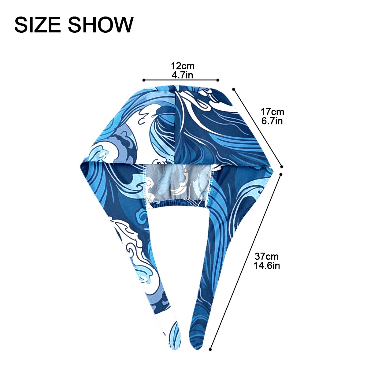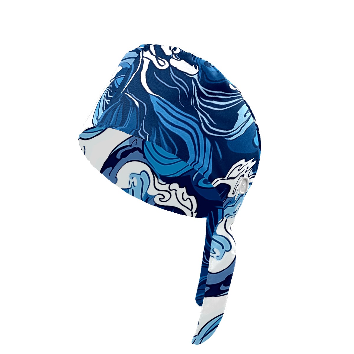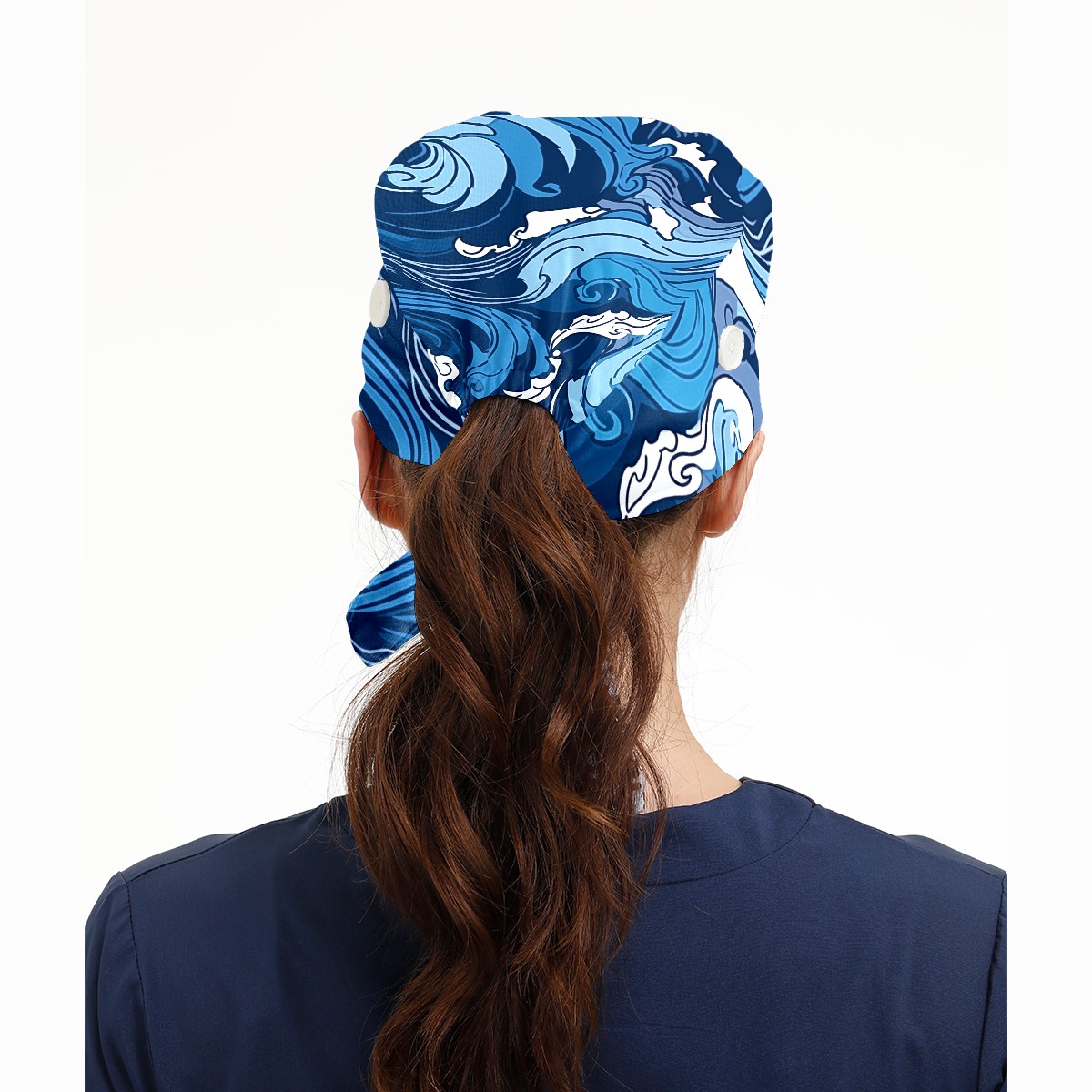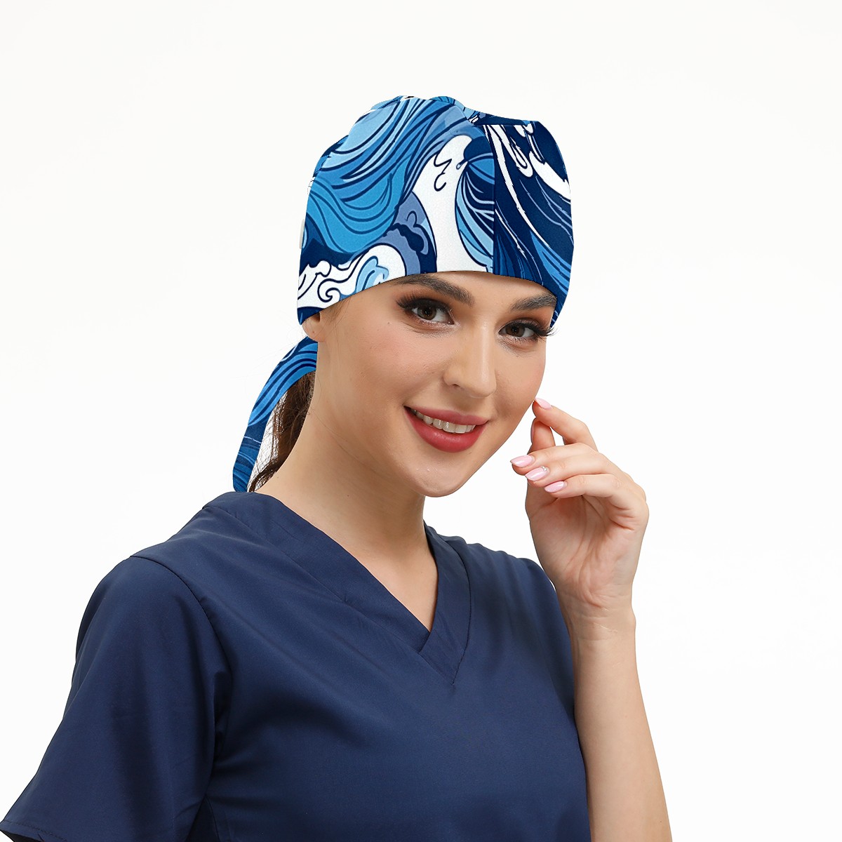 Working Caps with Button & Sweatband Satin Lined Cotton Adjustable Nurse Hats Elastic Band Scrub Cap Surgeon Hat Sea Wave