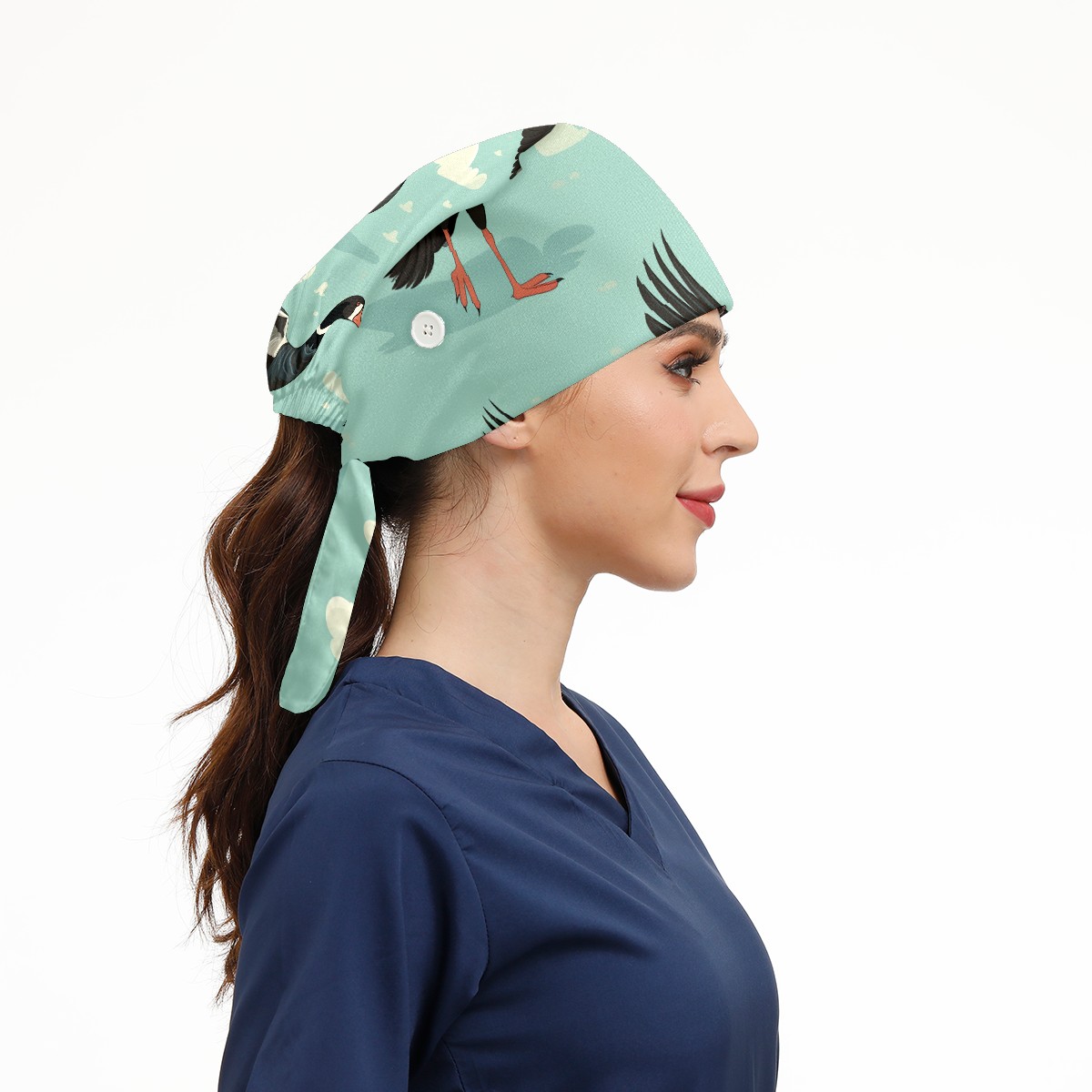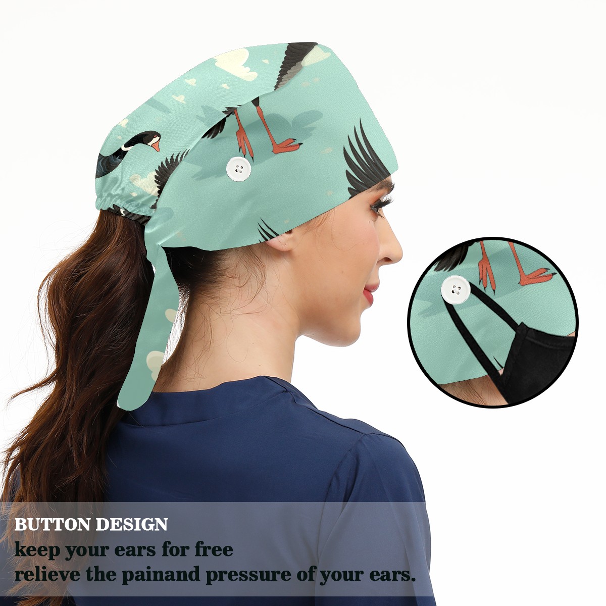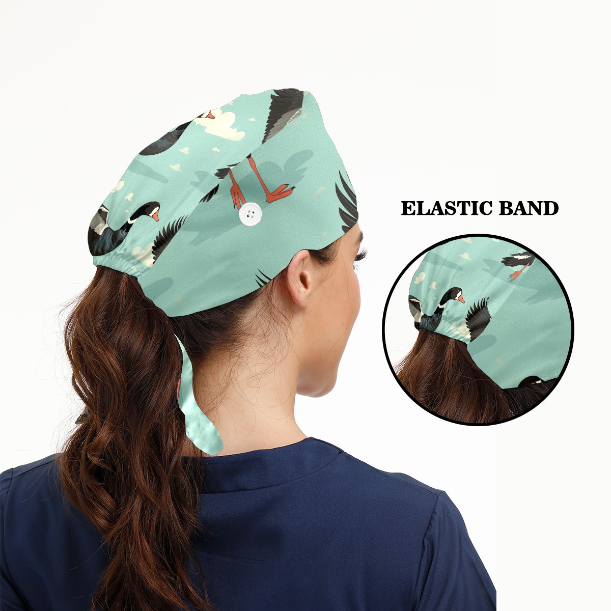 Working Caps with Button & Sweatband Satin Lined Cotton Adjustable Nurse Hats Elastic Band Scrub Cap Surgeon Hat Duck