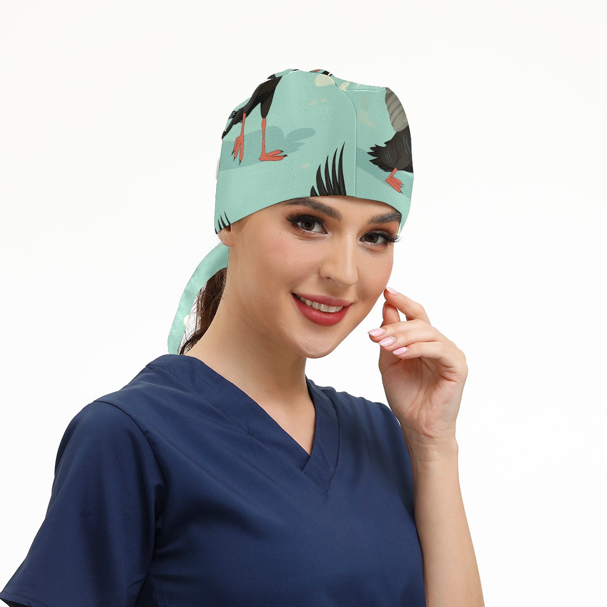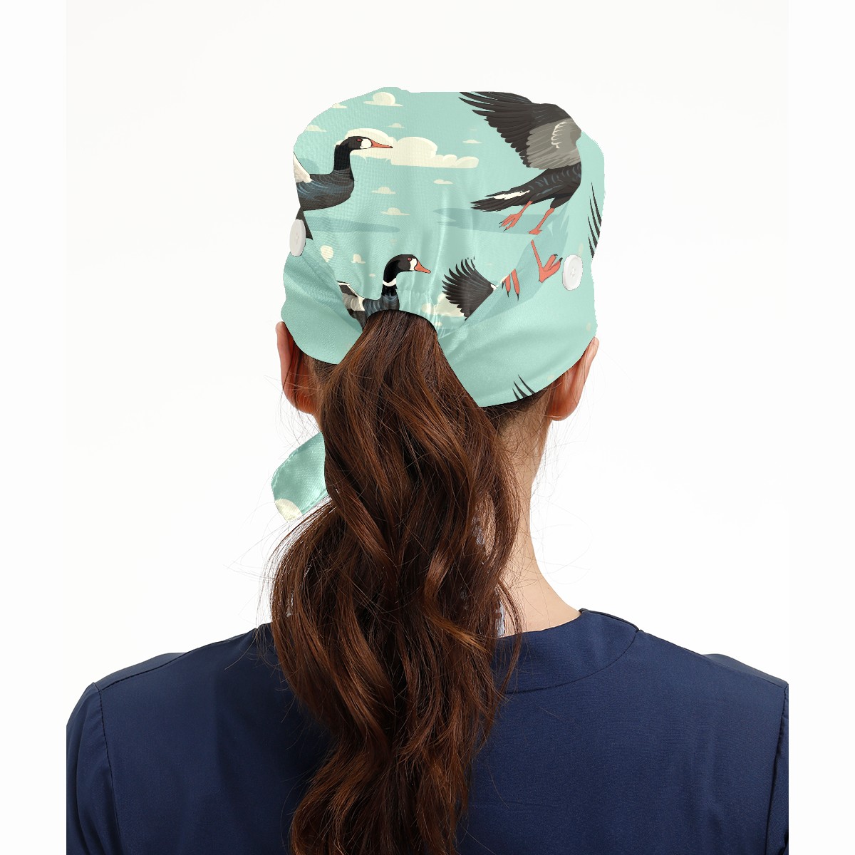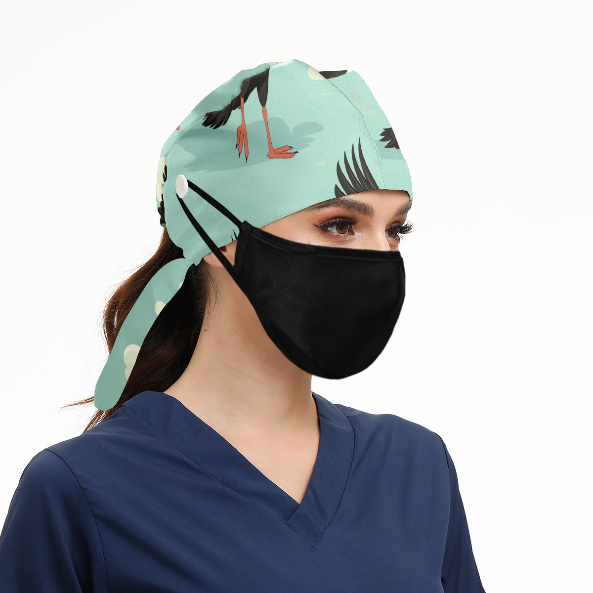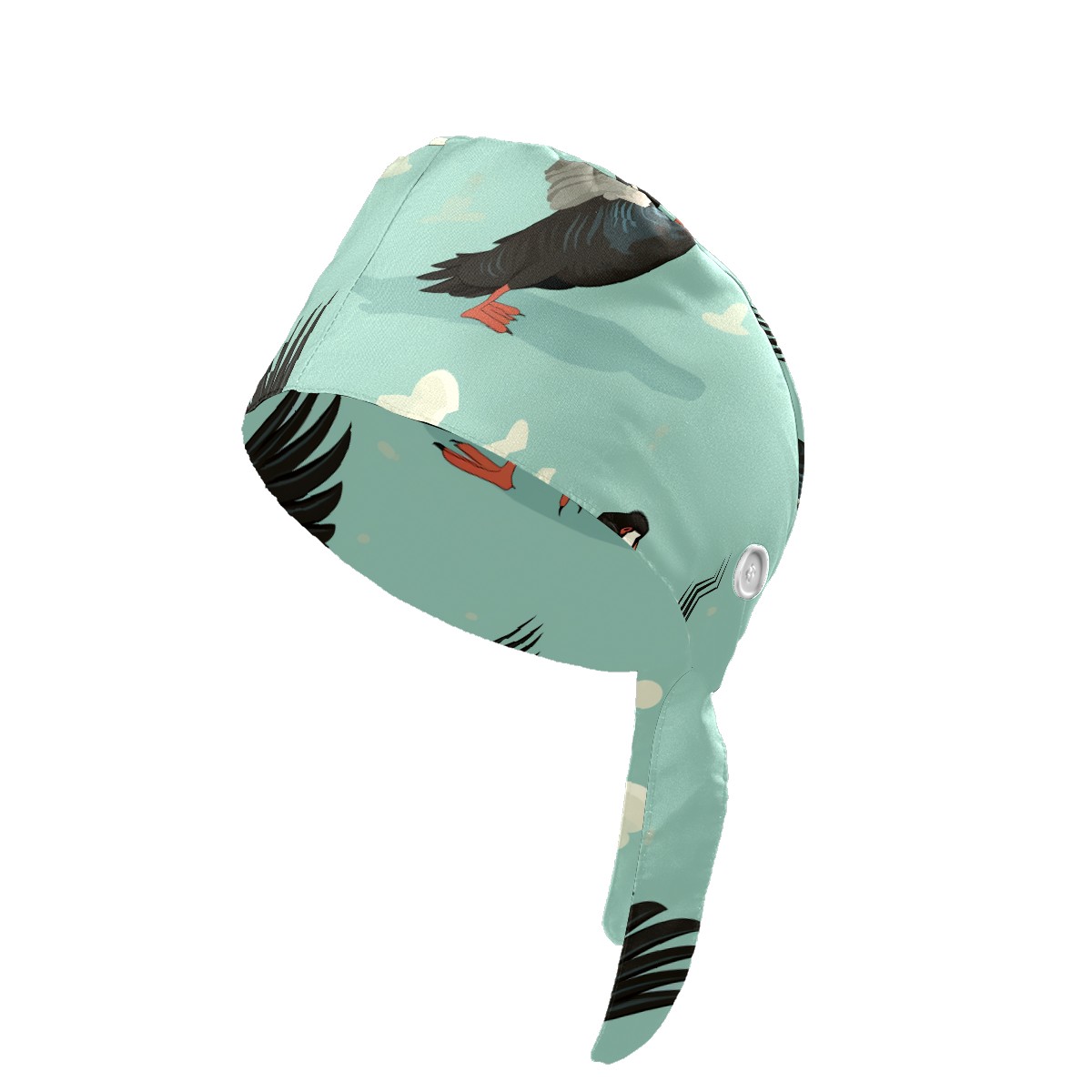 Working Caps with Button & Sweatband Satin Lined Cotton Adjustable Nurse Hats Elastic Band Scrub Cap Surgeon Hat Duck
