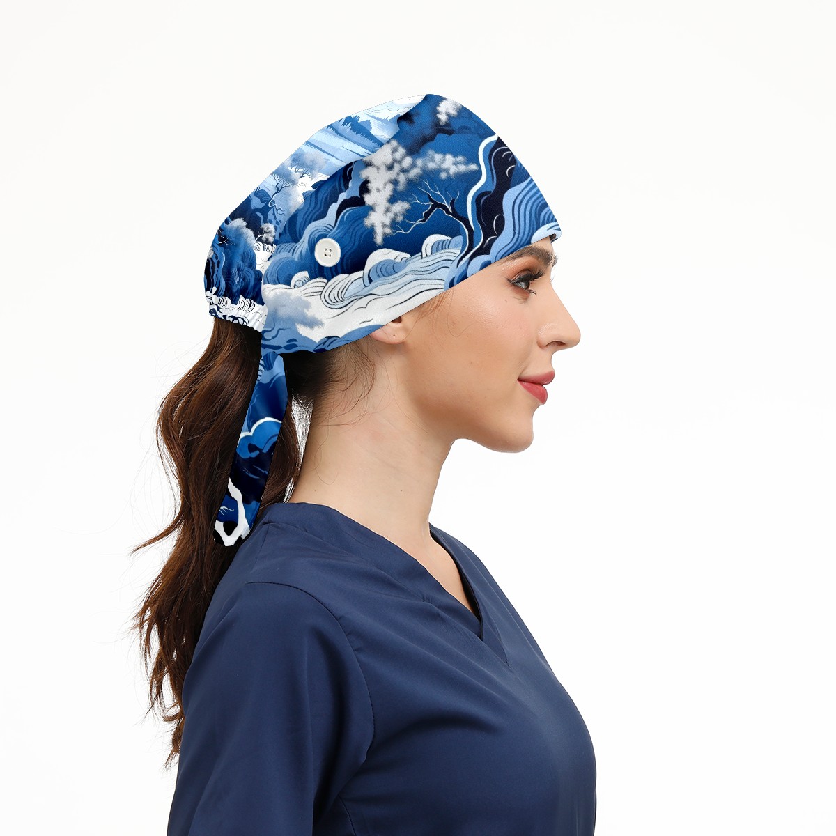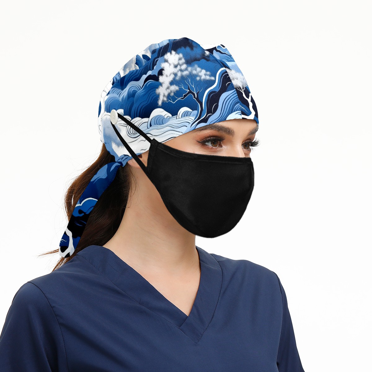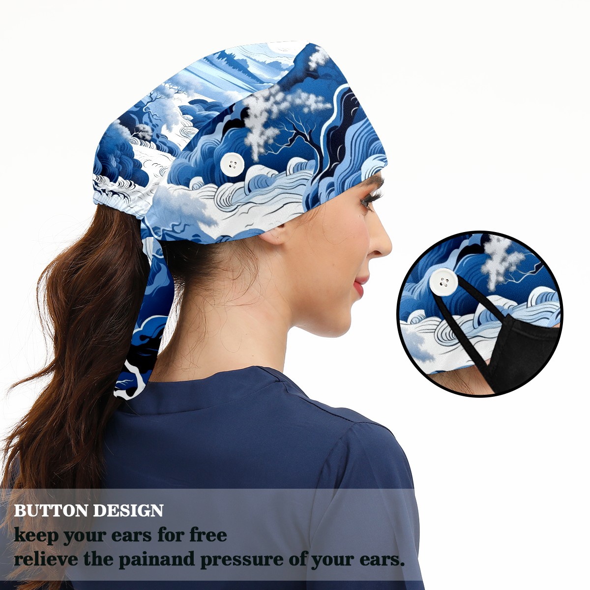 Working Caps with Button & Sweatband Satin Lined Cotton Adjustable Nurse Hats Elastic Band Scrub Cap Surgeon Hat Scenery