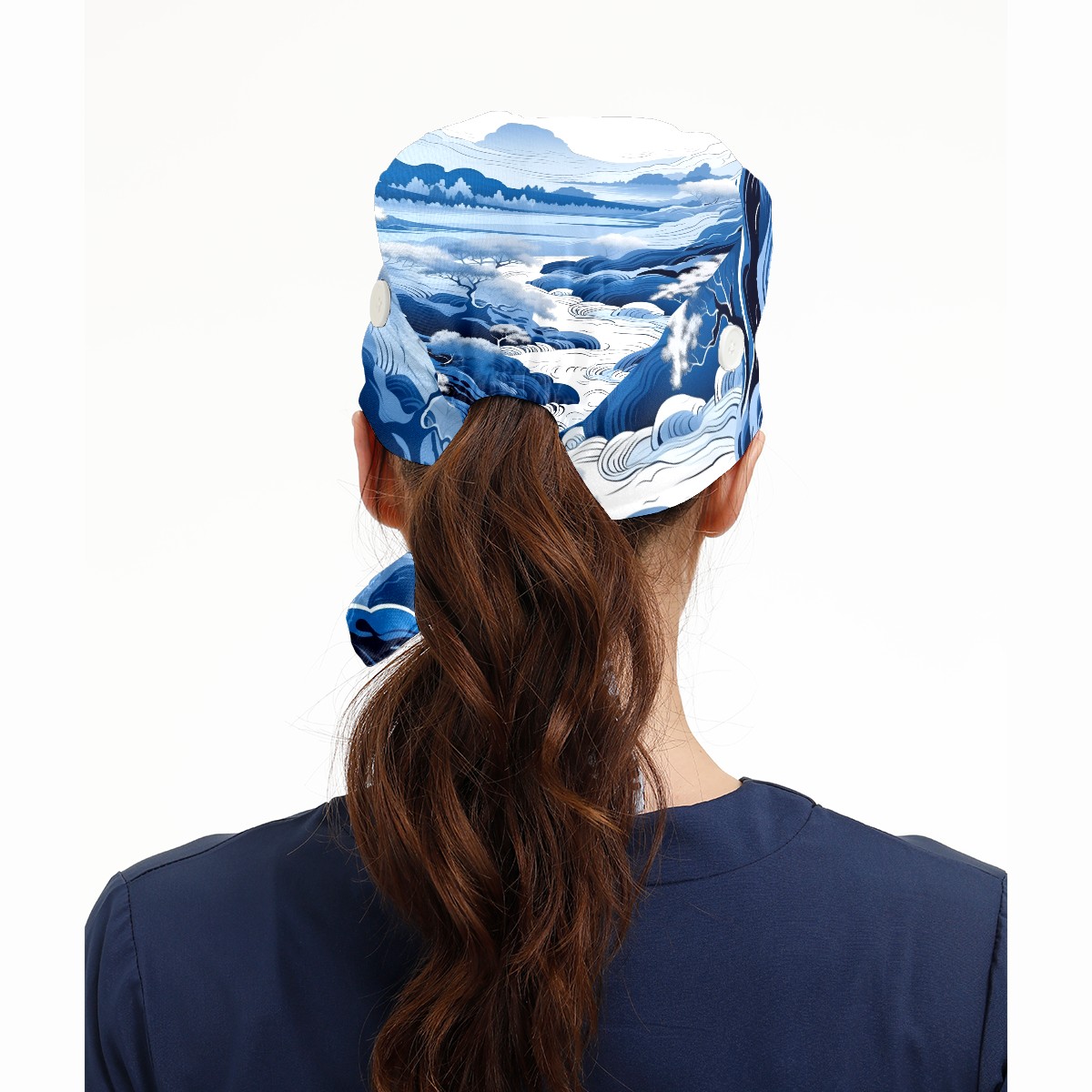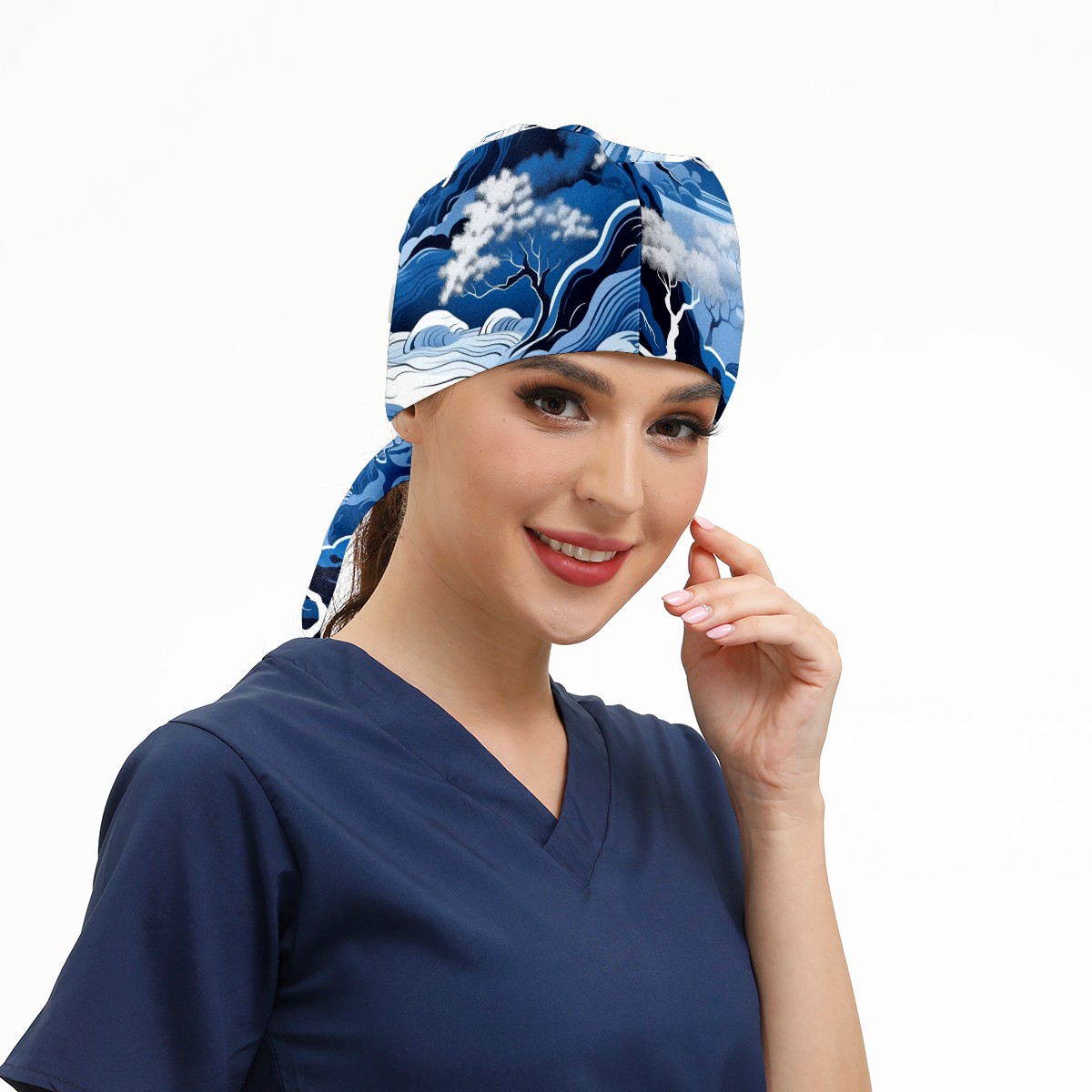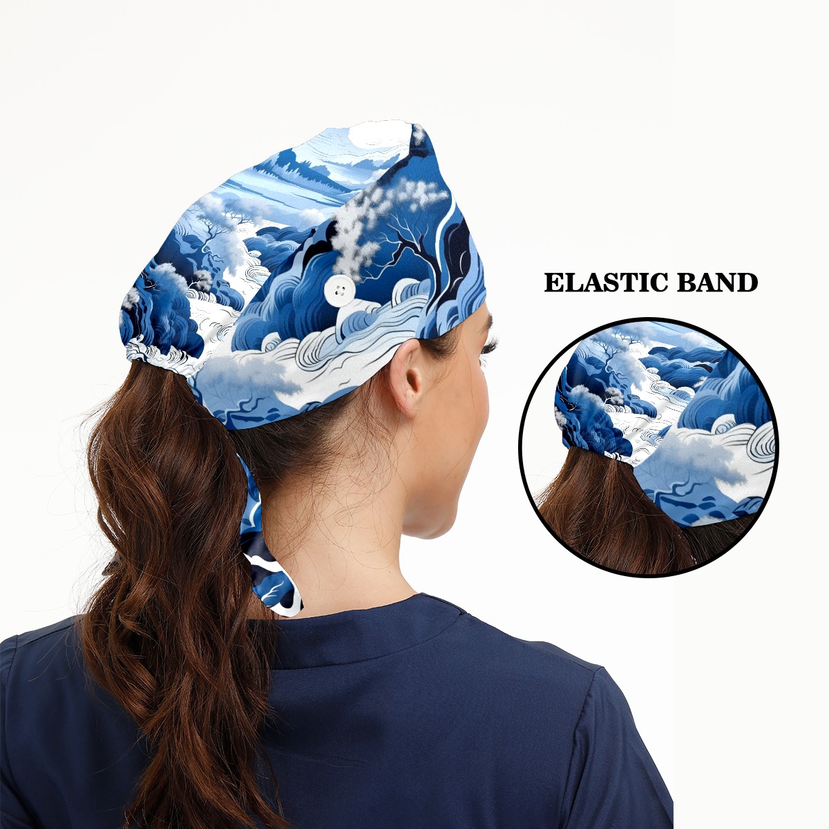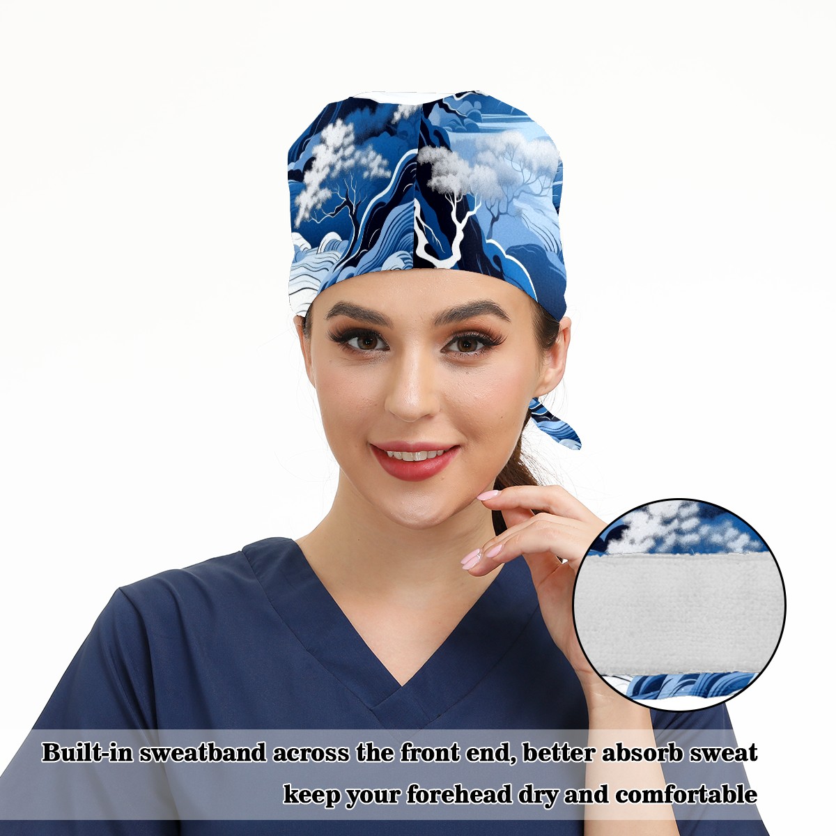Working Caps with Button & Sweatband Satin Lined Cotton Adjustable Nurse Hats Elastic Band Scrub Cap Surgeon Hat Scenery